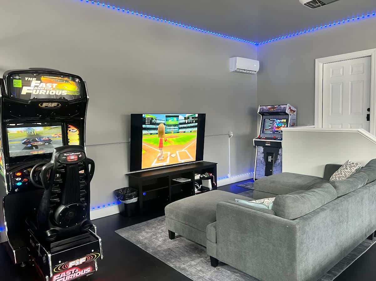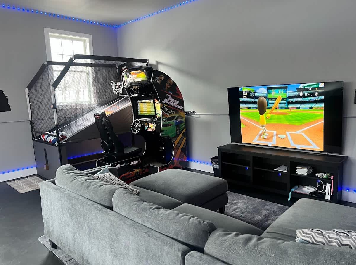 - Garage game room – Challenge your family to a game of ping-pong or arcade games, or just lounge and enjoy the spacious lower-level entertainment area.