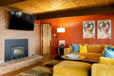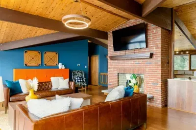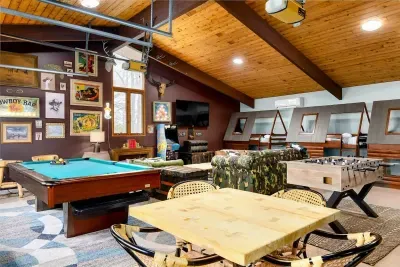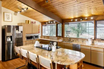 Upstairs on the main floor, you’ll find a spacious, fully equipped kitchen perfect for creating memorable meals and snacks. The roomy living area comfortably seats your entire group, while the deck provides a scenic outdoor dining space—complete with a special dining area just for kids.