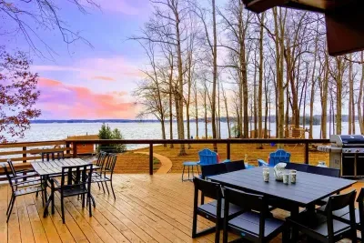 Treat your family and friends to a refreshing, outdoorsy escape at this spacious home right on the shores of Lake Anna. This family-friendly retreat offers a tranquil, away-from-it-all atmosphere that everyone will appreciate. The outdoor area features a lush lawn and a cozy firepit for evening gatherings.