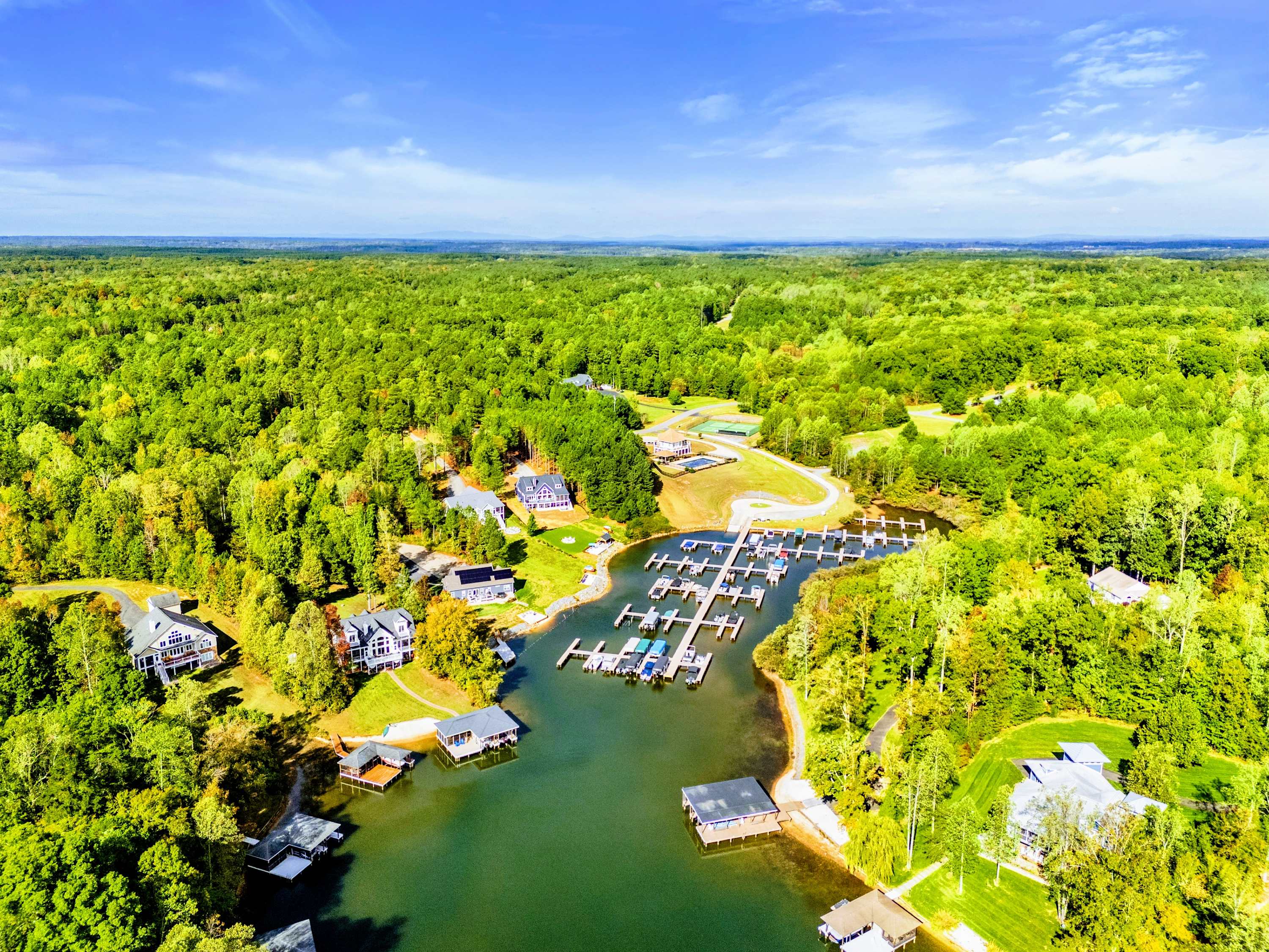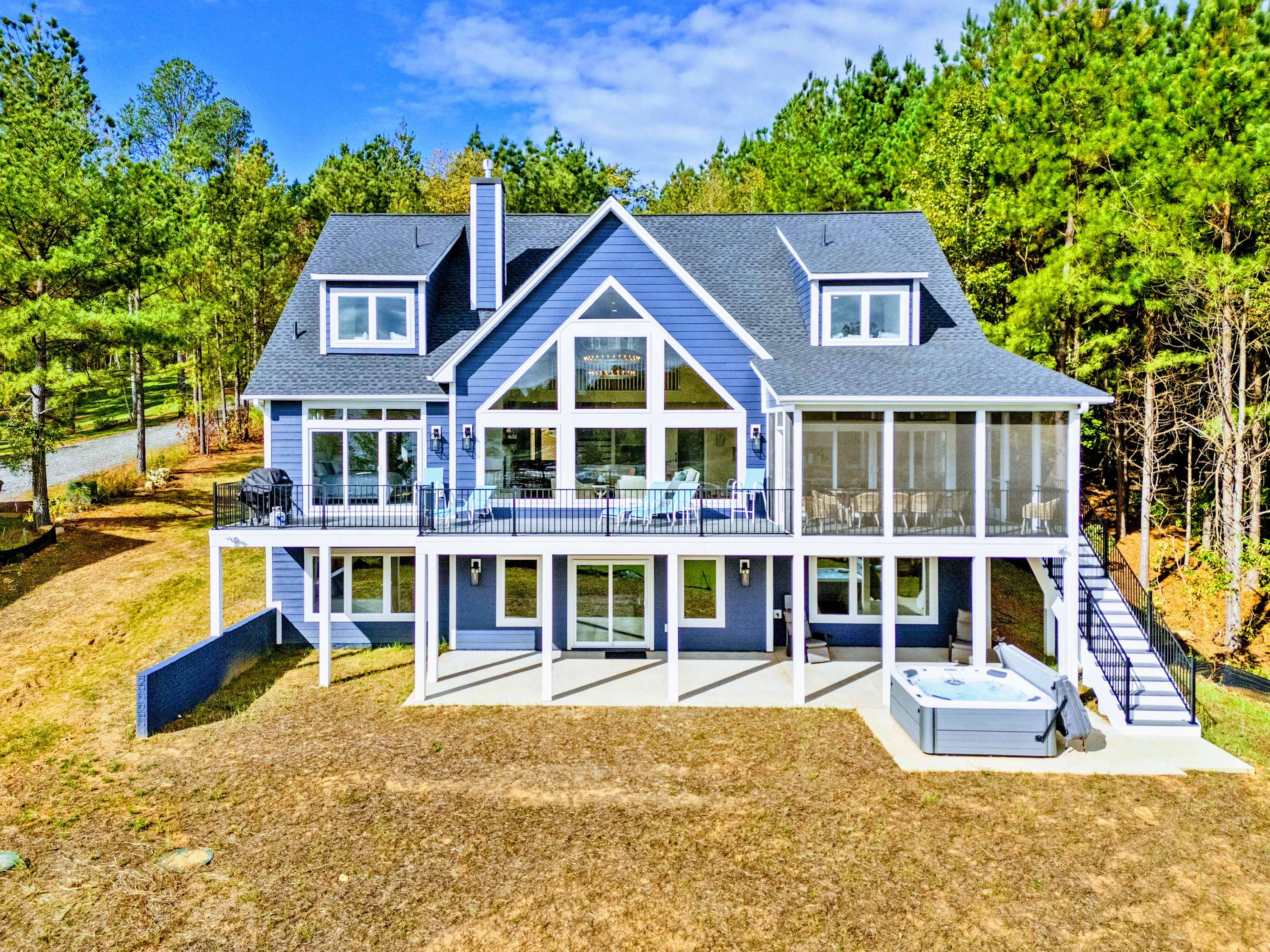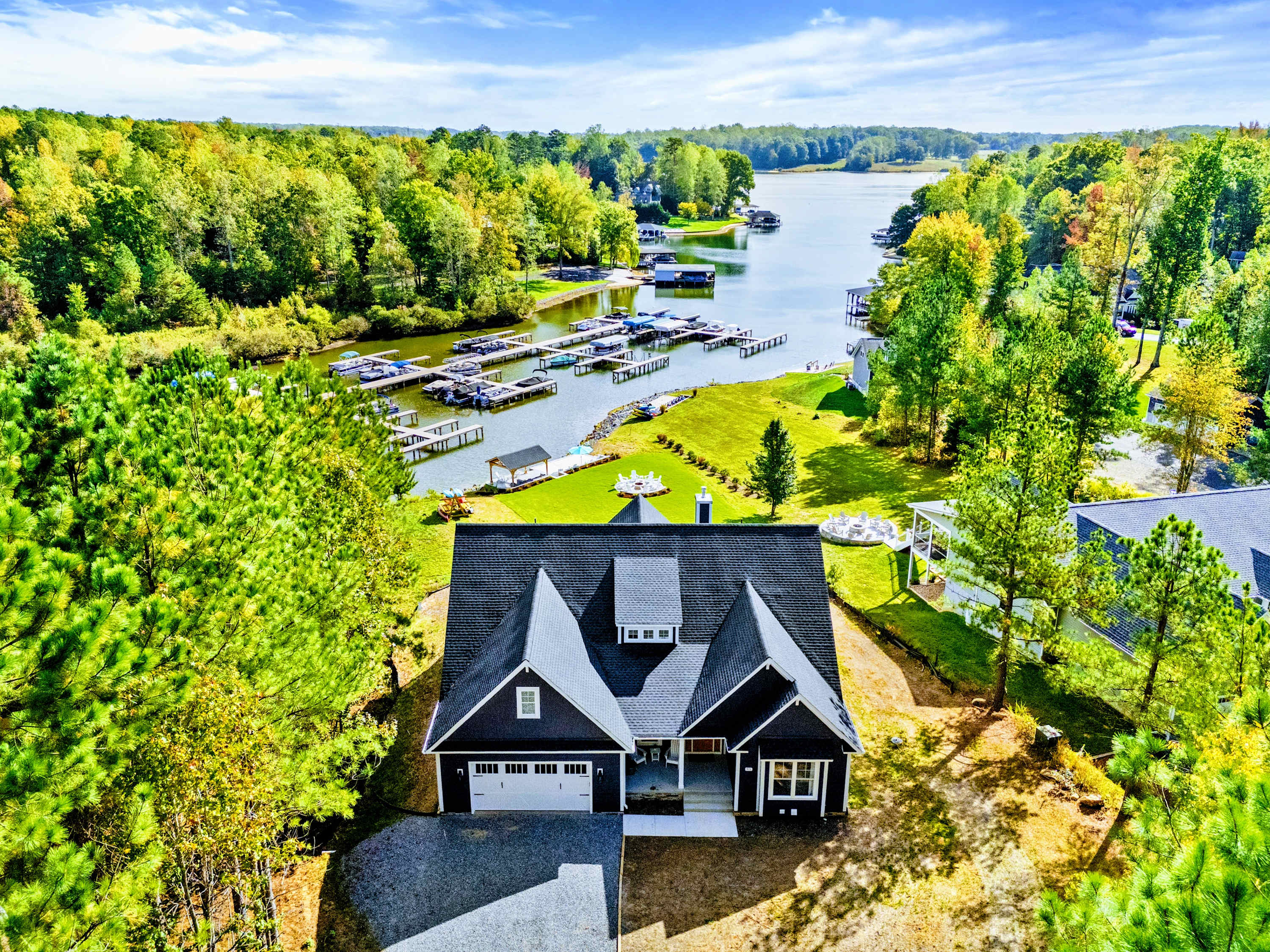 Experience the best of modern comfort and waterfront luxury. A soaring two-story wall of windows, designer finishes, and spacious interiors set the stage for your Lake Anna getaway.
