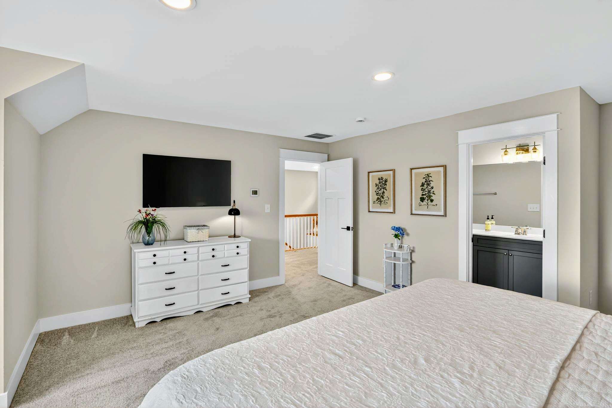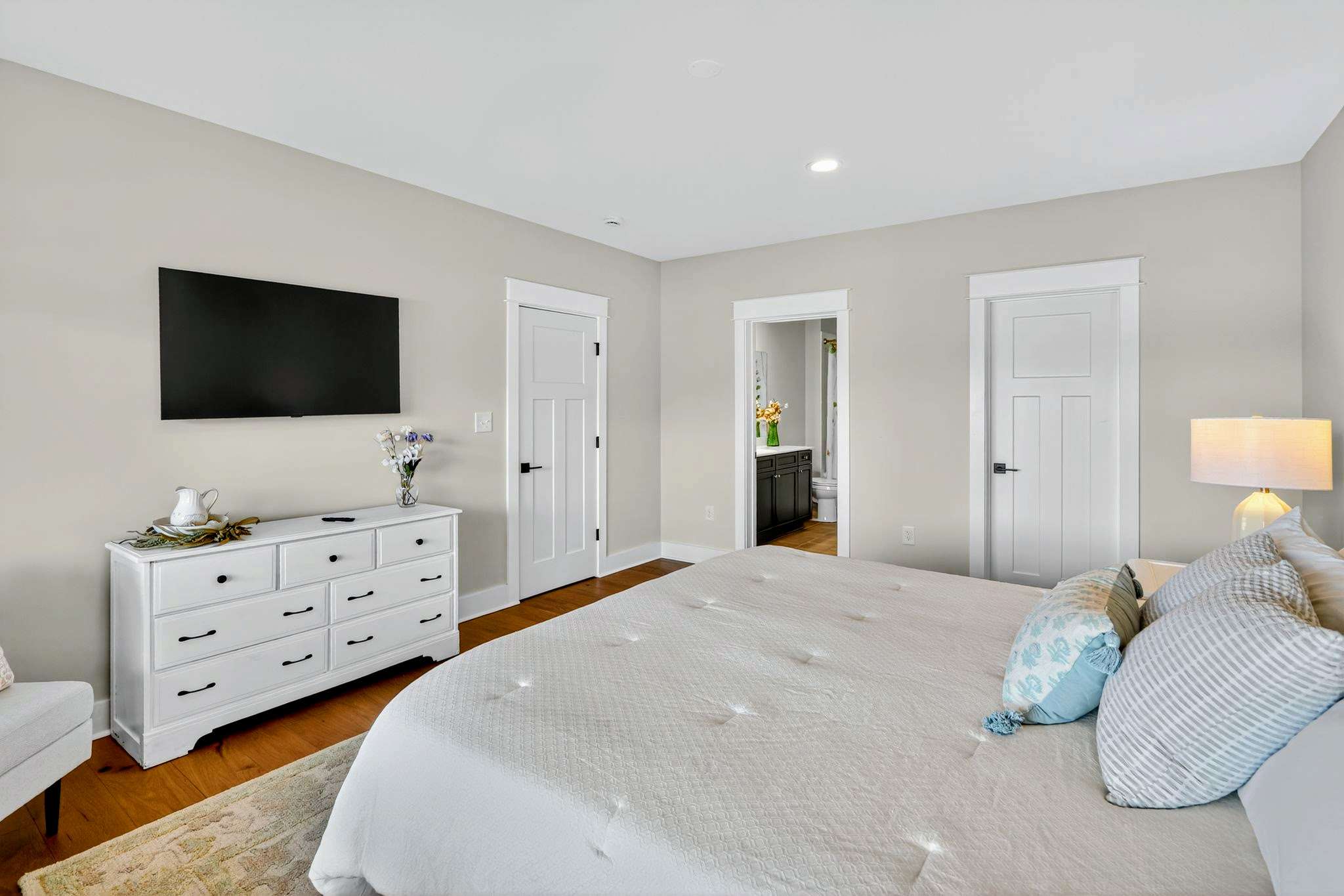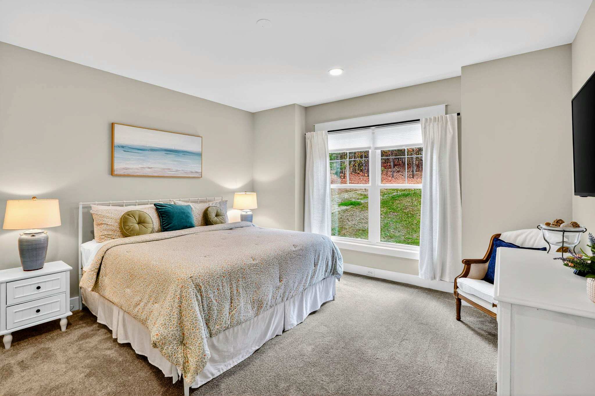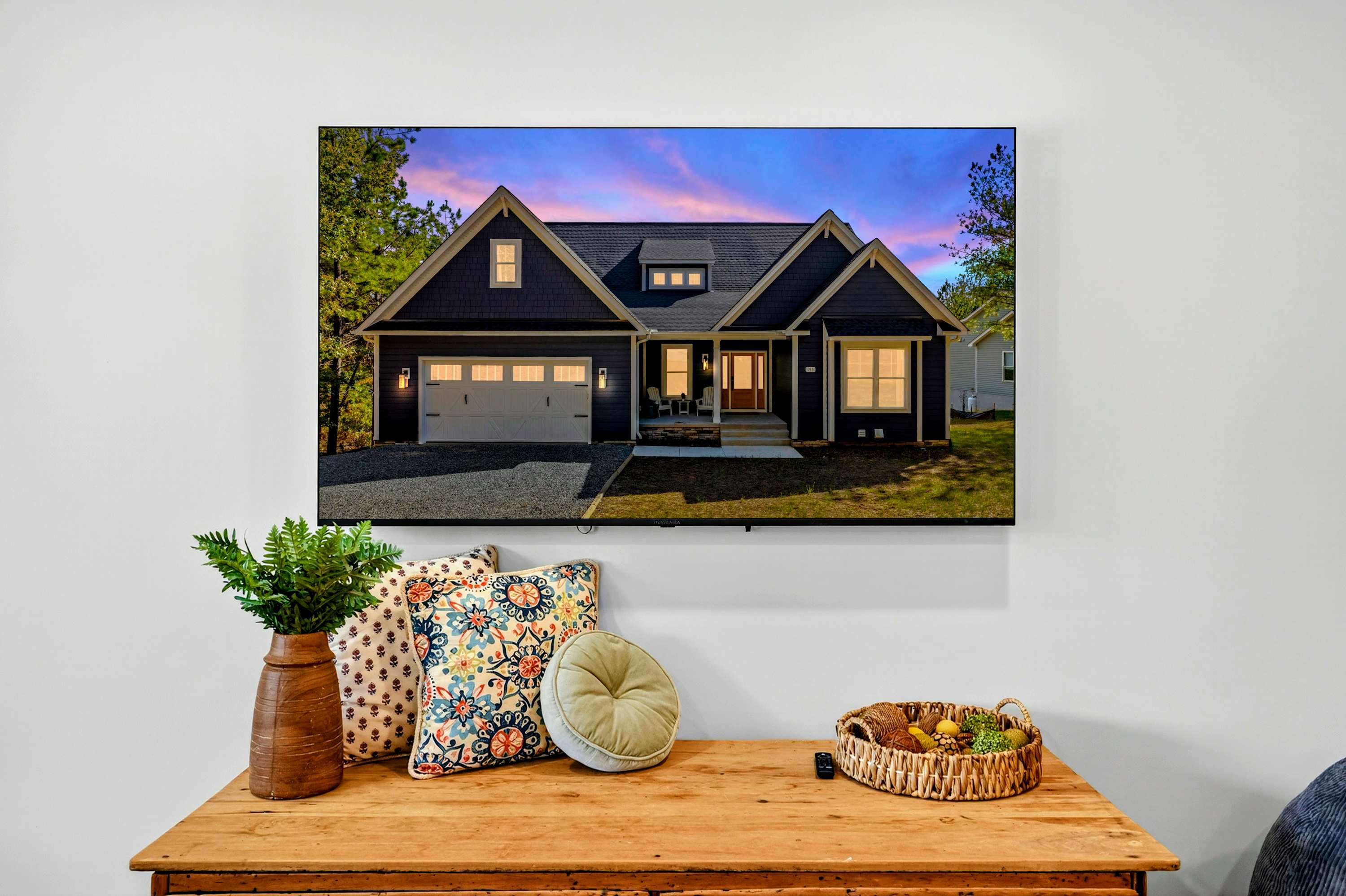 - Main Level – 2 King suites with en-suite baths and Smart TVs (primary suite has deck access; second suite does not have a lake view)