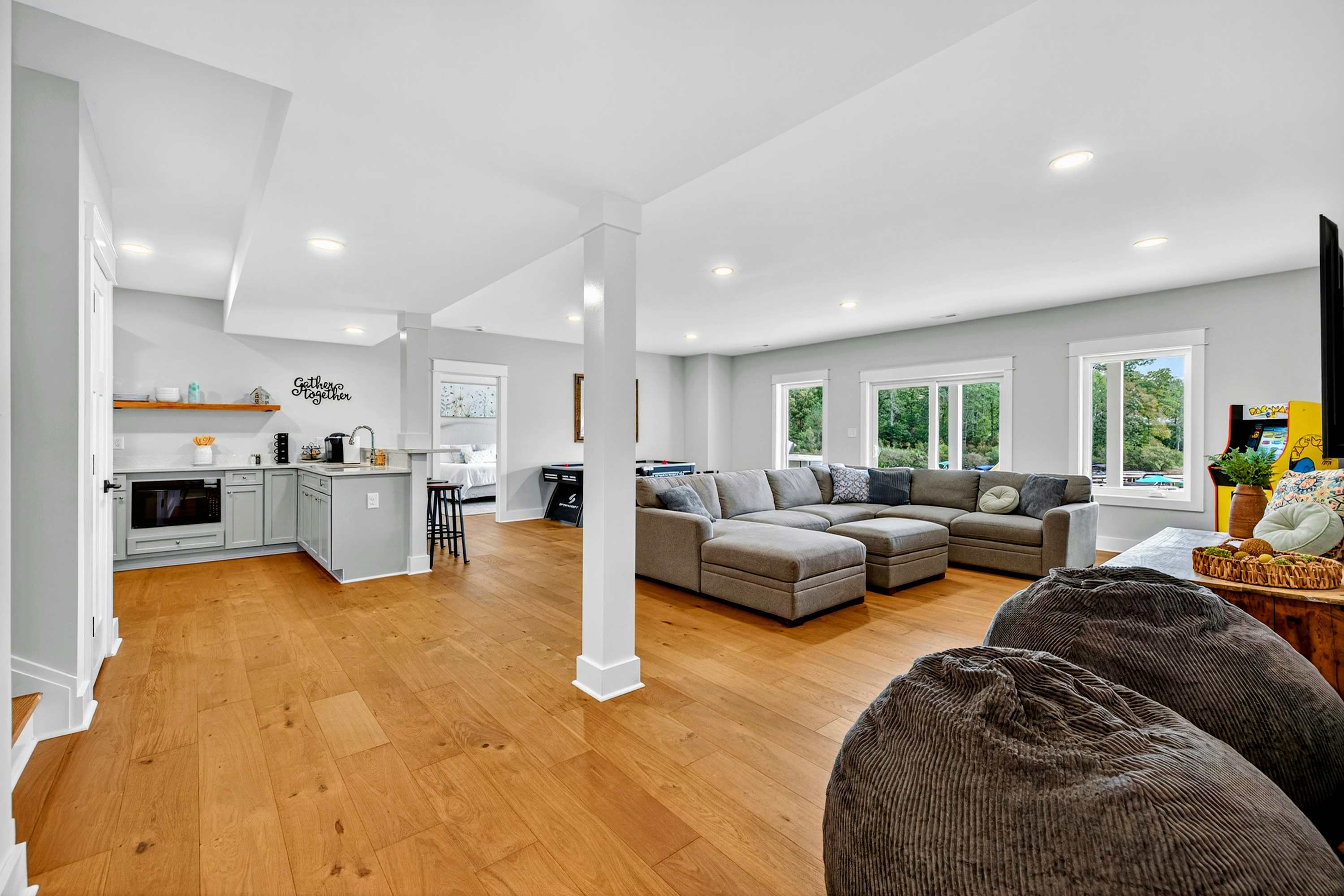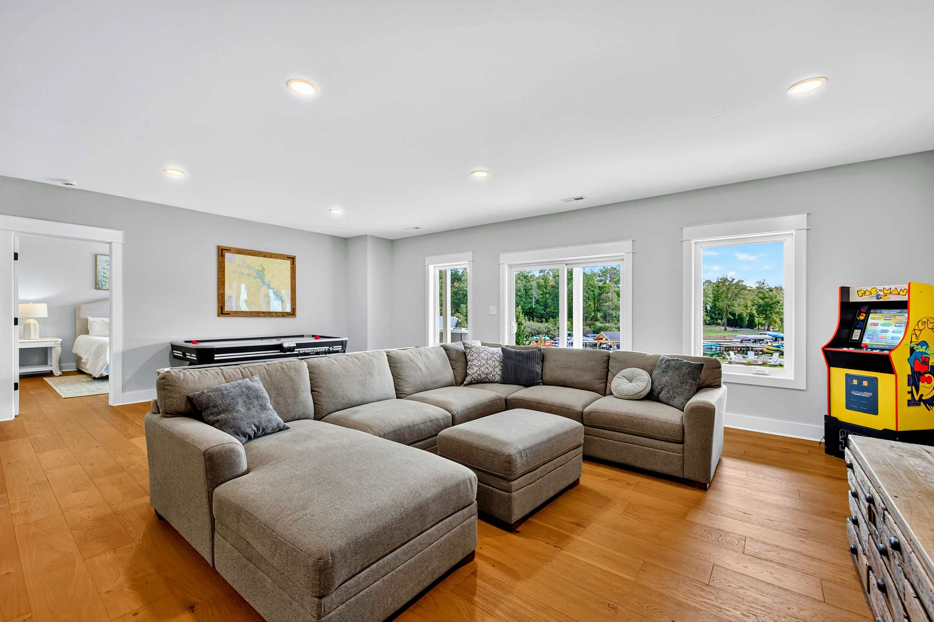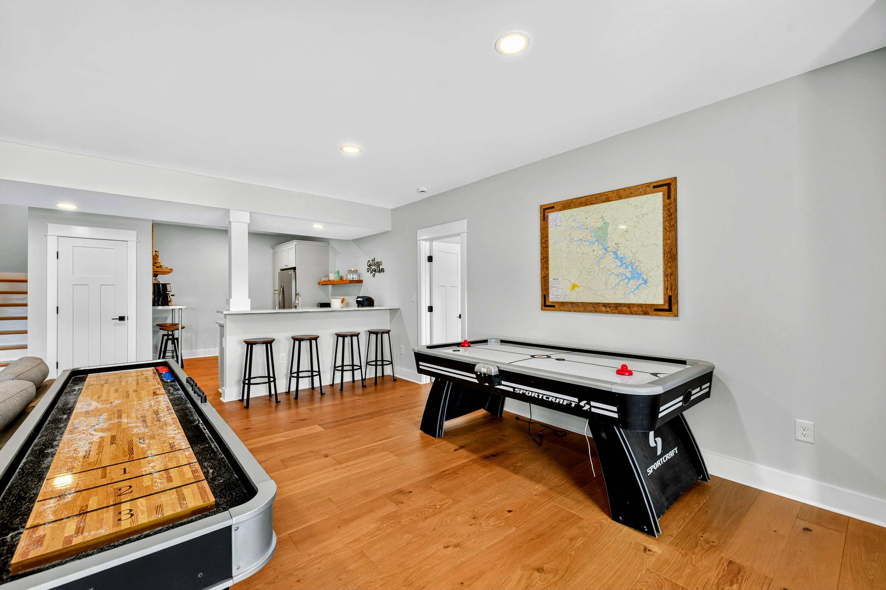 - Lower level rec room with Smart TV, shuffleboard, air hockey, and games