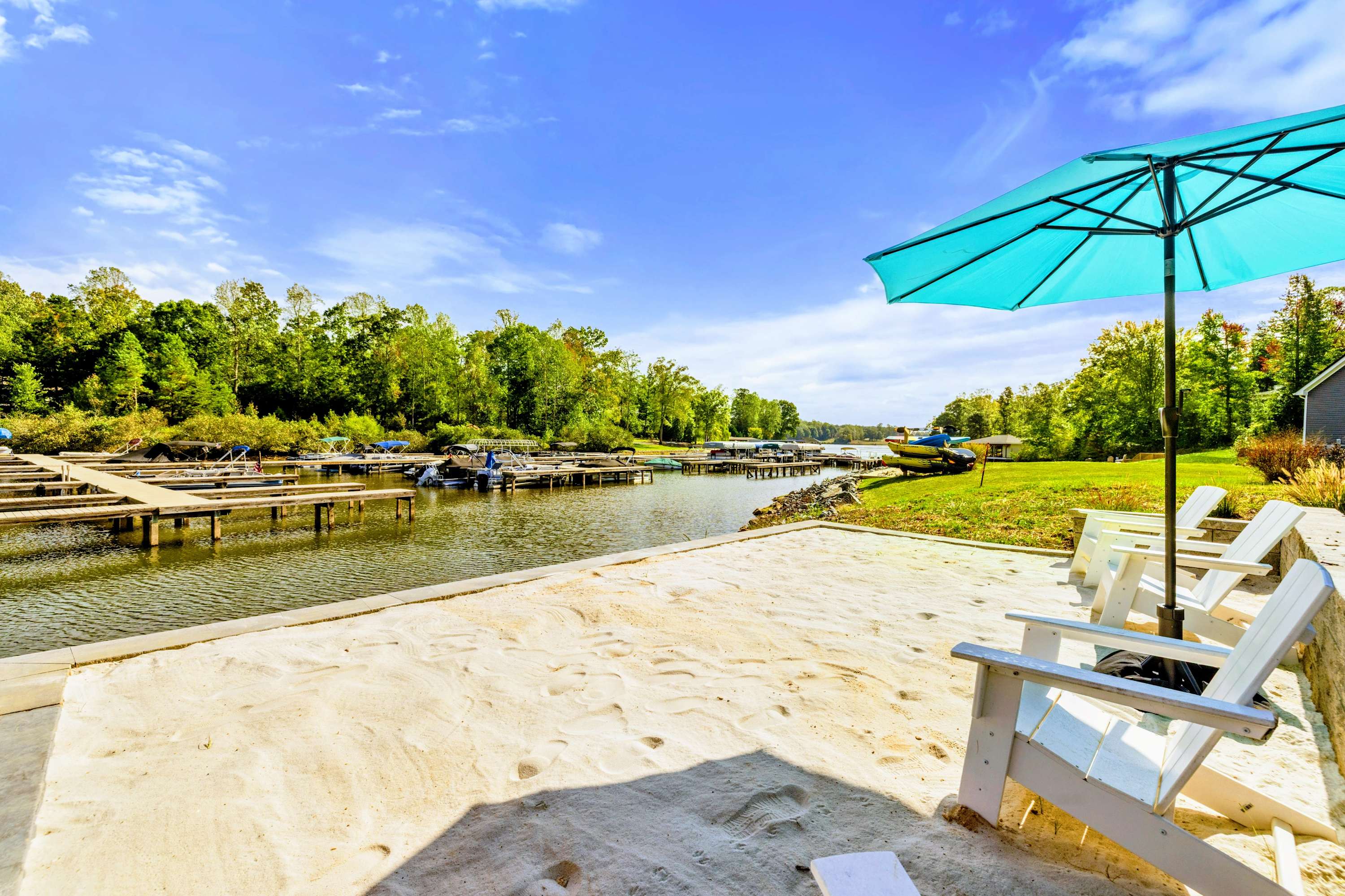 Welcome to Blueberry Bay, a stunning 7BR, 6BA luxury lakefront retreat in The Waters, Lake Anna’s premier private-side community. With sweeping lake and marina views, a private sandy beach, boat slip, hot tub, fire pit, and direct access to the pool, pickleball, and tennis courts, this home offers the feel of a private resort. Enjoy a gourmet kitchen, king suites plus bunk room, 1Gb fiber internet, kayaks, paddle boards, bikes, and beach toys, multiple living areas, and endless entertainment.