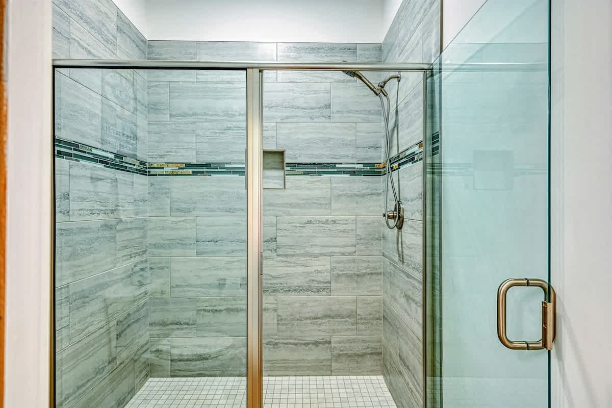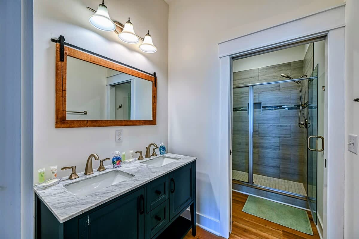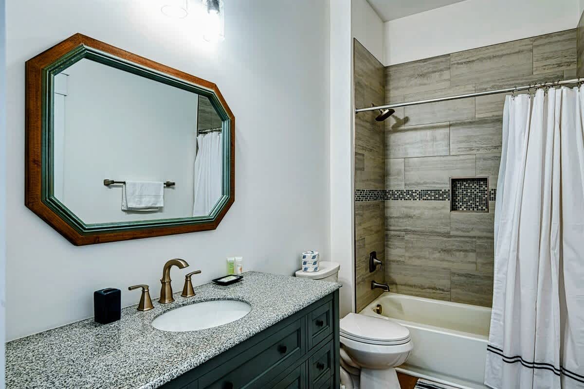 Bunk Suite (Patio Level) – Full bathroom with shower and toilet
