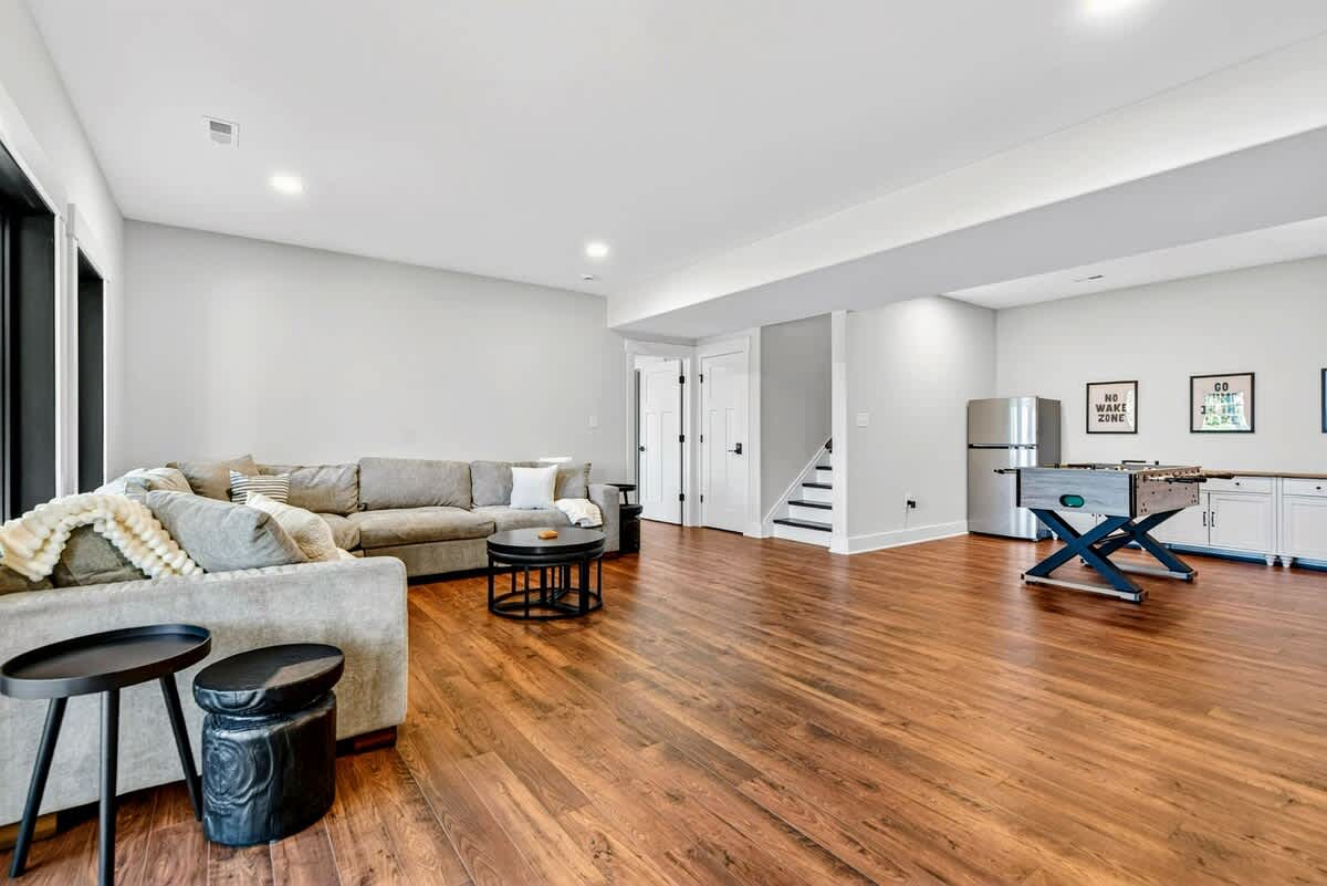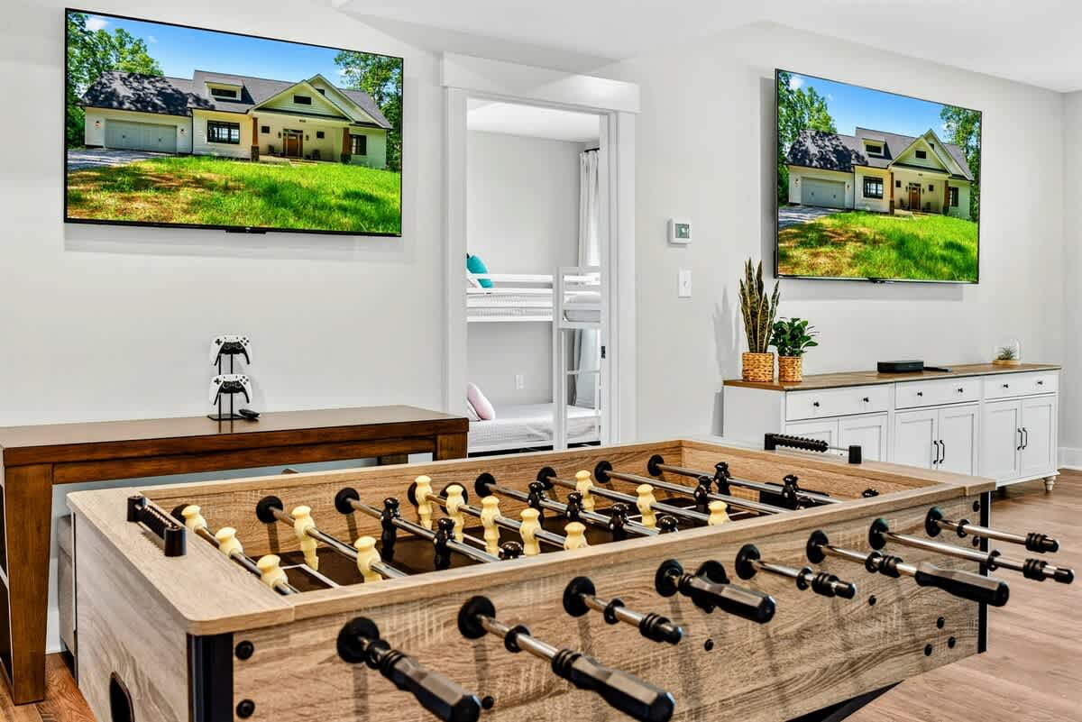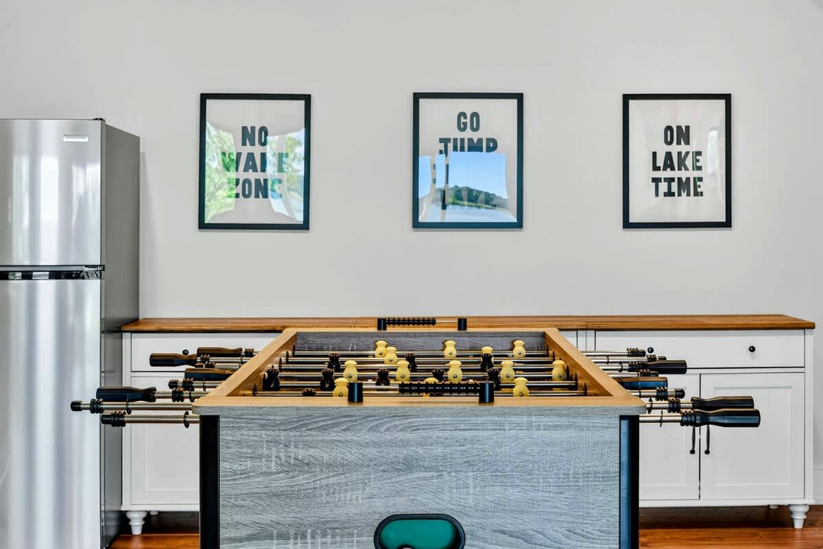 - Lower level game room with foosball table, Smart TV, and kitchenette