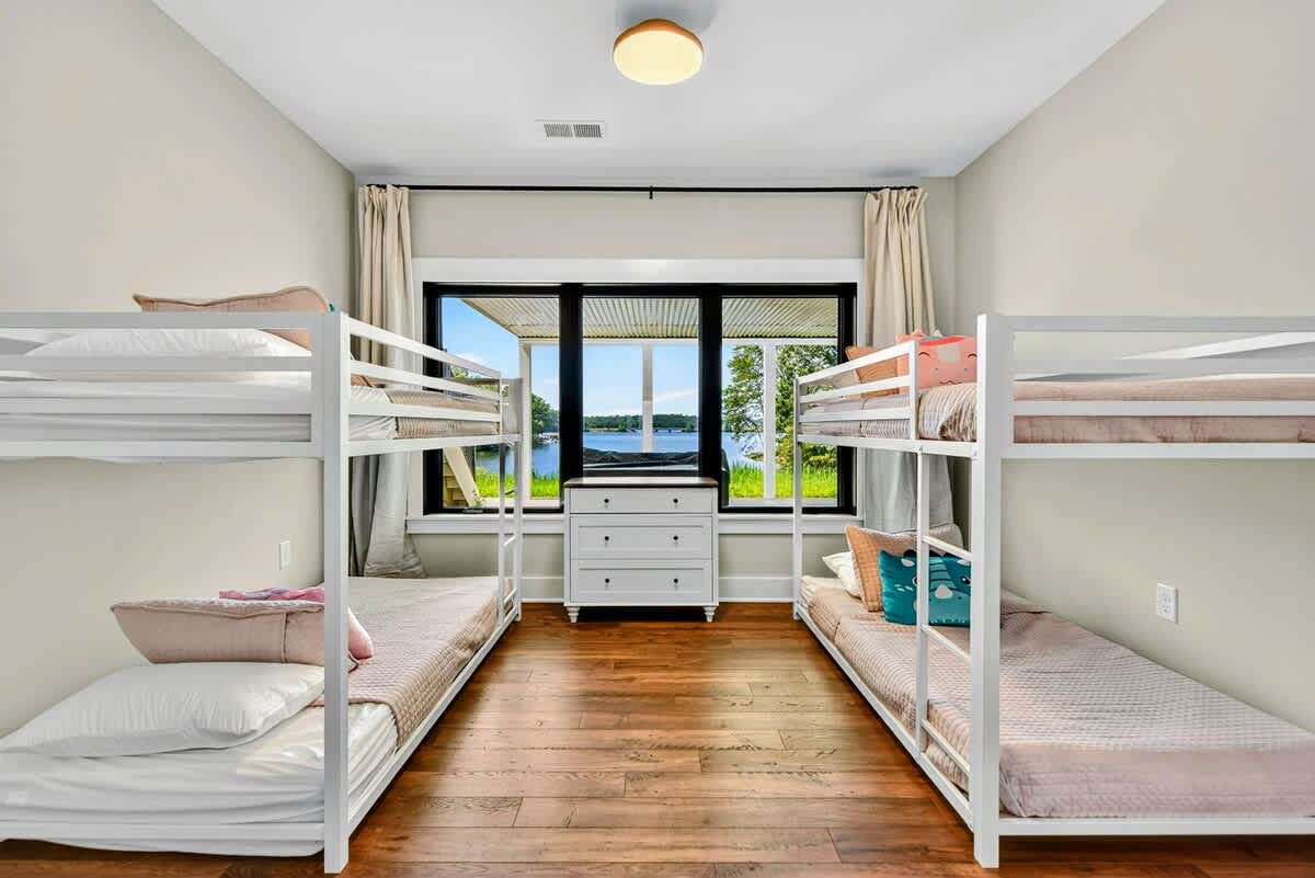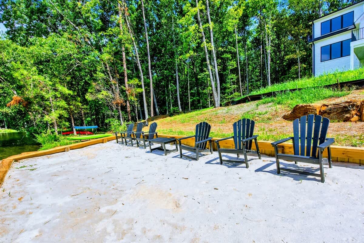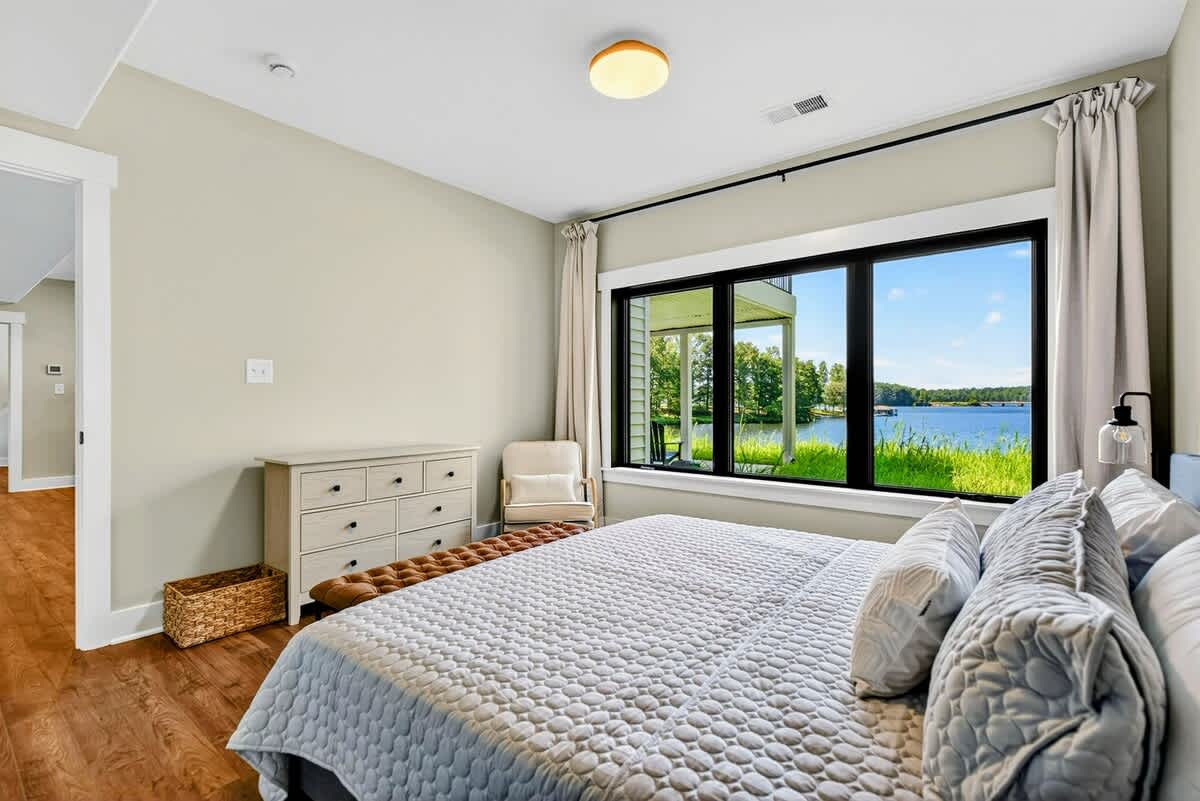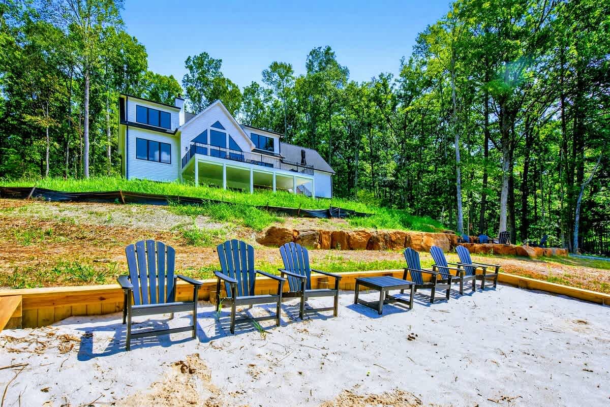Welcome to Carrs Landing, a newly built, luxury 5BR, 5.5BA lakefront retreat on the exclusive Private Side of Lake Anna. Framed by expansive water views, this custom home offers a private boathouse with boat slip, sandy beach, kayaks, paddleboards, and a fire pit under the stars. Inside, enjoy a chef’s kitchen, great room with vaulted ceilings, game room with foosball and Smart TV, high-speed Wi-Fi, and multiple relaxing spaces—ideal for year-round relaxation, fun, and unforgettable memories.