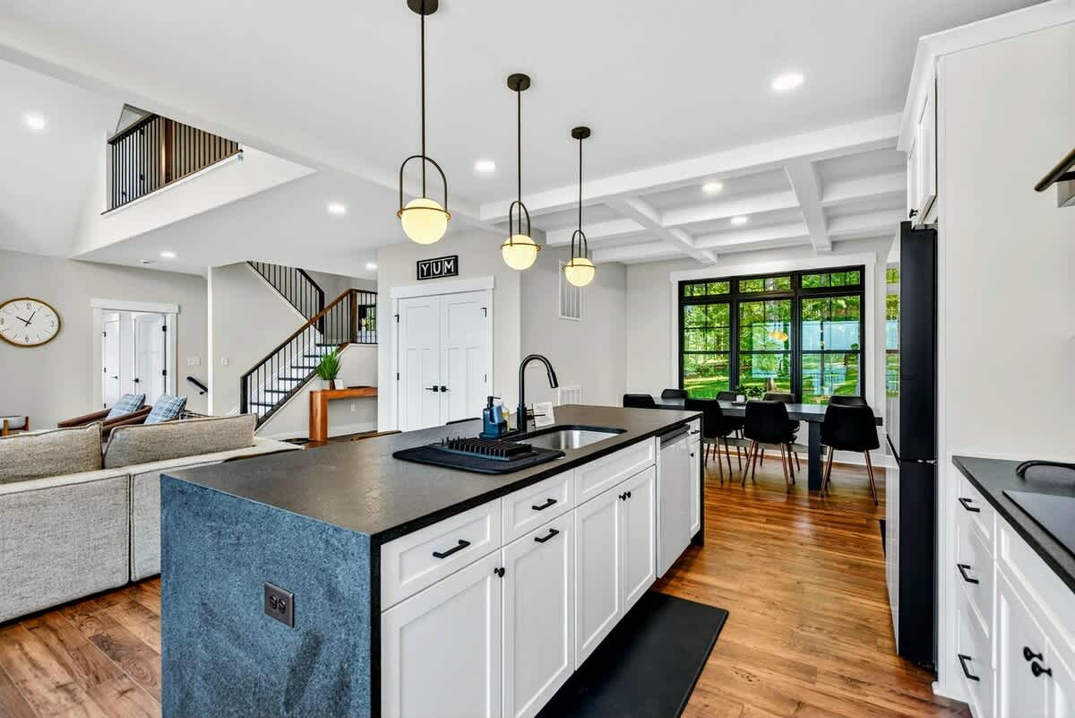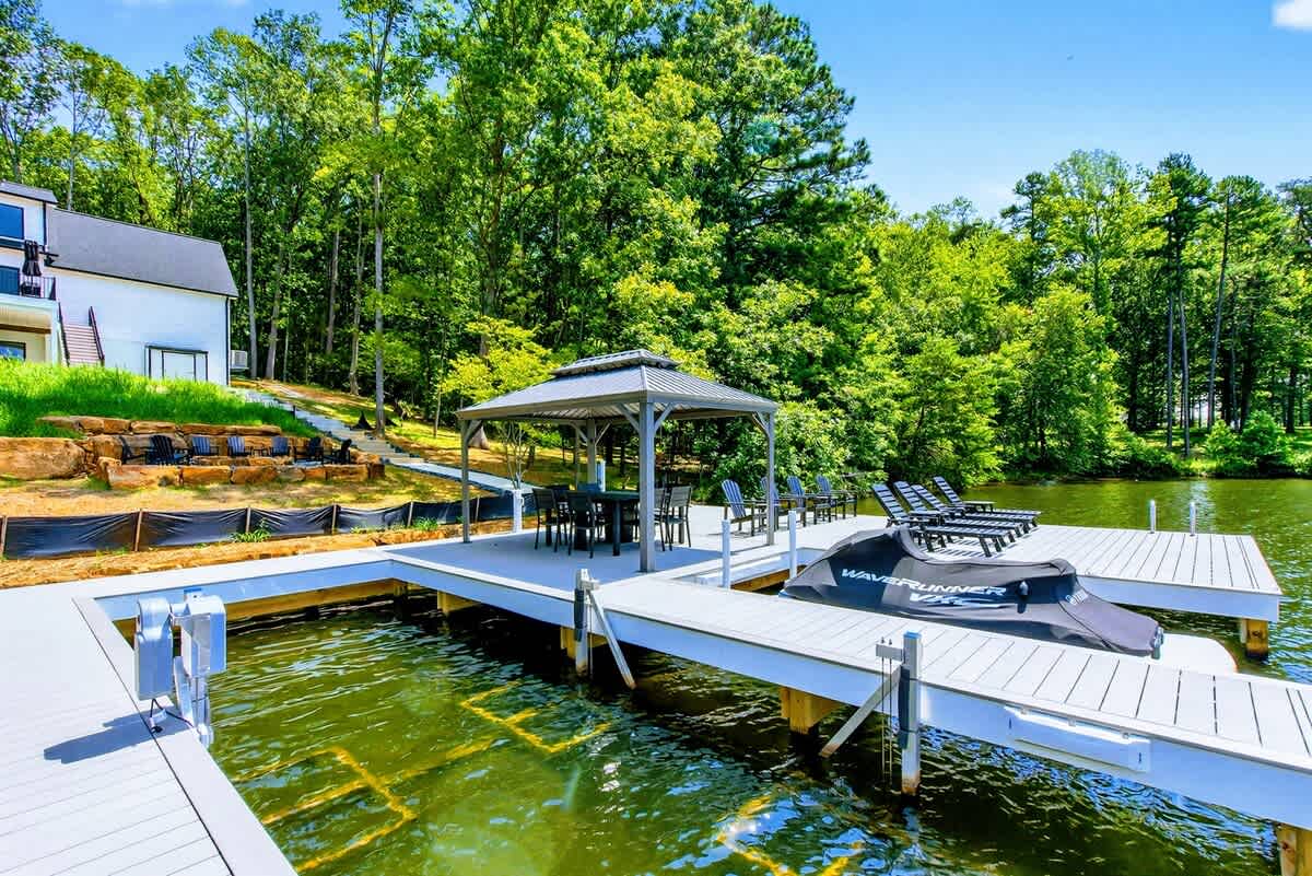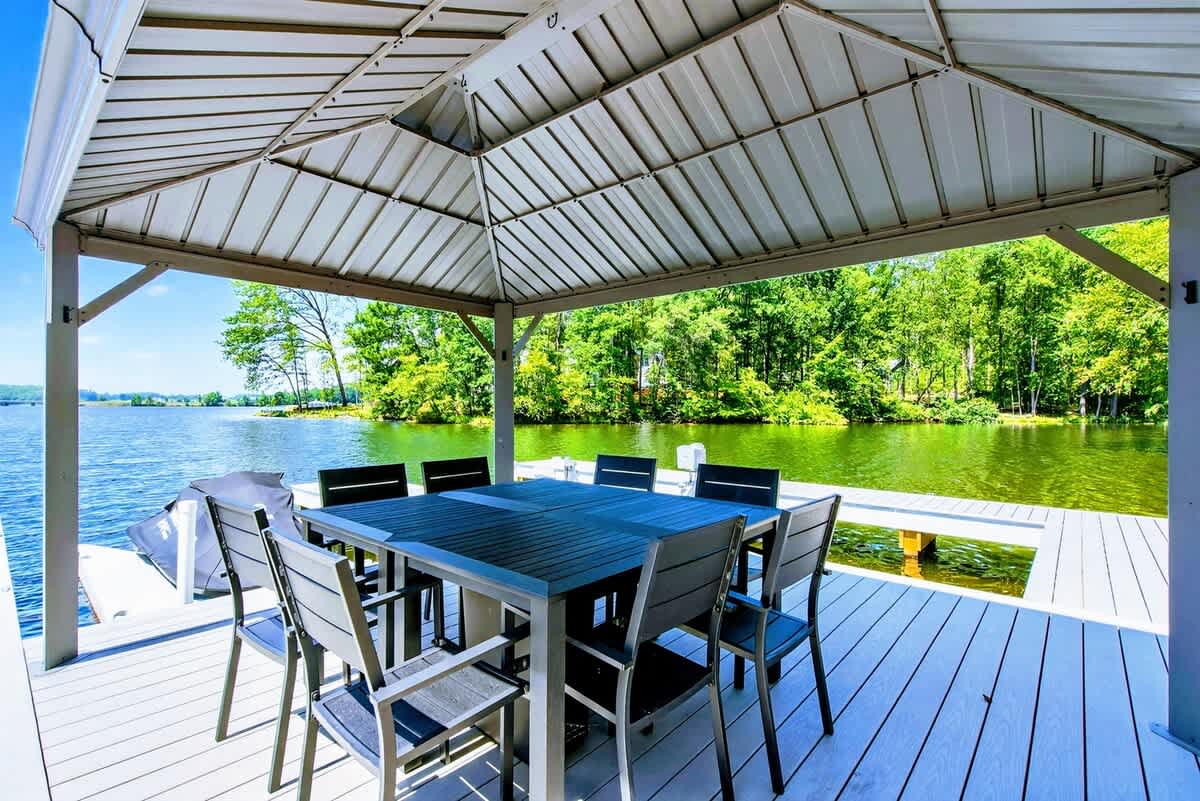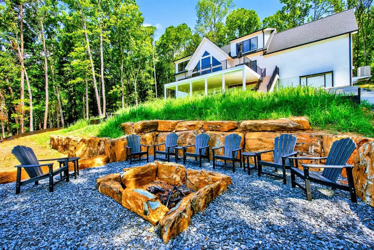 Welcome to Carrs Landing, a newly built, luxury 5BR, 5.5BA lakefront retreat on the exclusive Private Side of Lake Anna. Framed by expansive water views, this custom home offers a private boathouse with boat slip, sandy beach, kayaks, paddleboards, and a fire pit under the stars. Inside, enjoy a chef’s kitchen, great room with vaulted ceilings, game room with foosball and Smart TV, high-speed Wi-Fi, and multiple relaxing spaces—ideal for year-round relaxation, fun, and unforgettable memories.