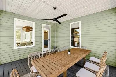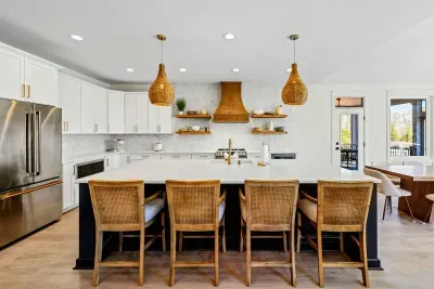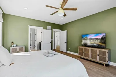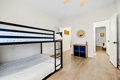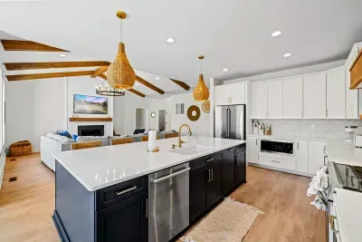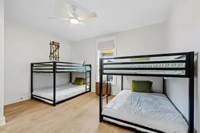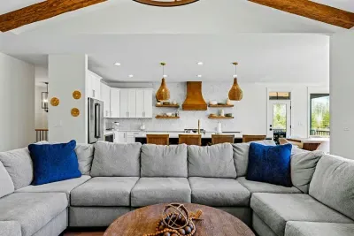 The home offers 4 well-appointed bedrooms, 3 full bathrooms, and a half bath. Sleeping arrangements include 3 king bedrooms and a fun bunk room with 2 full-over-full bunks—ideal for families or groups. The gourmet kitchen is fully stocked and ready for your favorite meals, with stainless steel appliances, a wine & beverage fridge, and ample seating indoors and out for large gatherings.