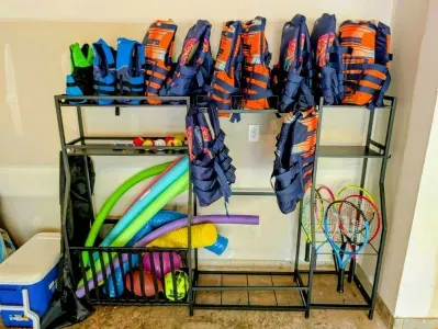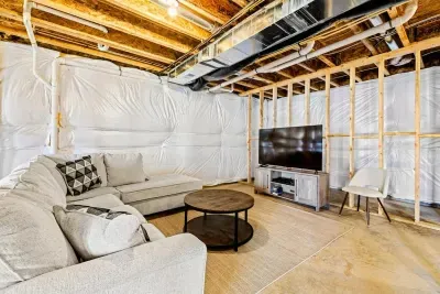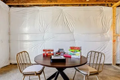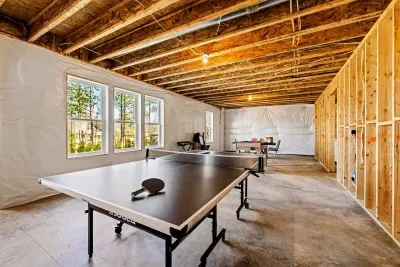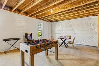 The unfinished basement is packed with entertainment options including ping pong, foosball, PlayStation 4 (PS4) with games, an arcade machine, board games, and more—perfect for family fun. With high-speed fiber internet and free Wi-Fi, streaming and staying connected is effortless.