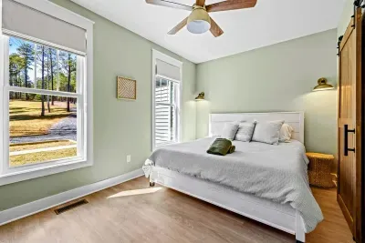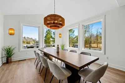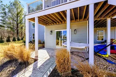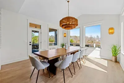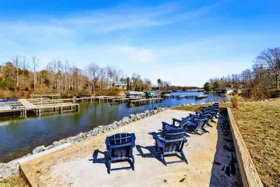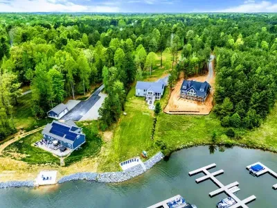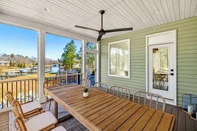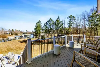 Coastal Cove is a new, fully equipped lakefront home on the private side of Lake Anna—just bring your clothes, swimming suits, and water shoes. Enjoy fishing from the backyard, kayaking, a game-filled basement, built-in smokeless gas fire pit, and abundant indoor/outdoor seating for large groups. Located in The Waters community with access to a pool, clubhouse, tennis & pickleball courts, beach, playground, and boat slips in the marina. Perfect for relaxation, recreation, and making memories.