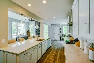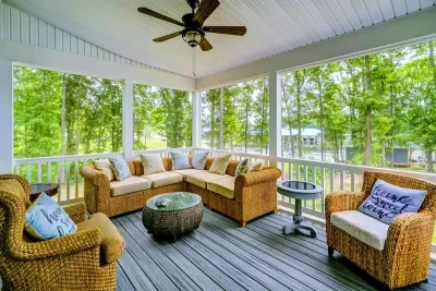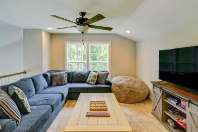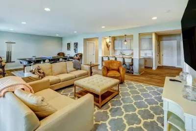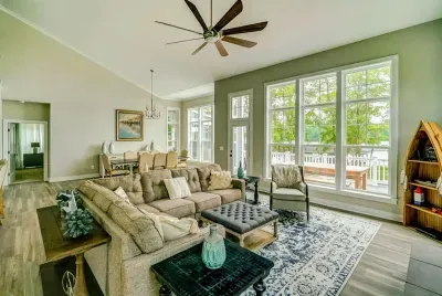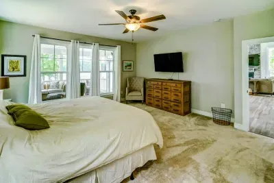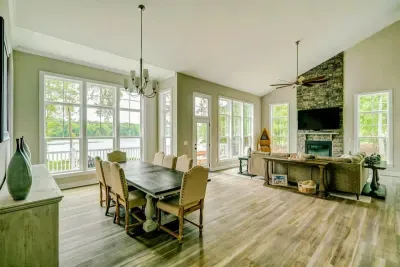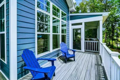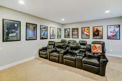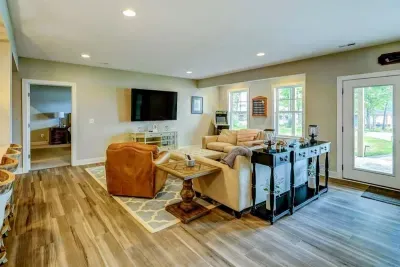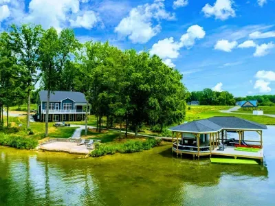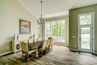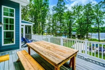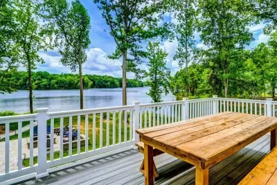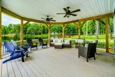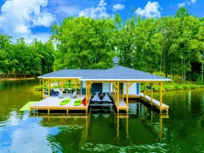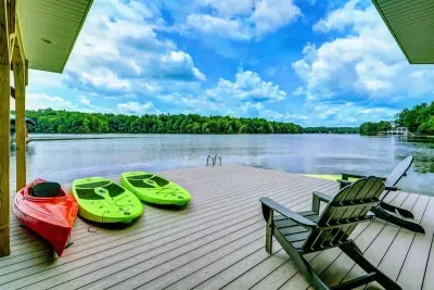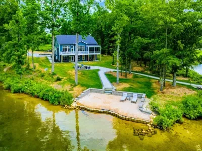 Dream Big Oasis is a brand new lakefront home with amazing views on the Private Side of Lake Anna. Enjoy a large serene lot with 250' of waterfront, a private sandy beach, and private dock and boat house with tiki bar and all the fun water toys. Take in the gorgeous lake views while relaxing beside an outdoor fire pit or on the large furnished deck with outdoor dining options. Kick back in a super comfy recliner in our Home Movie Theater room with 85" 4K Smart TV.
