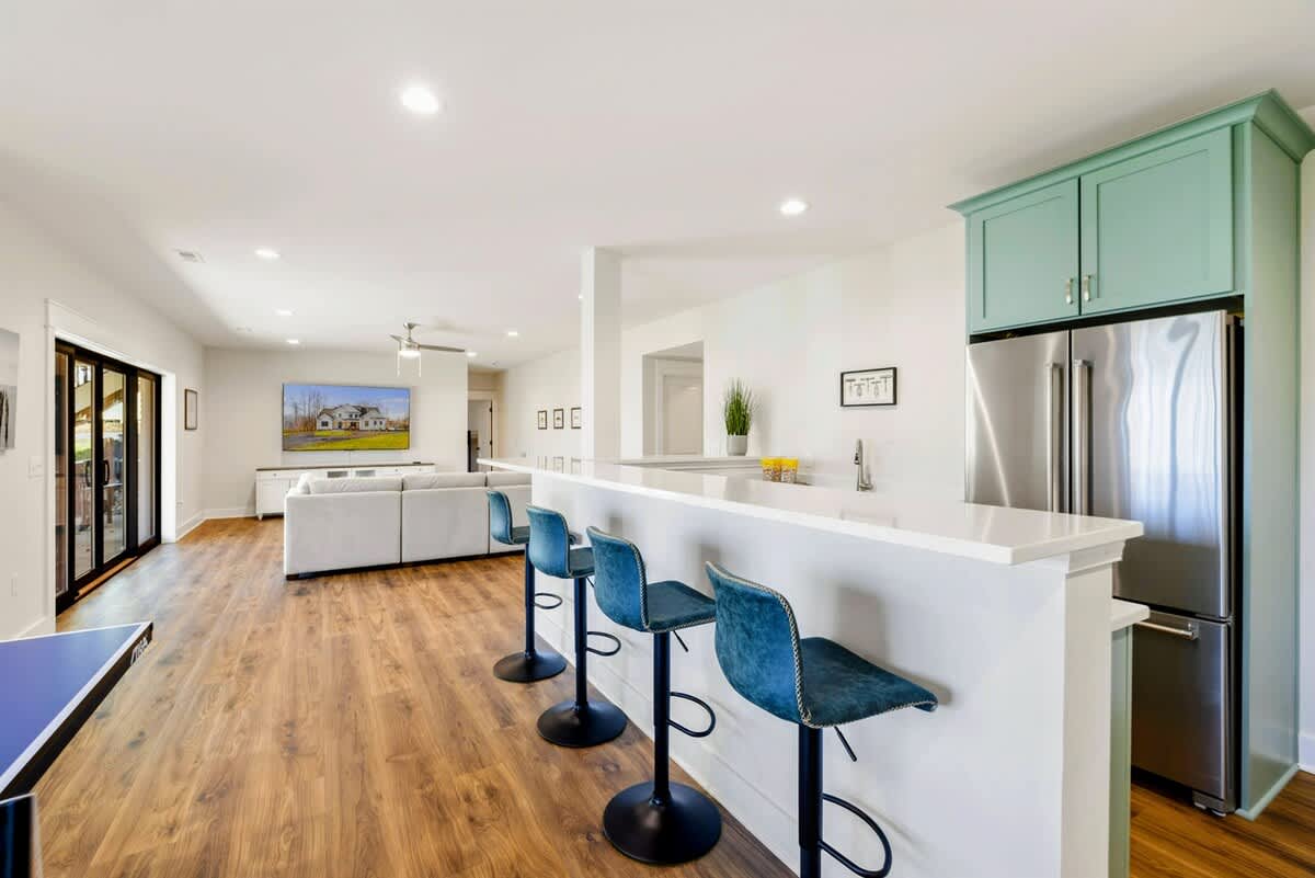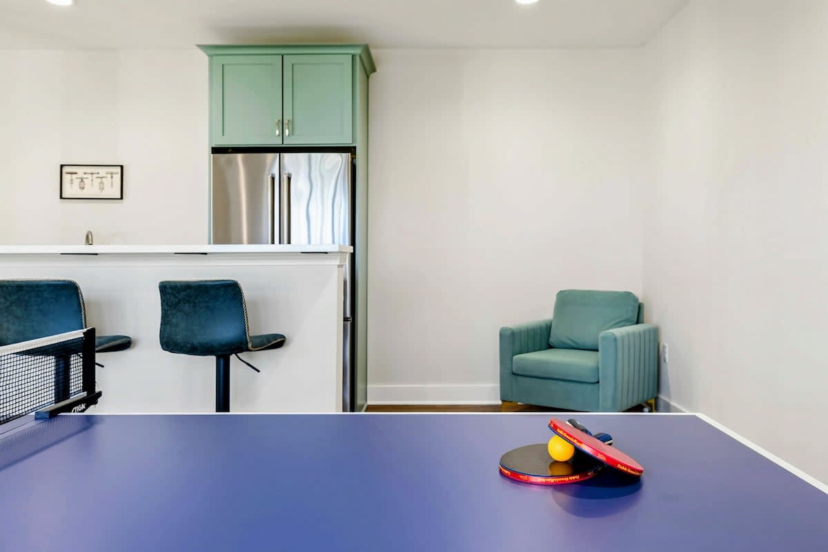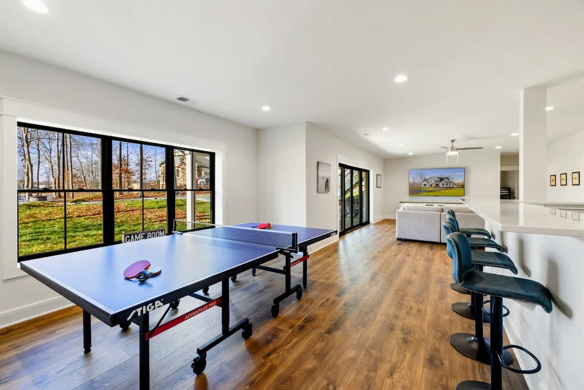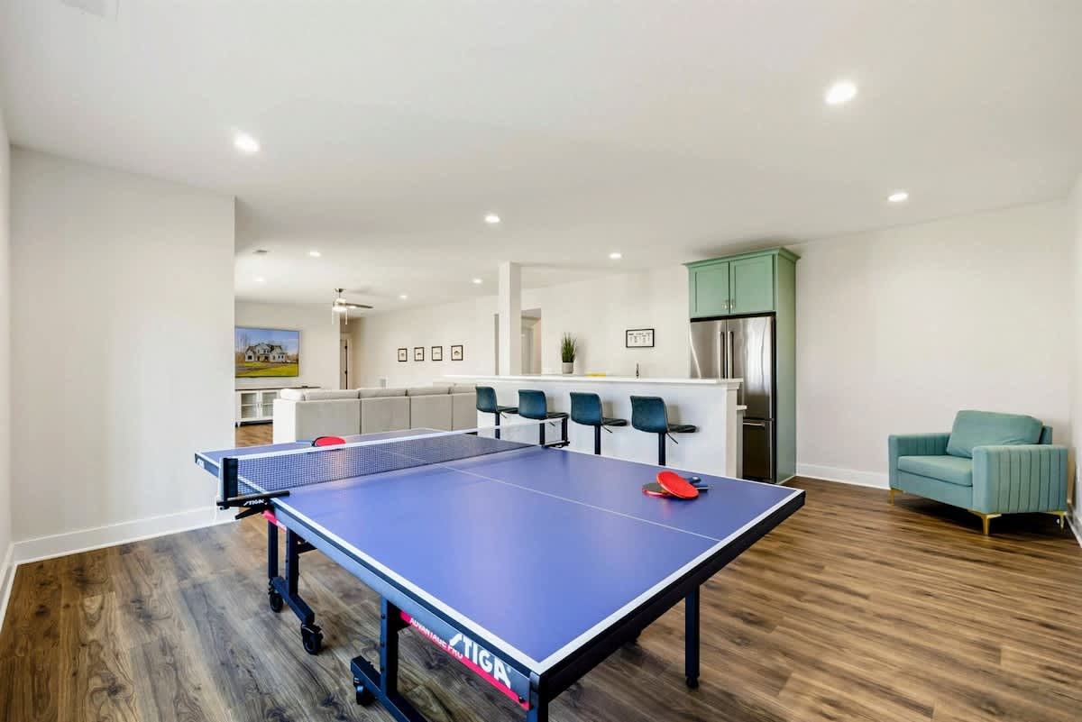 • Game Room with Smart TV, Ping Pong Table, Kitchenette, and Wet Bar