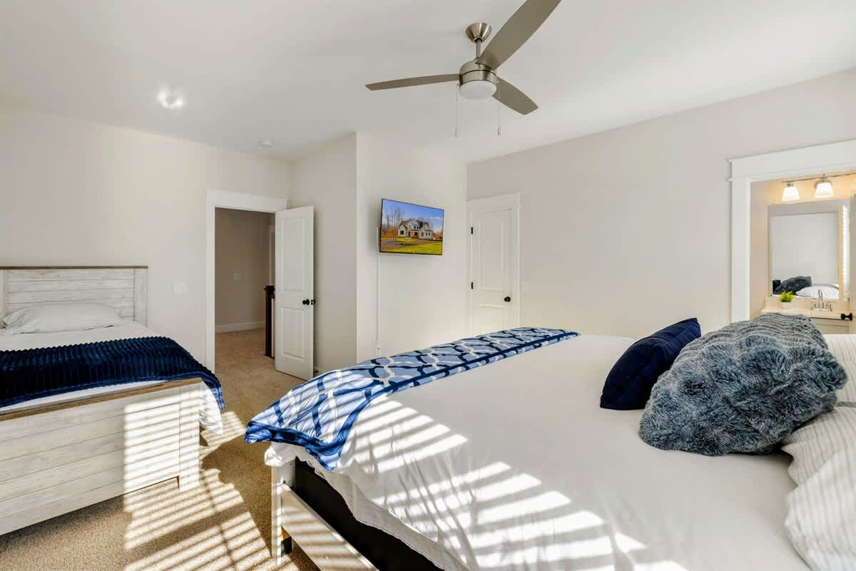 - Bedroom 3 - King Bed + Twin Bed Suite with Lake View, TV, and Private Ensuite Bathroom with Shower