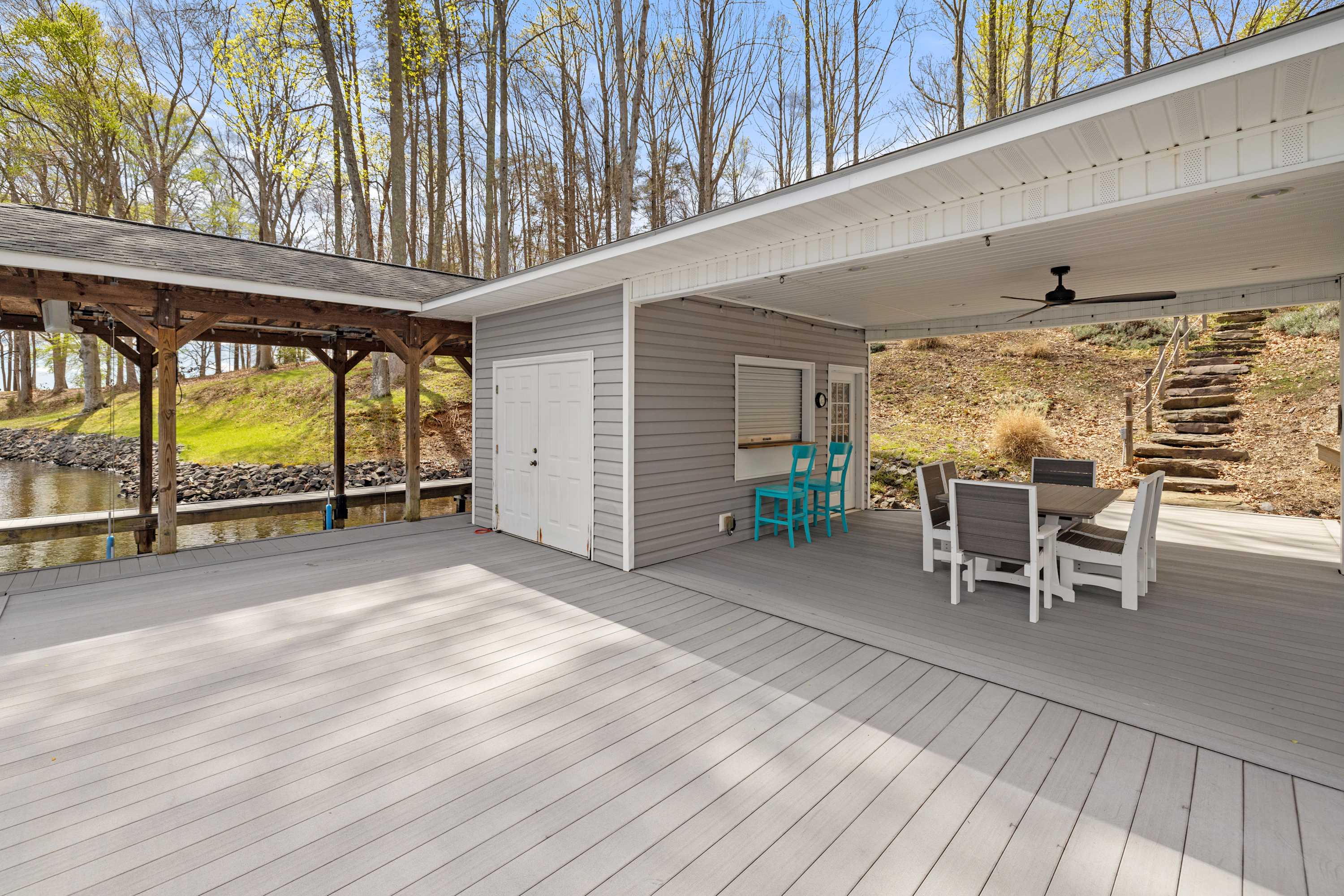 Experience the ultimate lakeside lifestyle at this exceptional waterfront retreat in Lake Anna’s most coveted Both Waters subdivision. This haven offers breathtaking, expansive water views of the public side of Lake Anna, with 260 feet of pristine rip-rap shoreline. Stroll down the beautifully crafted stone steps to your deep-water covered boathouse, boasting a water depth of ~10 feet, an electric boat lift, two electric jet ski lifts, a spacious sun deck, a covered entertainment area, and a storage room with a roll-up window.
