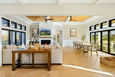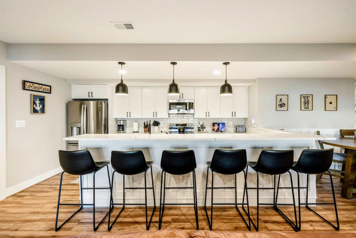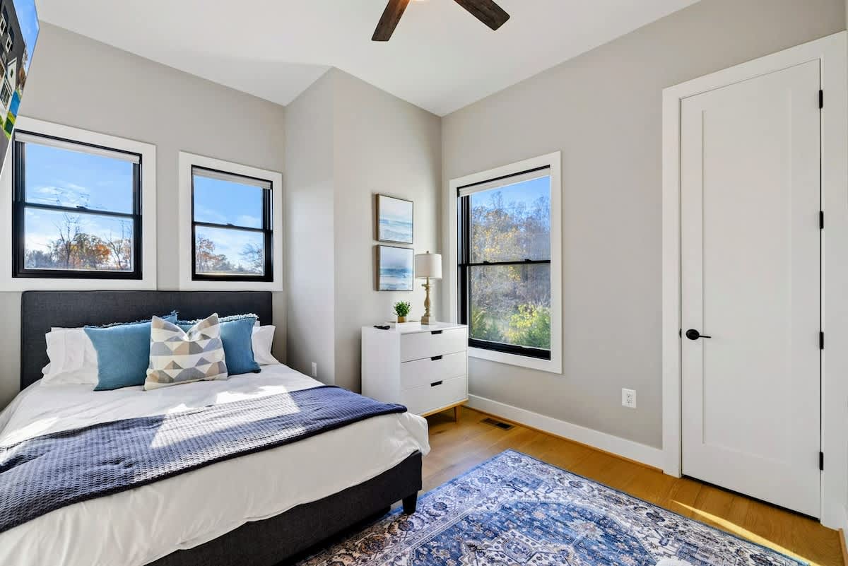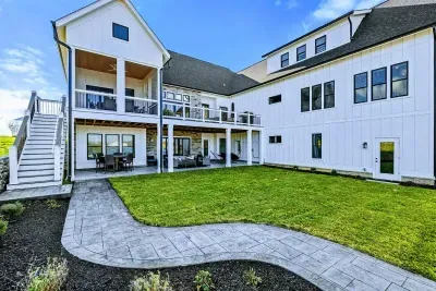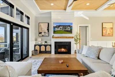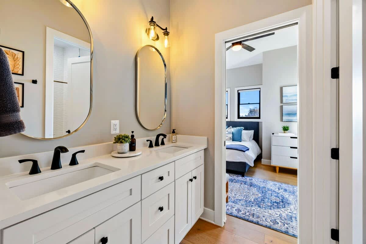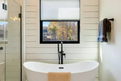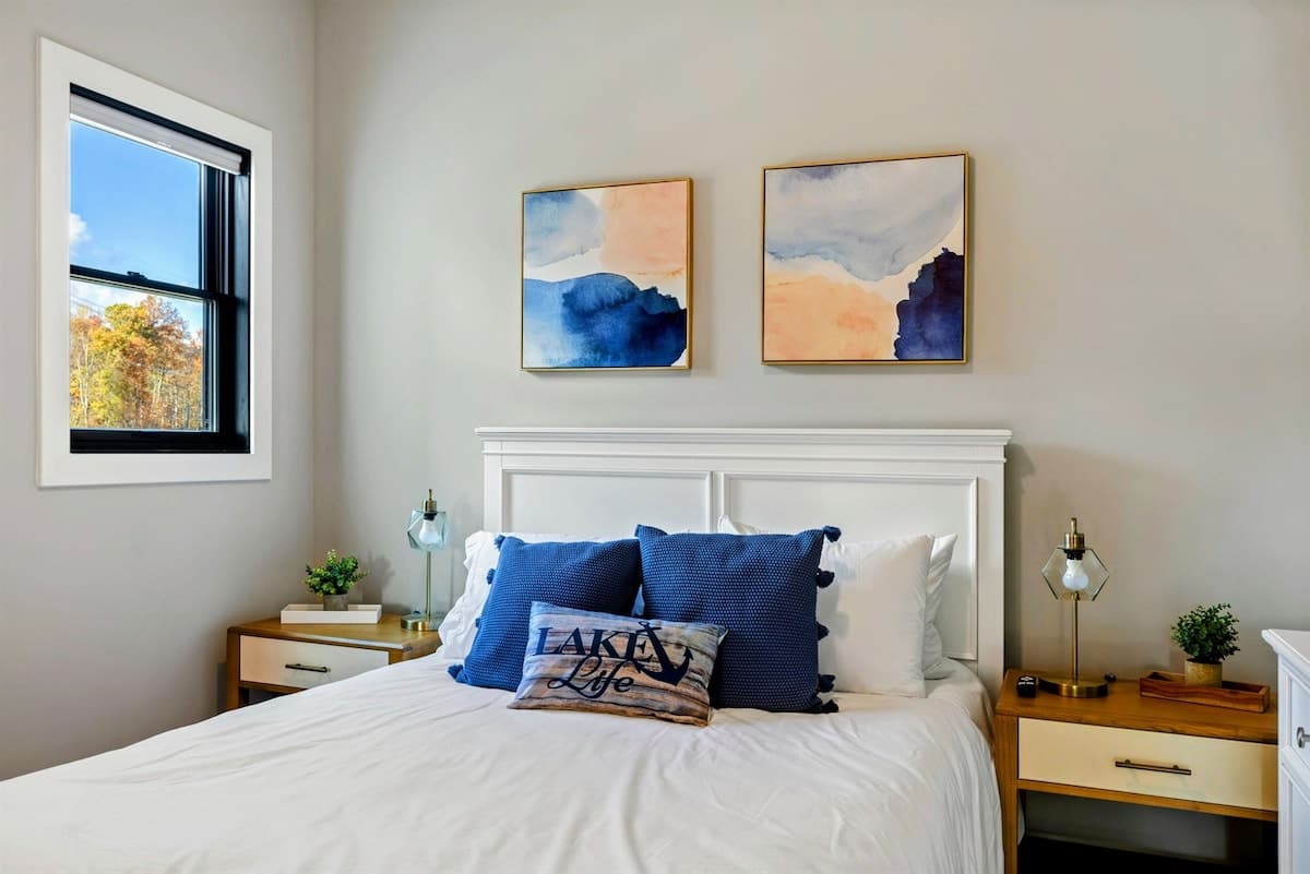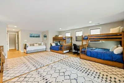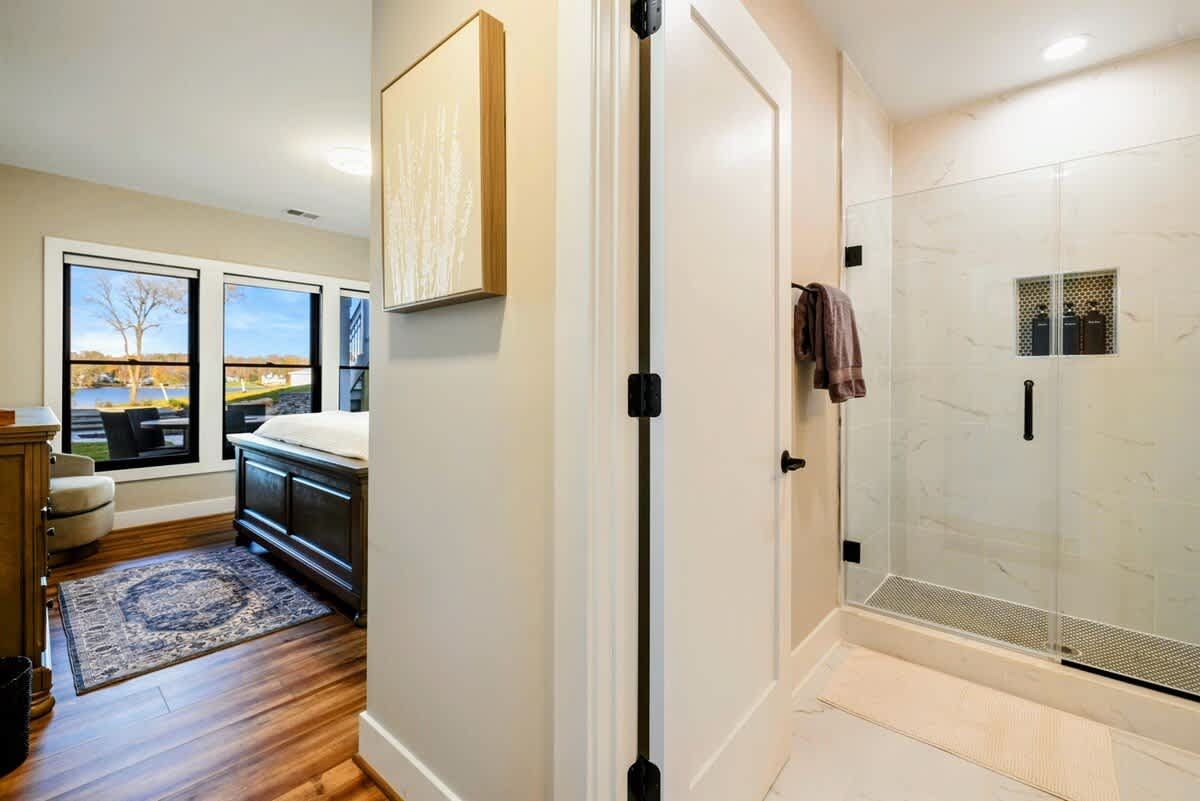 Experience comfort and luxury at our brand new modern and spacious lakefront home on the Private Side of Lake Anna. Enjoy the blue water lake views from the large boat dock and boat house, while relaxing in the Plunge Pool / Hot Tub, atop of our deck, or from the comfort of inside the home through many of the large windows. You will love the entire property including the waterfront shoreline with a gently sloped naturally sandy bottom, private beach, and warm freshwater. We provide lots of water toys including kayaks, paddle boards, and a canoe. Roast some delicious s'mores outside using our outdoor fire pit, and have a BBQ using our outdoor gas grills on the deck and patio. Some of our outdoor yard games include cornhole, volleyball, horseshoes, bocce ball, and more. Inside, this expansive home has plenty of space for everyone with 9 bedrooms, 6 full and 2 half bathrooms, an open floor plan and multiple living areas, fully equipped kitchens, and two laundry rooms. Relax in the spacious main great room with water views through the huge bright windows, a gas fireplace, and 4K Smart TV.
