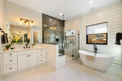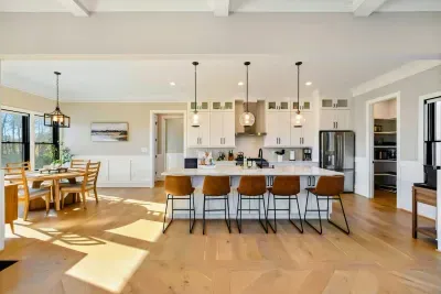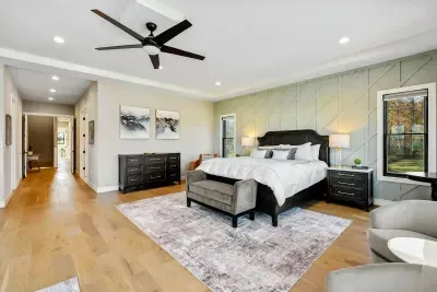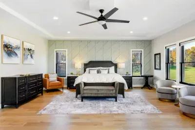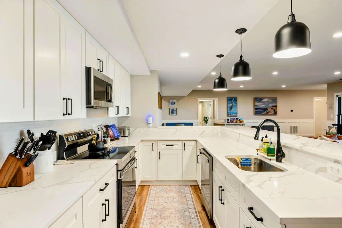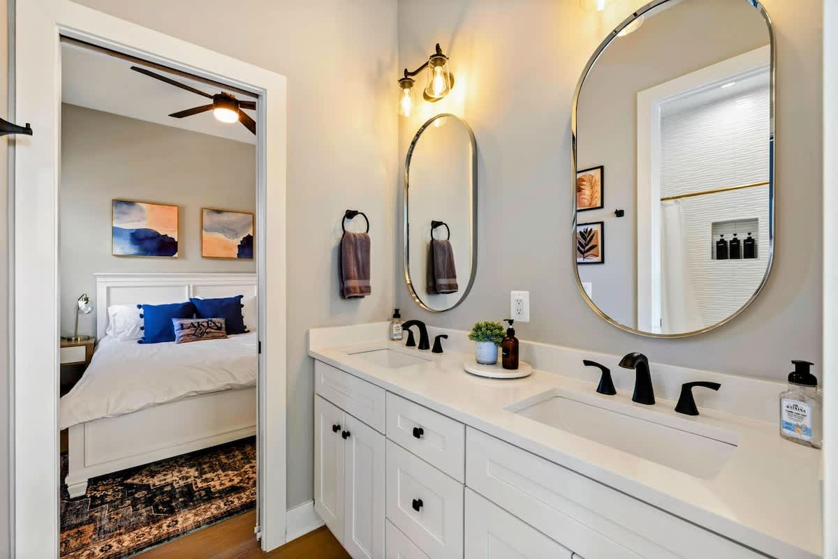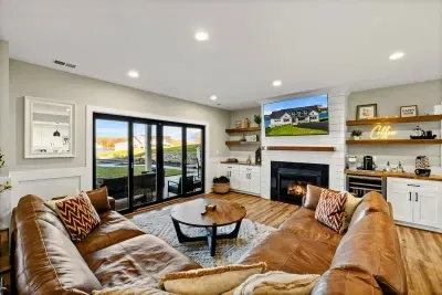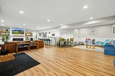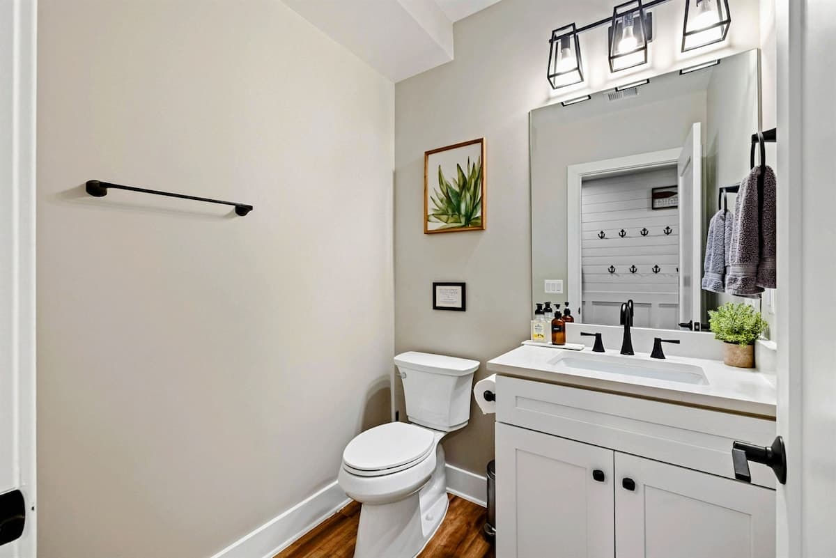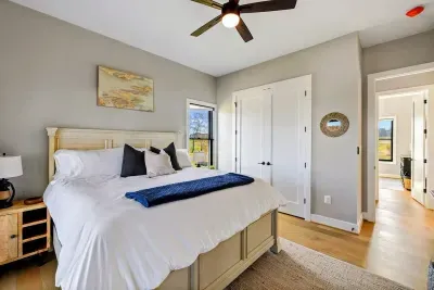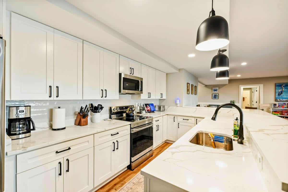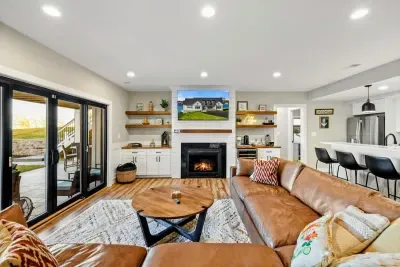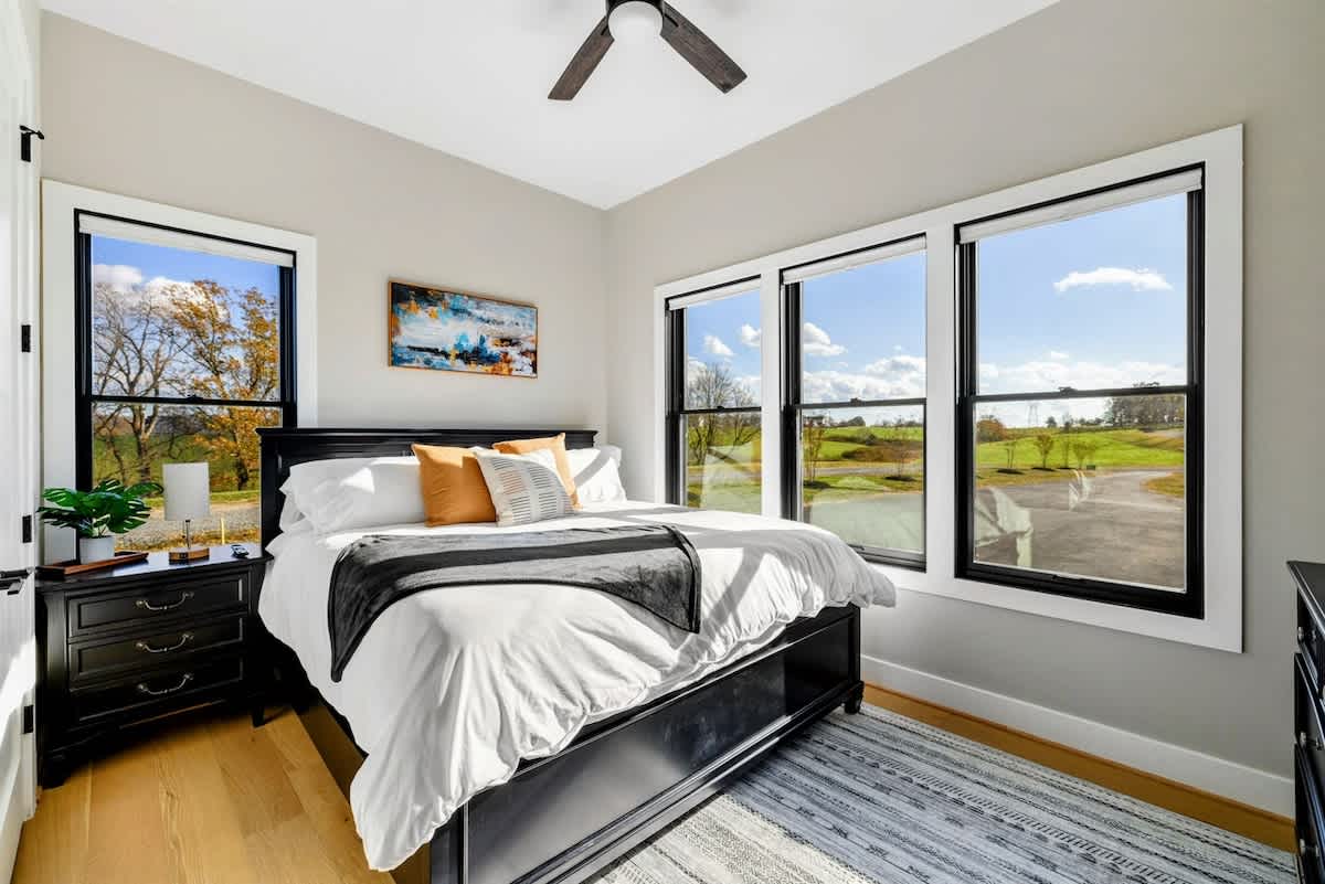 Experience comfort and luxury at our brand new modern and spacious lakefront home on the Private Side of Lake Anna. Enjoy the blue water lake views from the large boat dock and boat house, while relaxing in the Plunge Pool / Hot Tub, atop of our deck, or from the comfort of inside the home through many of the large windows. You will love the entire property including the waterfront shoreline with a gently sloped naturally sandy bottom, private beach, and warm freshwater. We provide lots of water toys including kayaks, paddle boards, and a canoe. Roast some delicious s'mores outside using our outdoor fire pit, and have a BBQ using our outdoor gas grills on the deck and patio. Some of our outdoor yard games include cornhole, volleyball, horseshoes, bocce ball, and more. Inside, this expansive home has plenty of space for everyone with 9 bedrooms, 6 full and 2 half bathrooms, an open floor plan and multiple living areas, fully equipped kitchens, and two laundry rooms. Relax in the spacious main great room with water views through the huge bright windows, a gas fireplace, and 4K Smart TV.