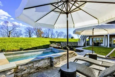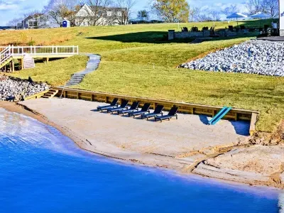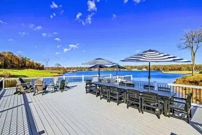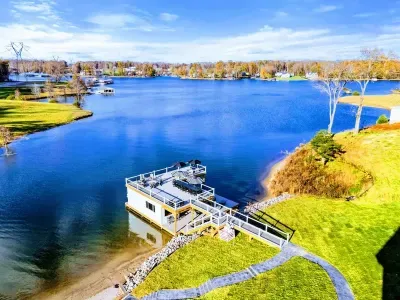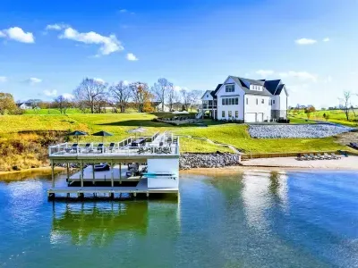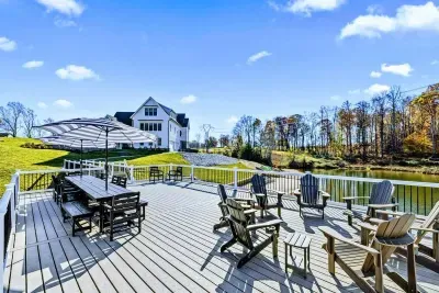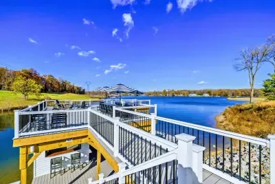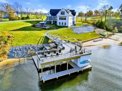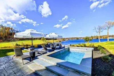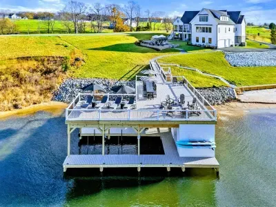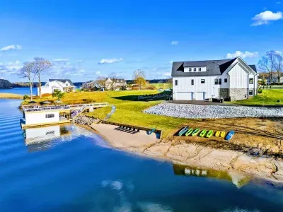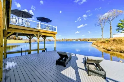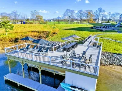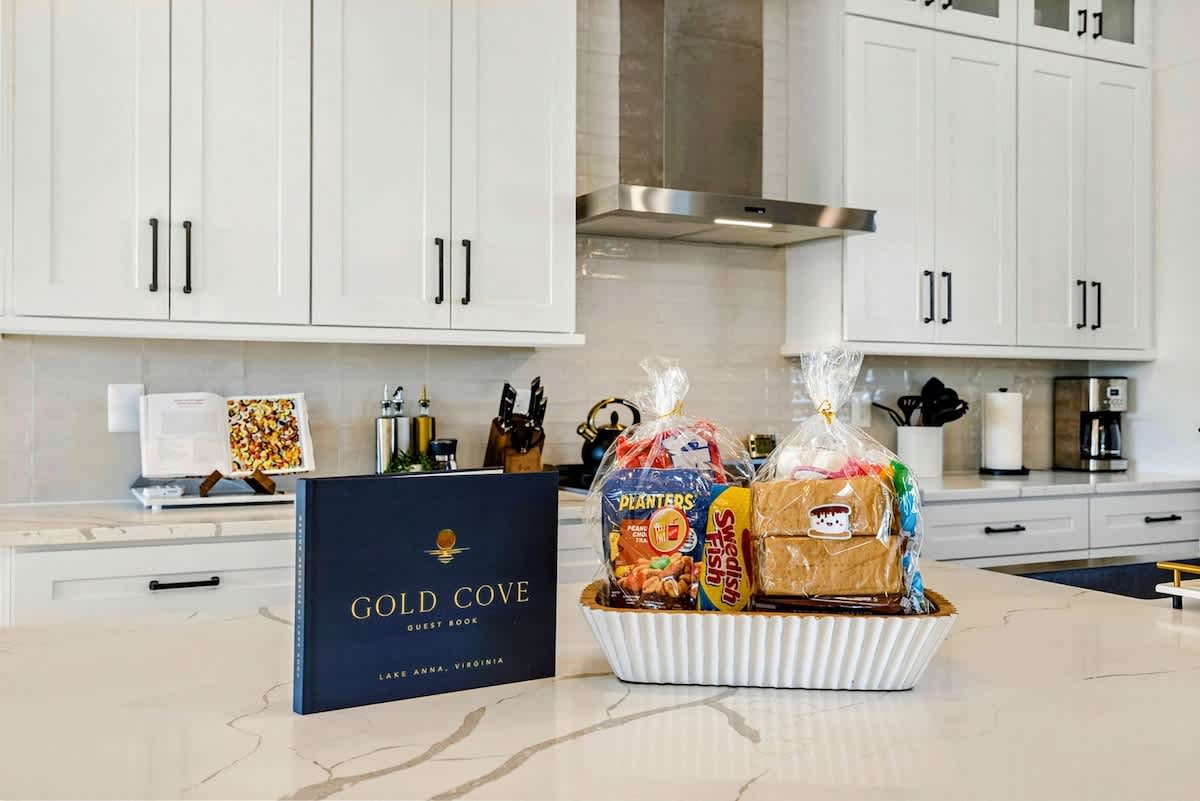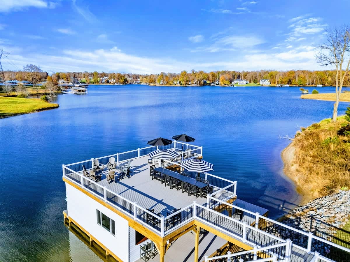 Gold Cove is a brand new lakefront home on Lake Anna's Private Side, offering breathtaking views and a serene setting. Enjoy a peaceful waterfront lot with a quiet cove, warm freshwater, private beach, 2-story private boat dock and boat house, and complimentary kayaks, paddleboards, canoe, and water toys. Relax in the Plunge Pool / Oversized Hot Tub, unwind on the spacious furnished deck, grill BBQ on the deck or patio, or gather by the fire pit that overlooks Lake Anna, as the sun sets.