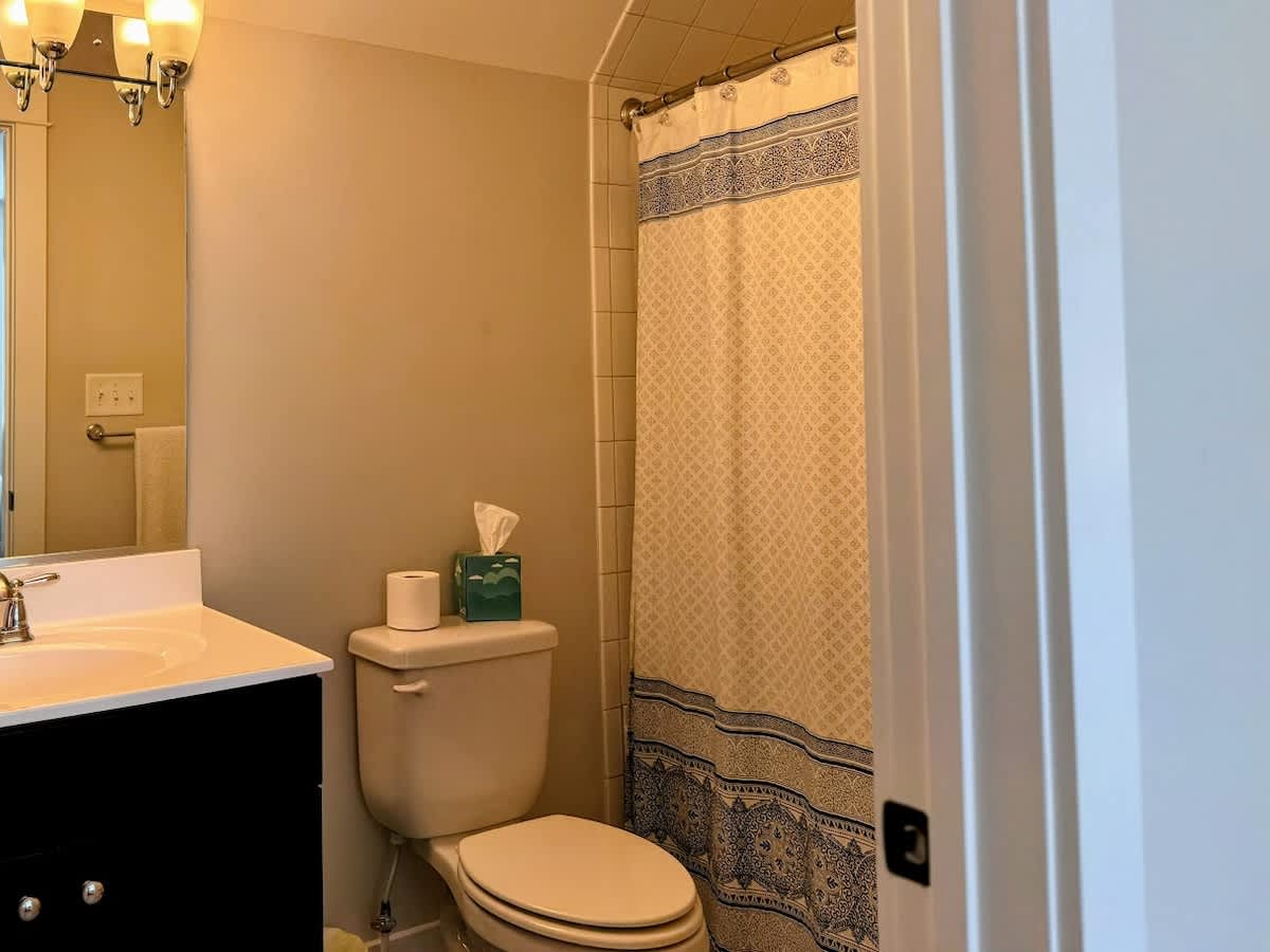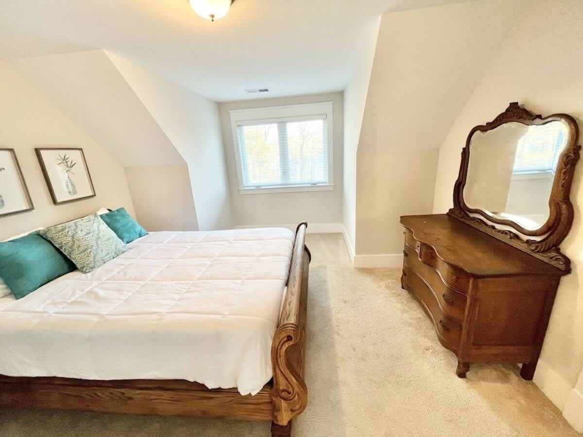 -Main Level Suite with walk-out to private deck, attached bathroom with marble, double vanity.