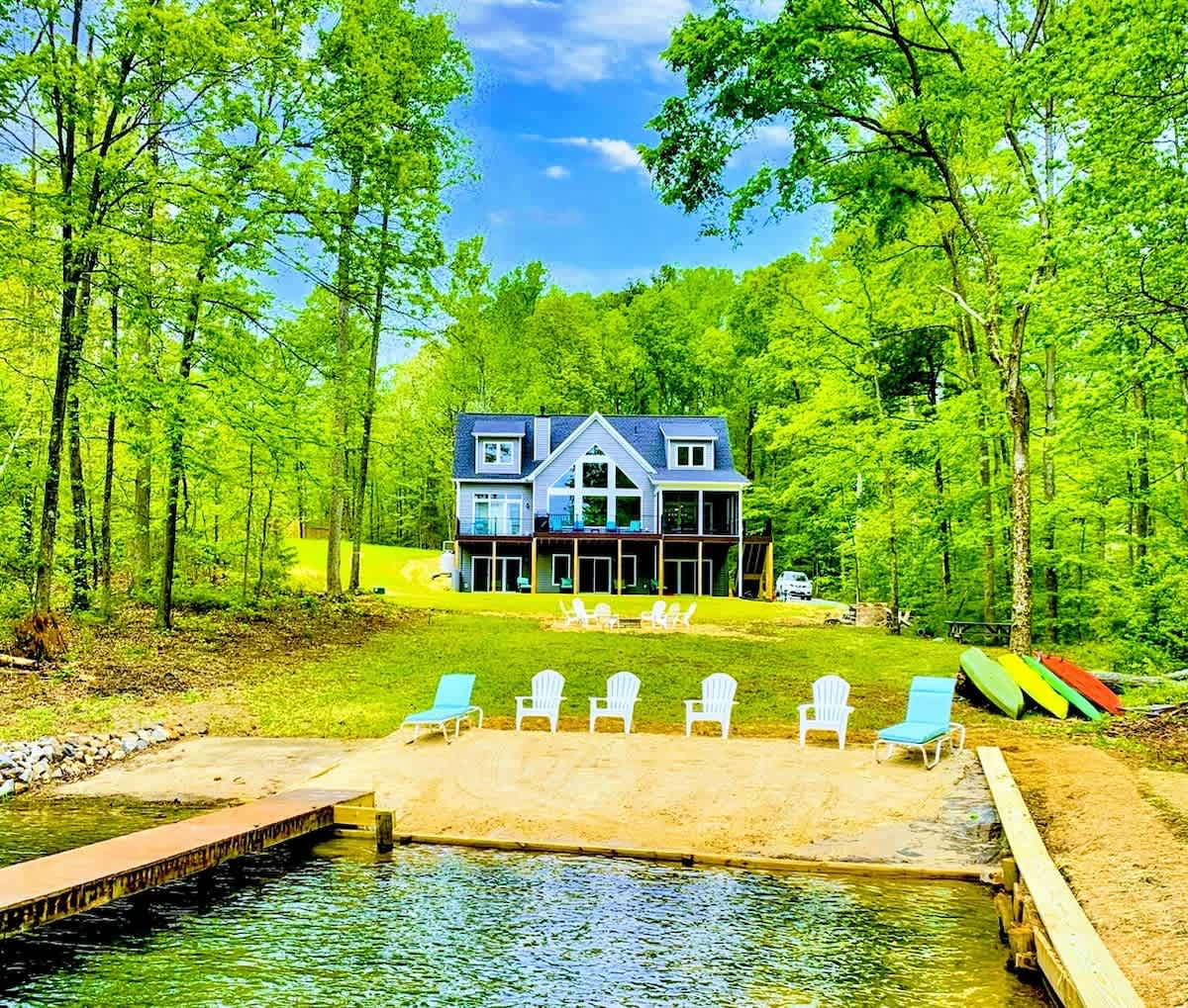 Located on the private side of Lake Anna, our new home feels like a private resort with your own beach, quiet no wake cove where kids can play. Enjoy kayaks, paddle boards and a fire pit!