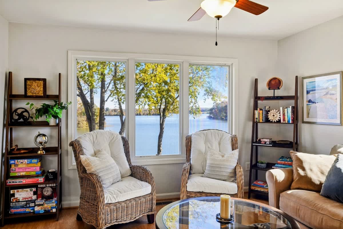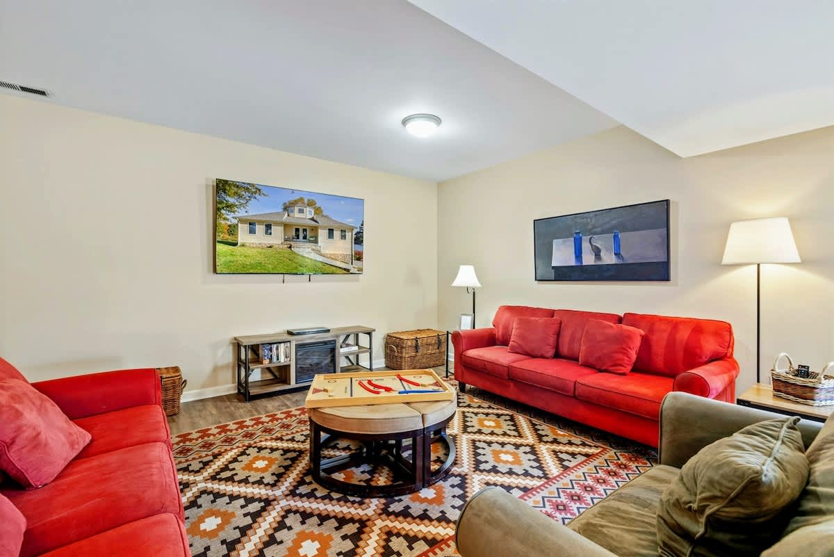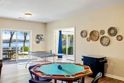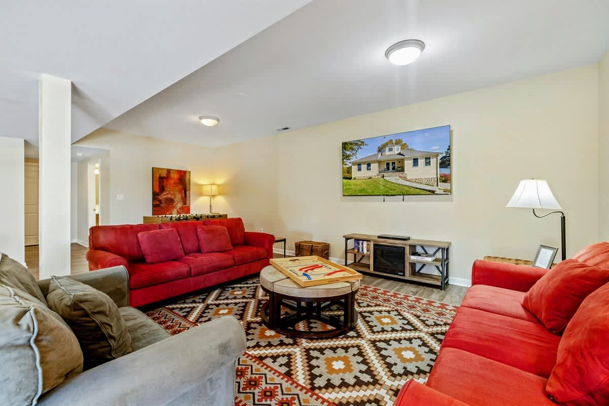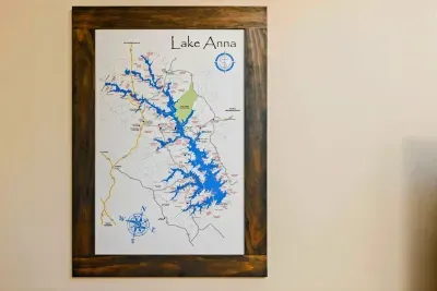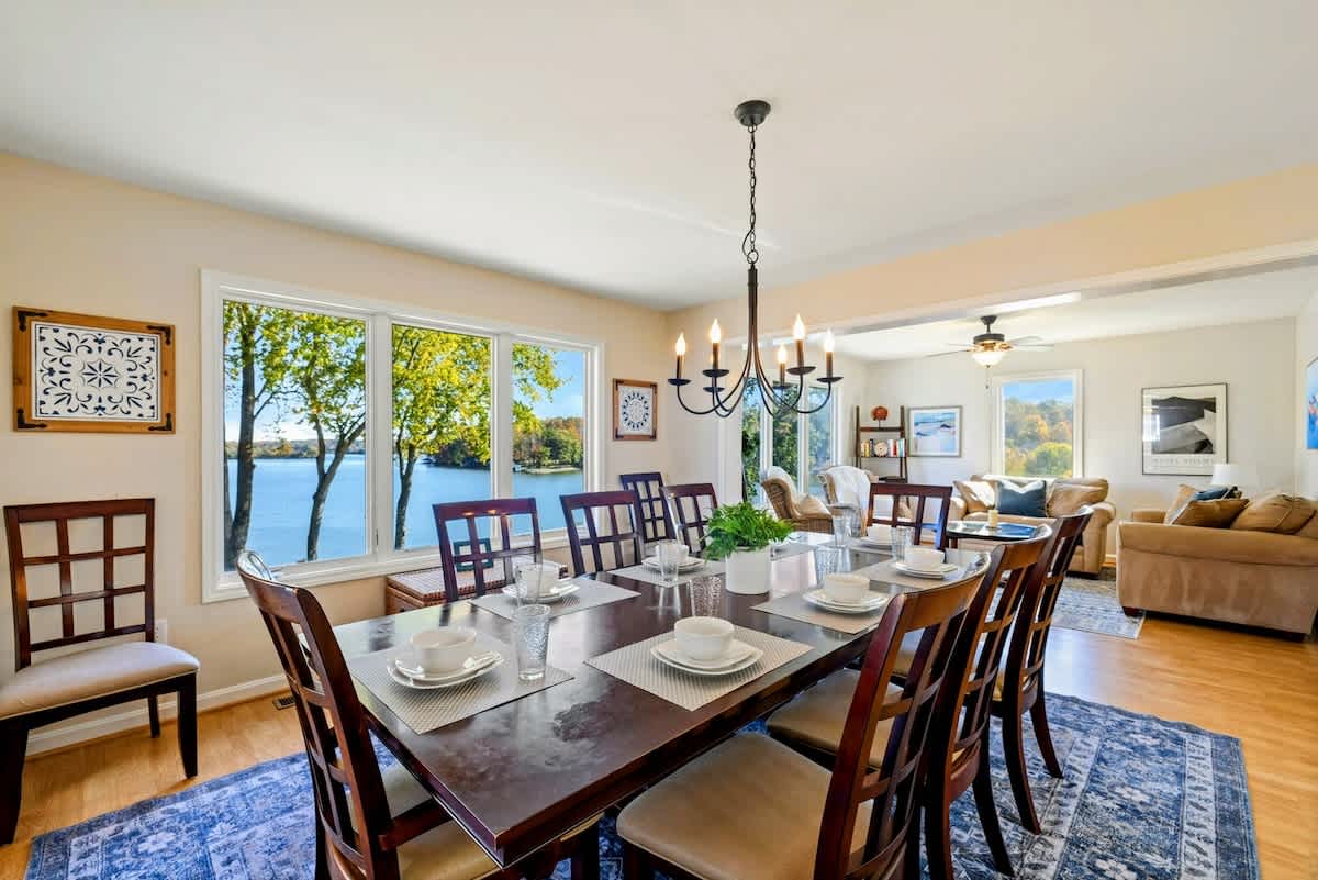 Home Base is a beautiful waterfront home on Lake Anna's public side. Enjoy sunrise views from the open-concept design in a prime lake location. Walk to the nearby Lake Anna Boardwalk for mini golf, beach volleyball, Tim’s Restaurant, Moo-Thru ice cream and more. The home features a fully equipped kitchen, new furniture, comfy beds, an extra refrigerator and spacious dining areas both inside and out. Relax with a ping pong & pool table, foosball, arcade games, air hockey, a poker table, 3 kayaks, a firepit, and Roku TV. Wi-Fi included. Plenty of games and puzzles are also available to enjoy. Conveniently located less than 10 minutes from Food Lion, Dickinson's Store, Century Farm Market and Cutalong Golf Club.