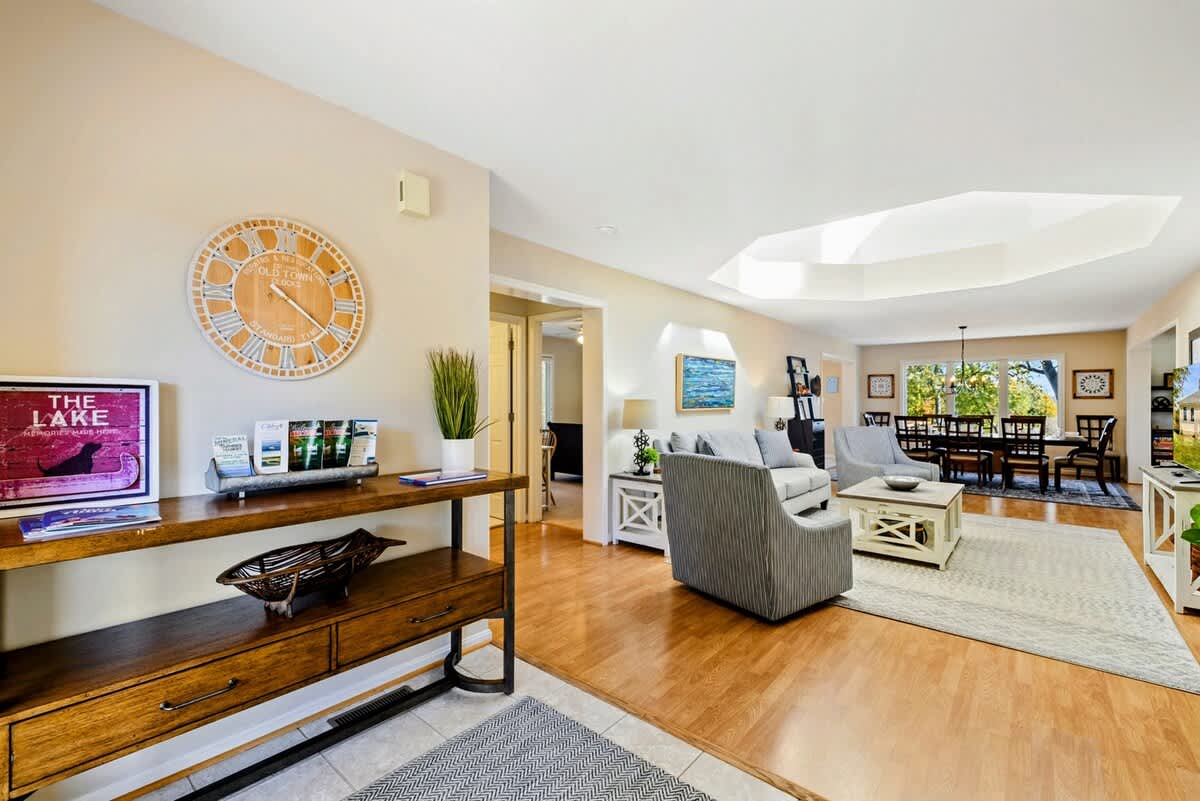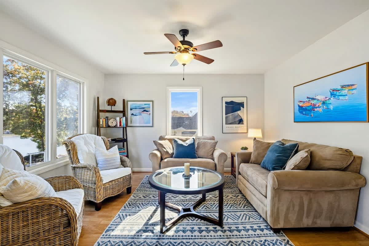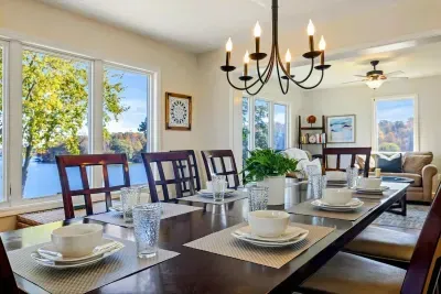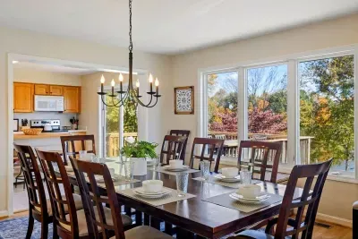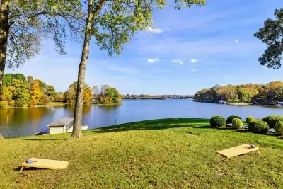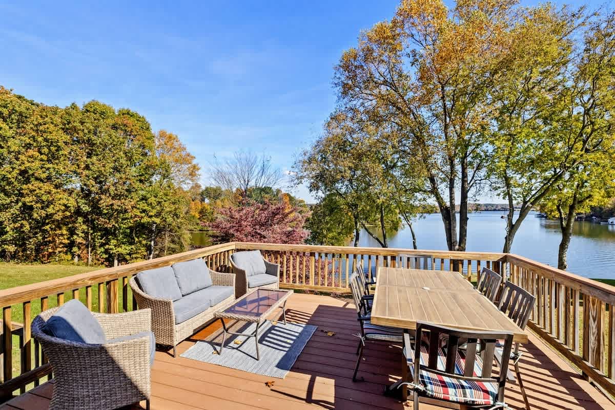 Home Base is a beautiful waterfront home on Lake Anna's public side. Enjoy sunrise views from the open-concept design in a prime lake location. Walk to the nearby Lake Anna Boardwalk for mini golf, beach volleyball, Tim’s Restaurant, Moo-Thru ice cream and more. The home features a fully equipped kitchen, new furniture, comfy beds, an extra refrigerator and spacious dining areas both inside and out. Relax with a ping pong & pool table, foosball, arcade games, air hockey, a poker table, 3 kayaks, a firepit, and Roku TV. Wi-Fi included. Plenty of games and puzzles are also available to enjoy. Conveniently located less than 10 minutes from Food Lion, Dickinson's Store, Century Farm Market and Cutalong Golf Club.