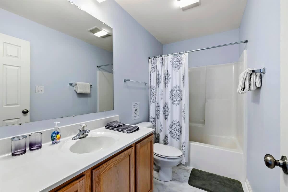 Bathroom 3 (Main Level) – Full bathroom with combination tub/shower and toilet