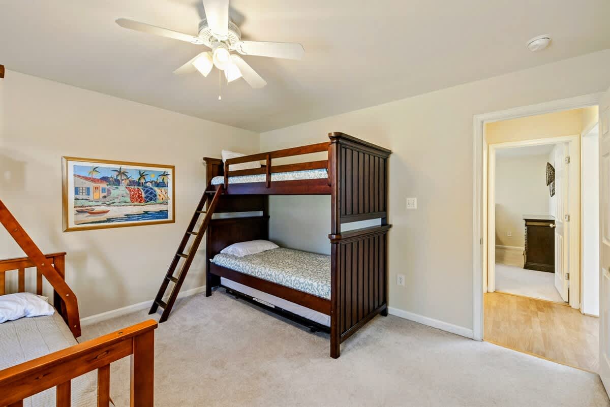 Bunk Bedroom with Shared Hall Bath (Main Level) – 1 Double Bed, 3 Twin Beds
