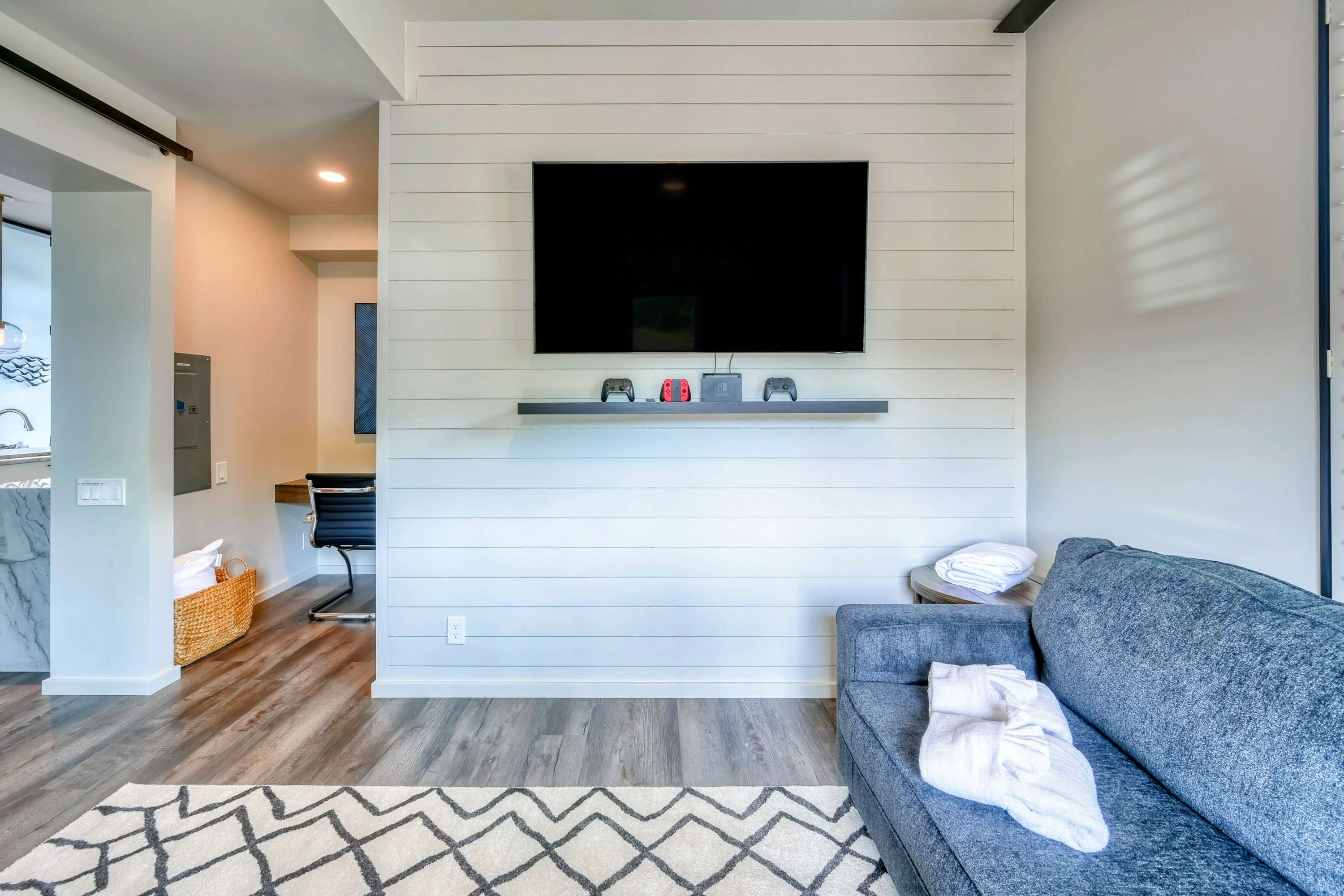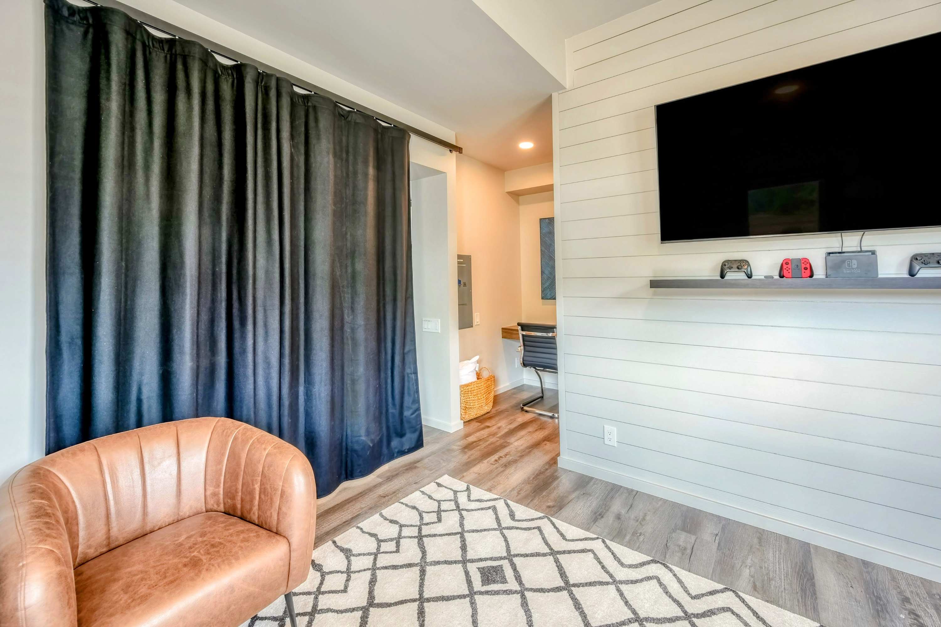 Upstairs, a lofted living area with plush seating, a large 4K smart TV, and a kitchenette offers more space to relax. Each of the 7 bedrooms is a haven of comfort, featuring premium linens, stylish decor, private 4K smart TVs, and the comfort of central air-conditioning. The home is also equipped with a private washer/dryer, children’s amenities, beach gear, a Ping-Pong table, a Nintendo, 4 workstations, 10 Smart TVs, and high-speed internet, ensuring every need is met.