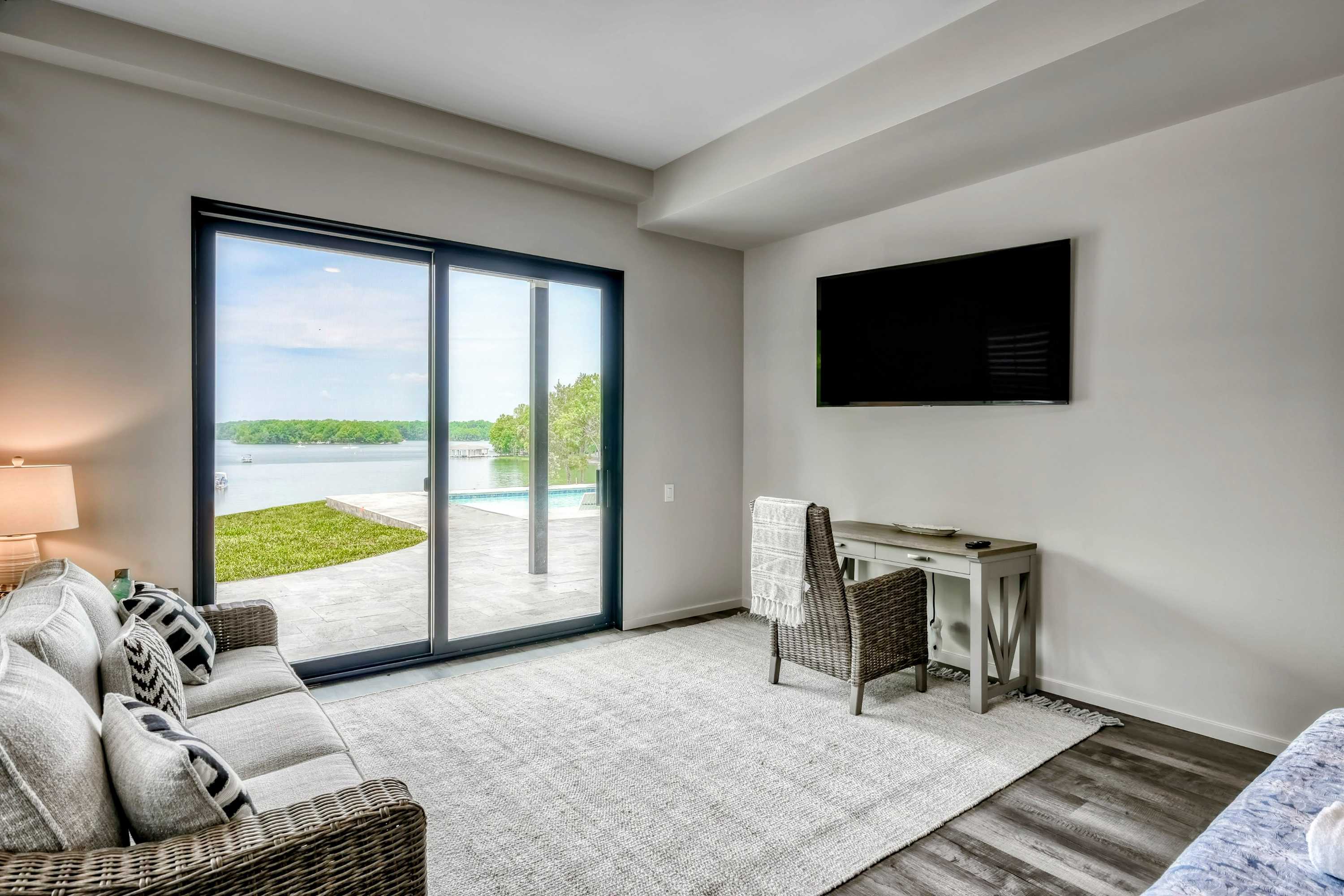 As the day closes, marvel at the sunset's vibrant display from our living room, a testament to the beauty and luxury that Lake Anna offers.