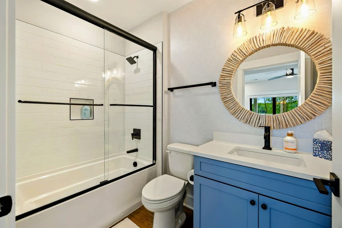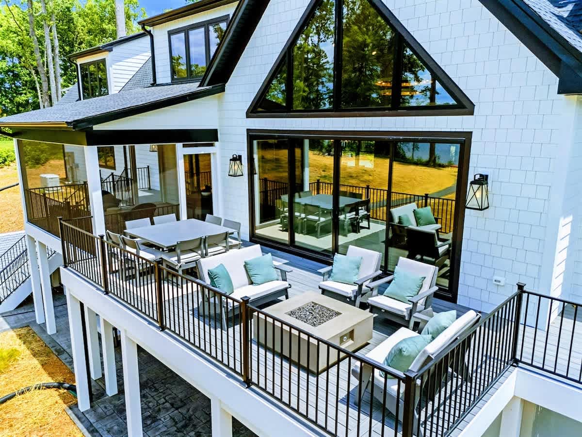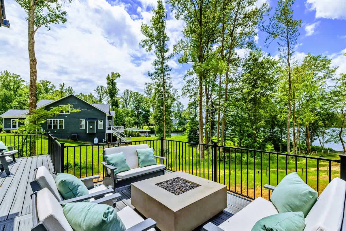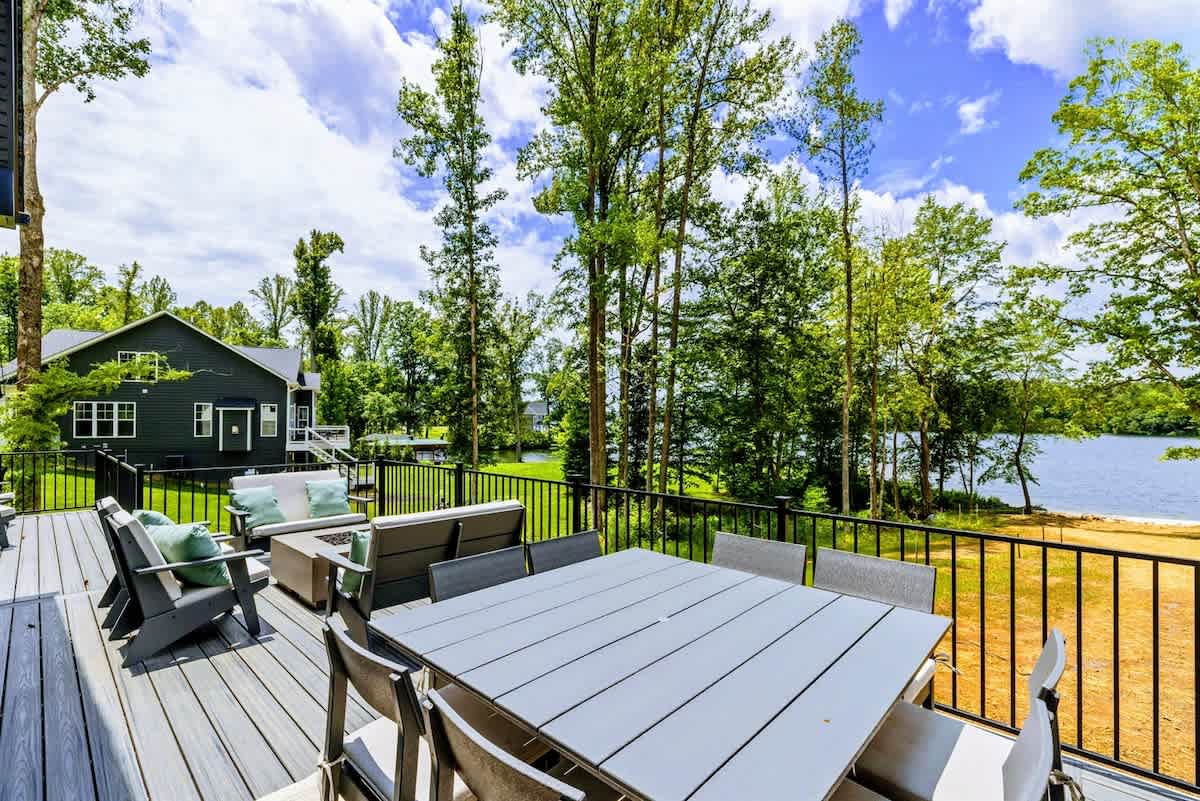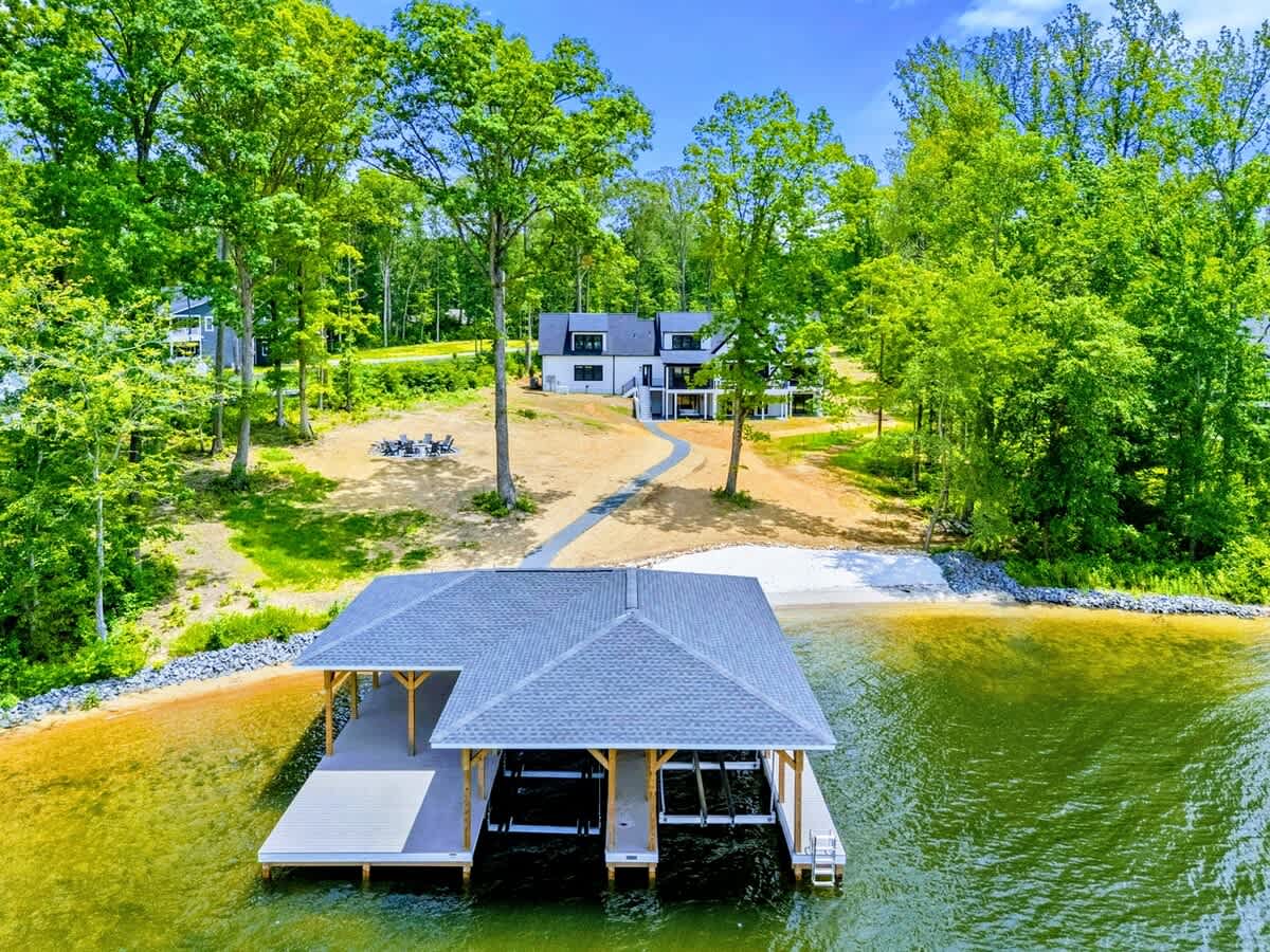 Welcome to Lakefront Escape, a luxury 6BR, 5.5BA lakefront home on the Private Side of Lake Anna. With 200 ft. of shoreline, private boathouse, sandy beach, expansive deck, screened porch, and fire pit under the stars, this custom-built retreat offers upscale comfort for families and groups. Enjoy a chef’s kitchen, game room with arcade + shuffleboard, high-speed Wi-Fi, and multiple indoor/outdoor spaces—perfect for making lasting lake memories year-round.