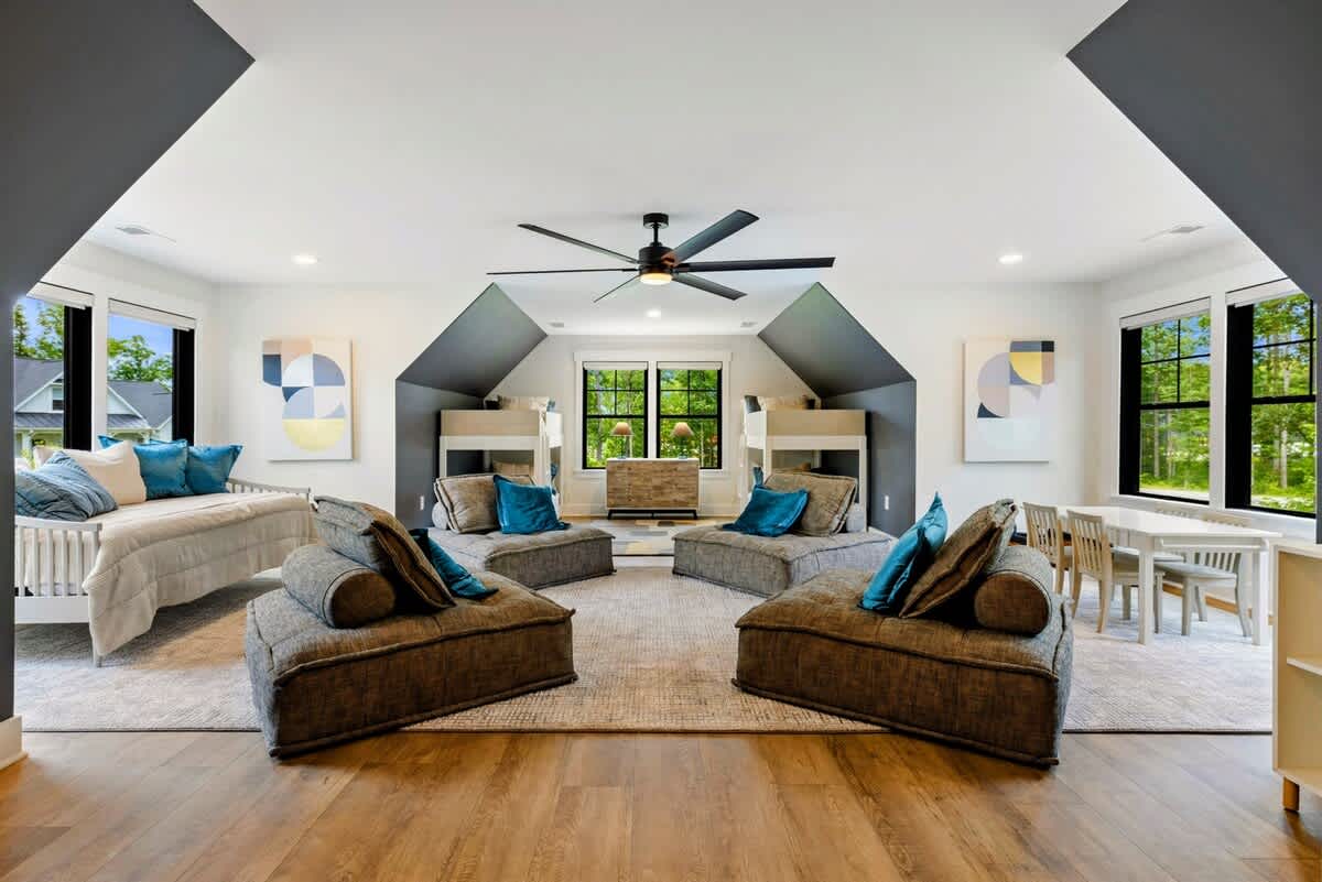 - Bedroom 5 (Upper Level): Queen bed, adjacent full bath