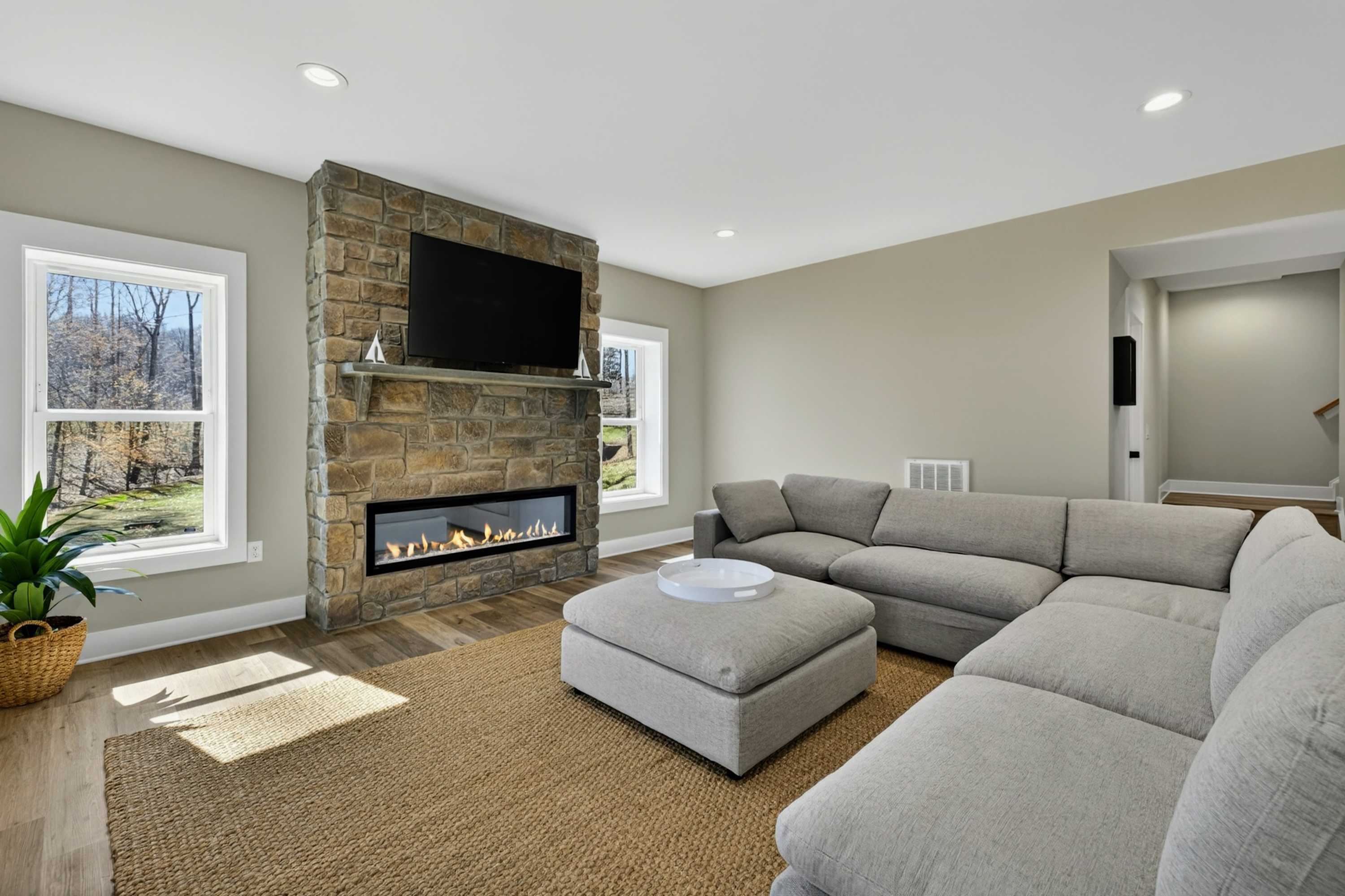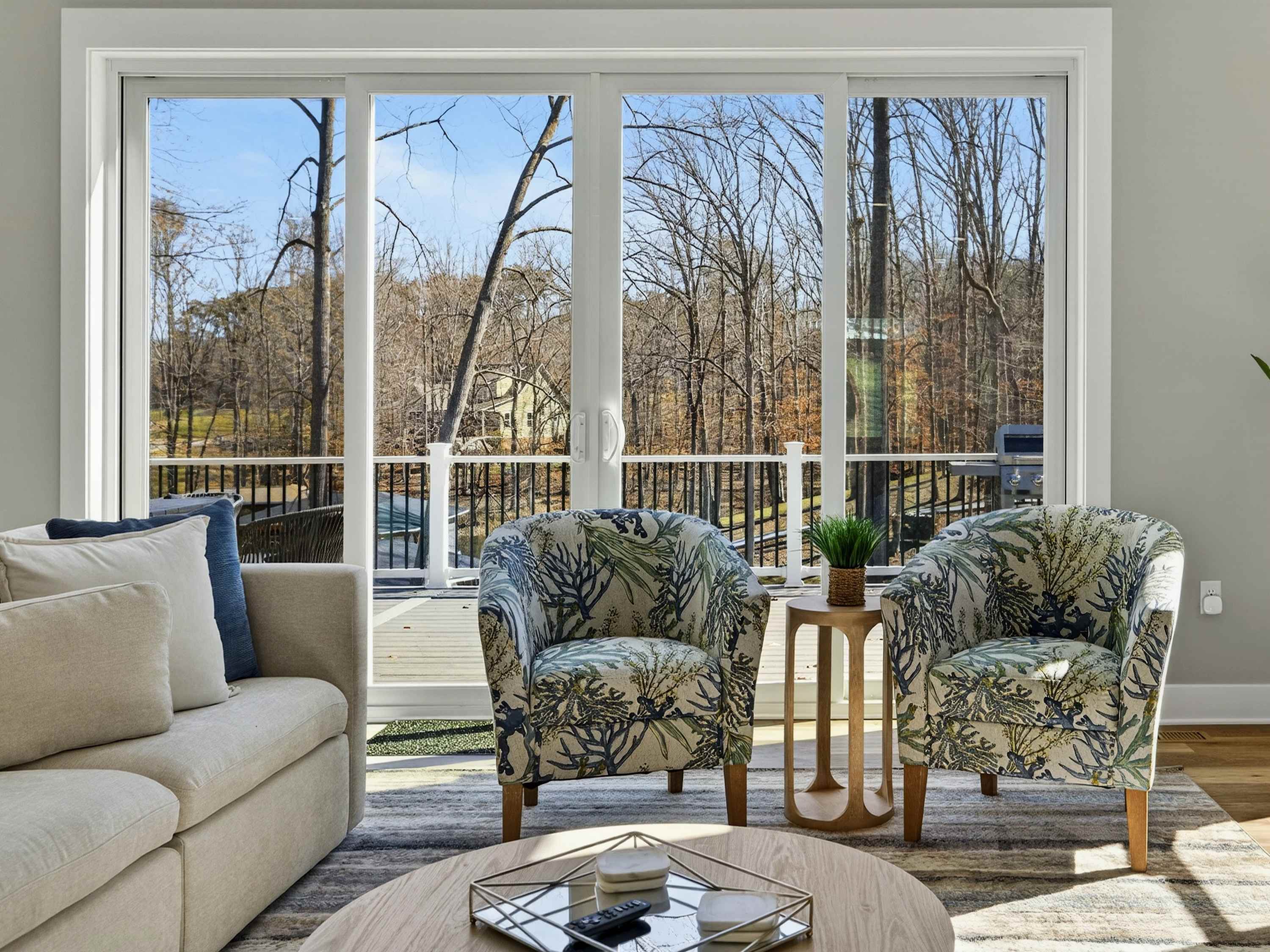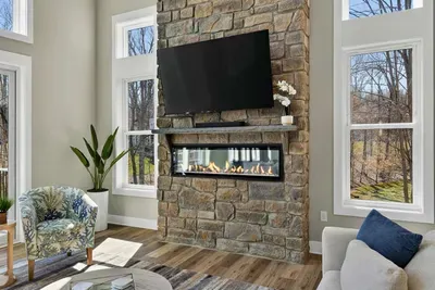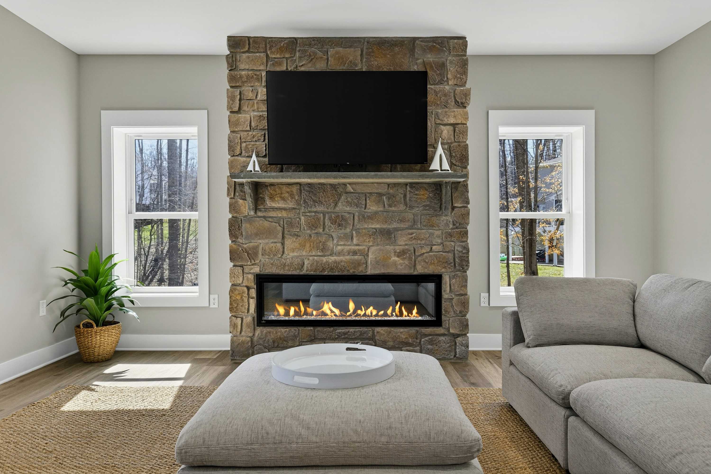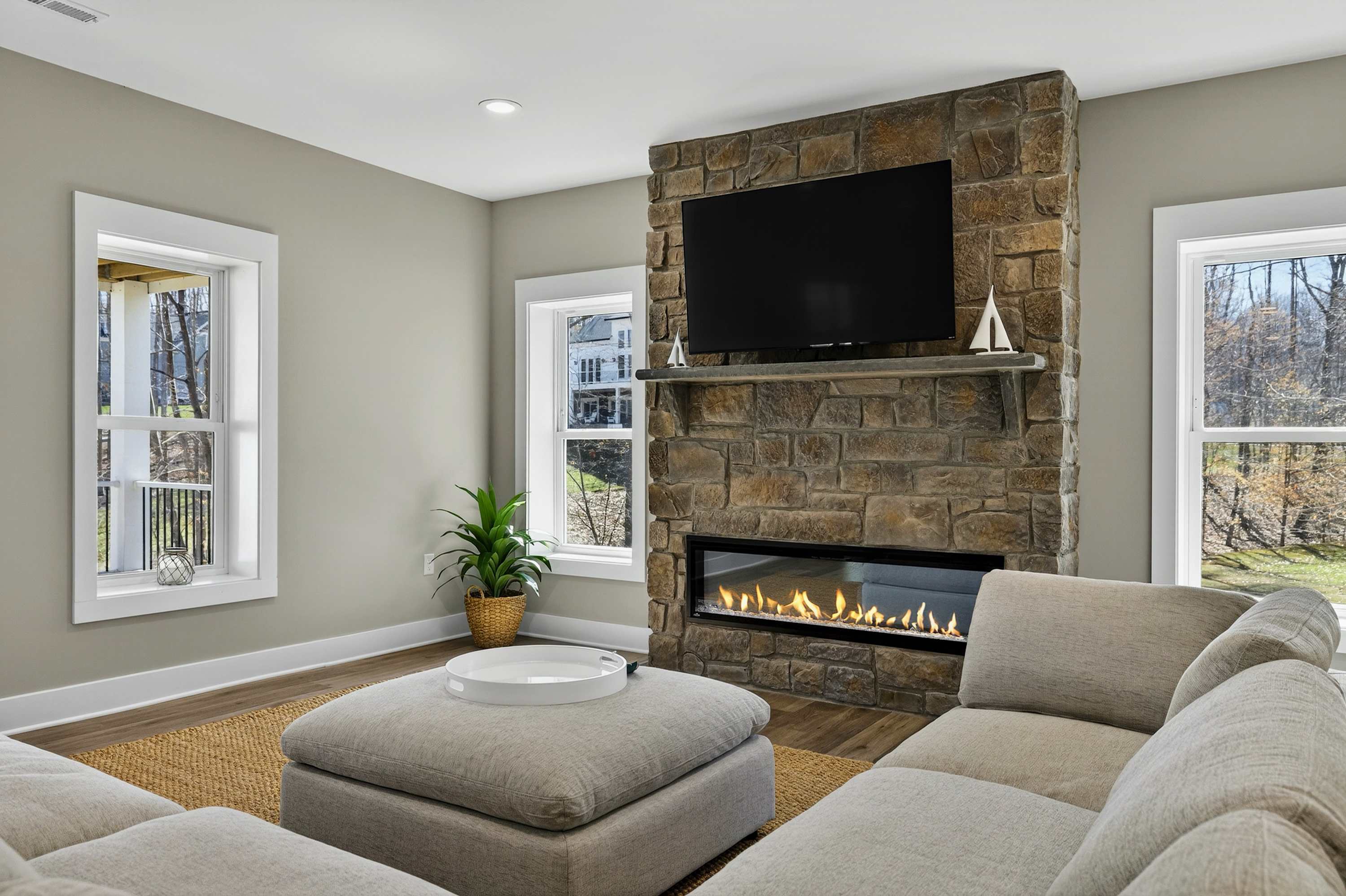 - Great room: floor-to-ceiling lake views, indoor fireplace, Smart TV