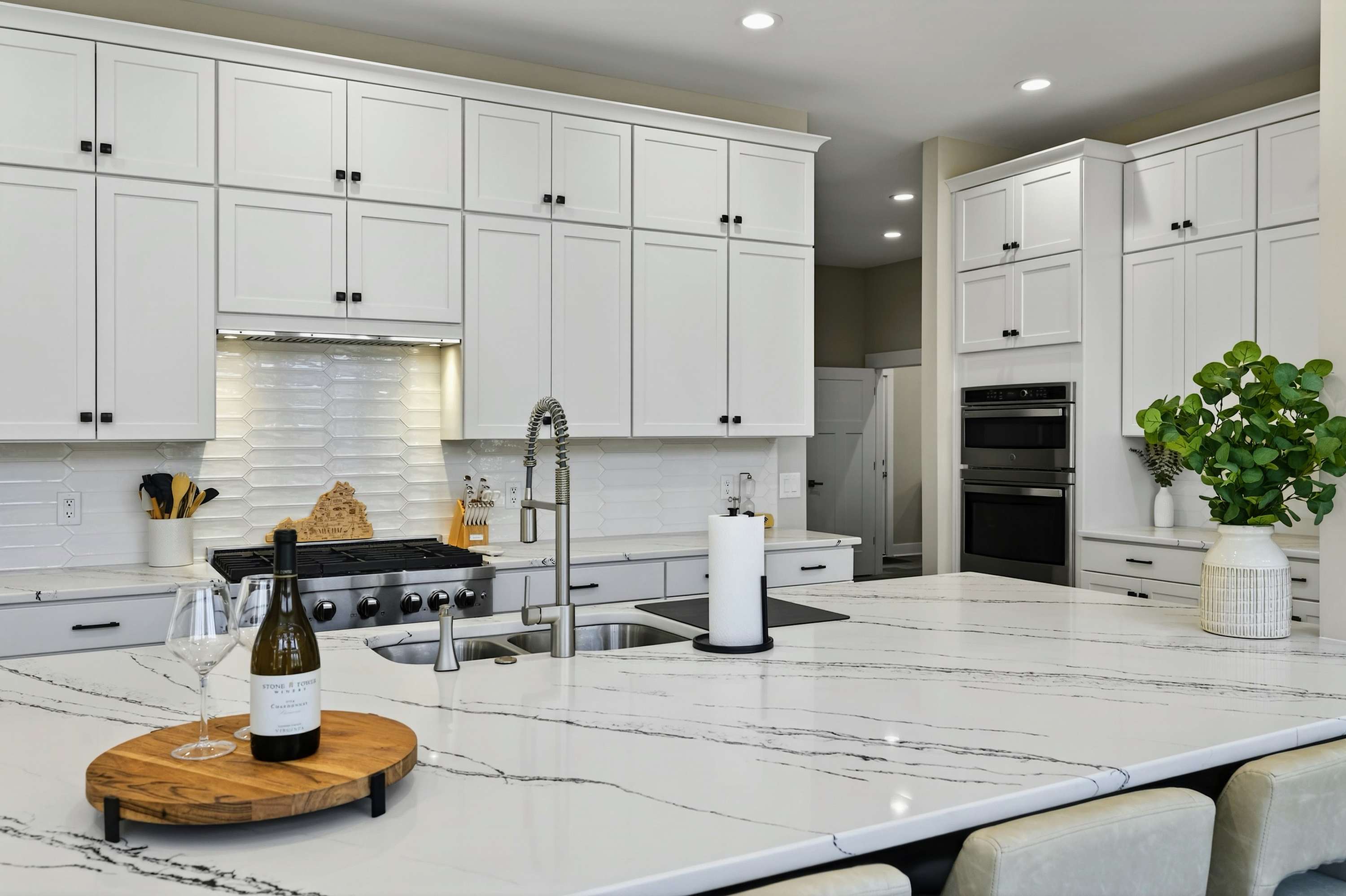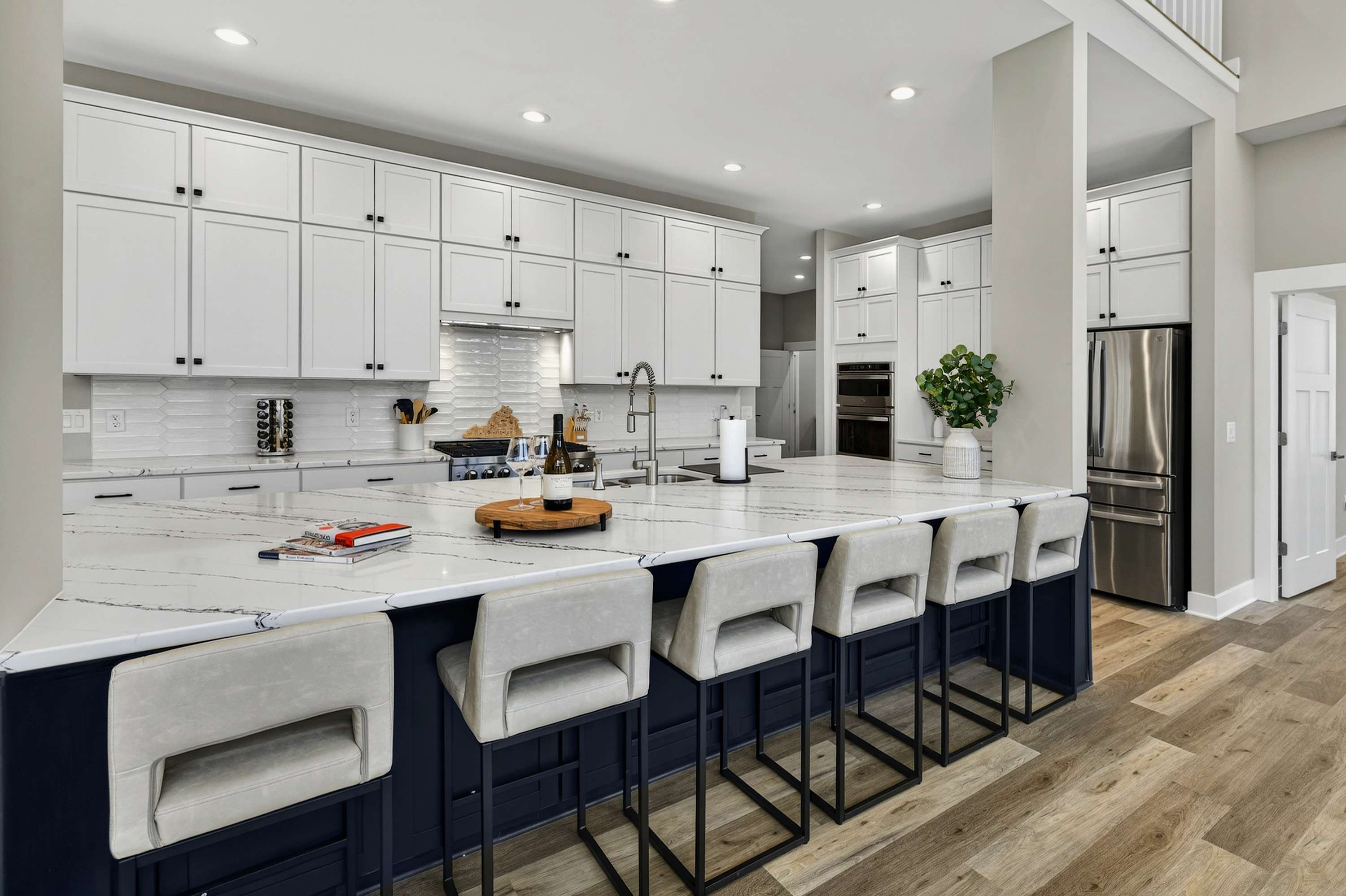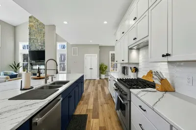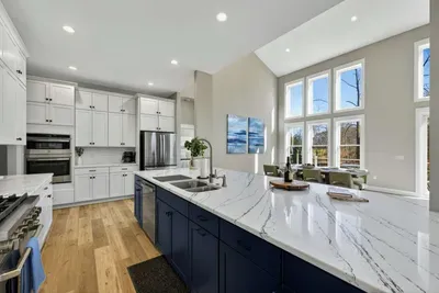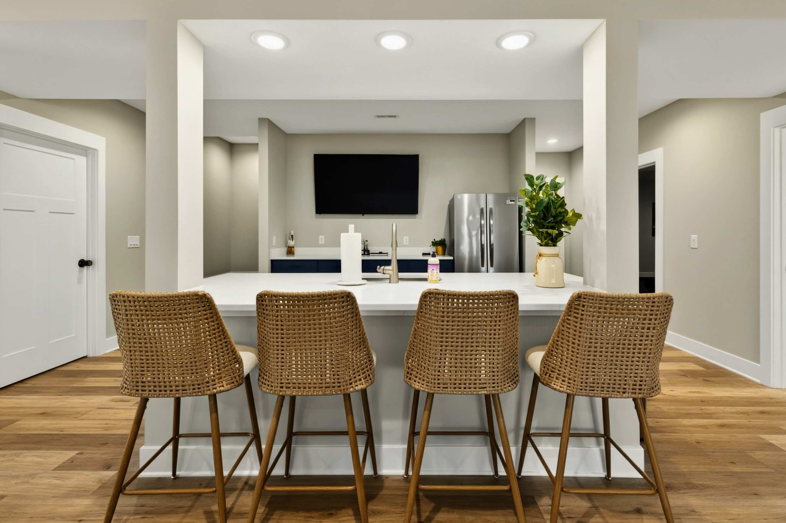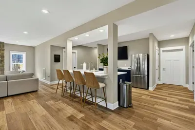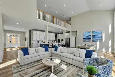 - Chef's kitchen: full appliances, island seating, coffee maker, ice maker