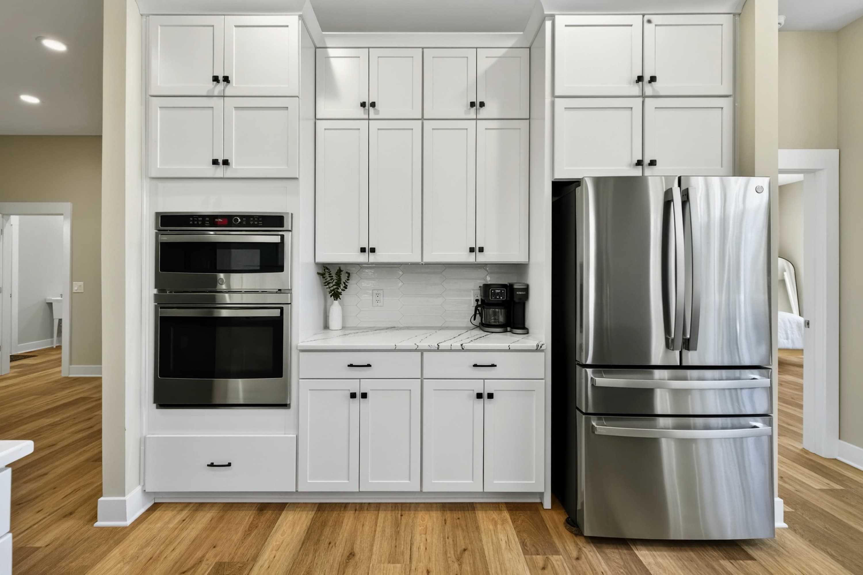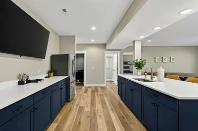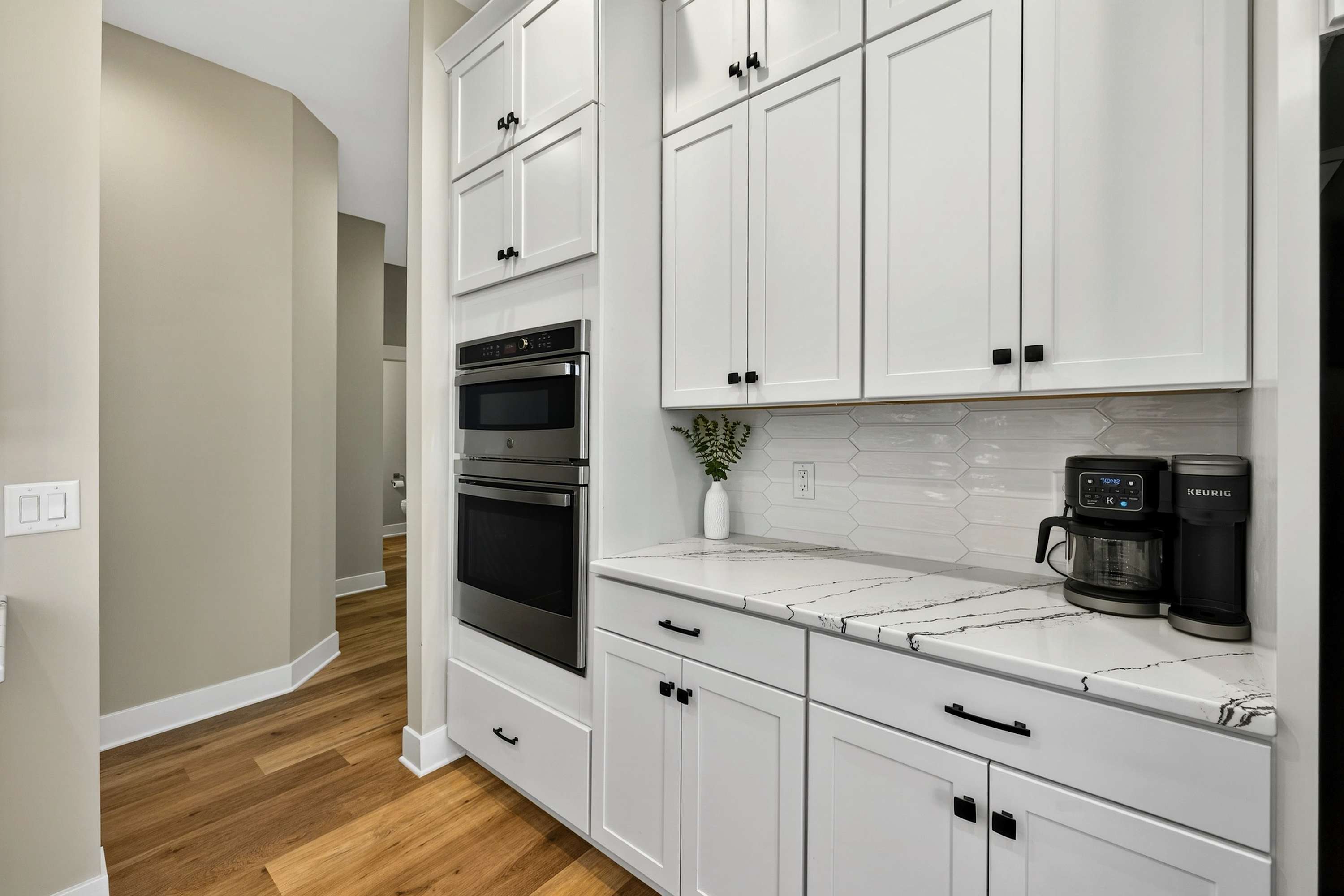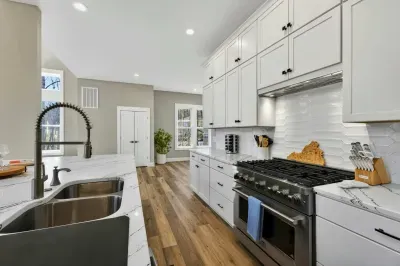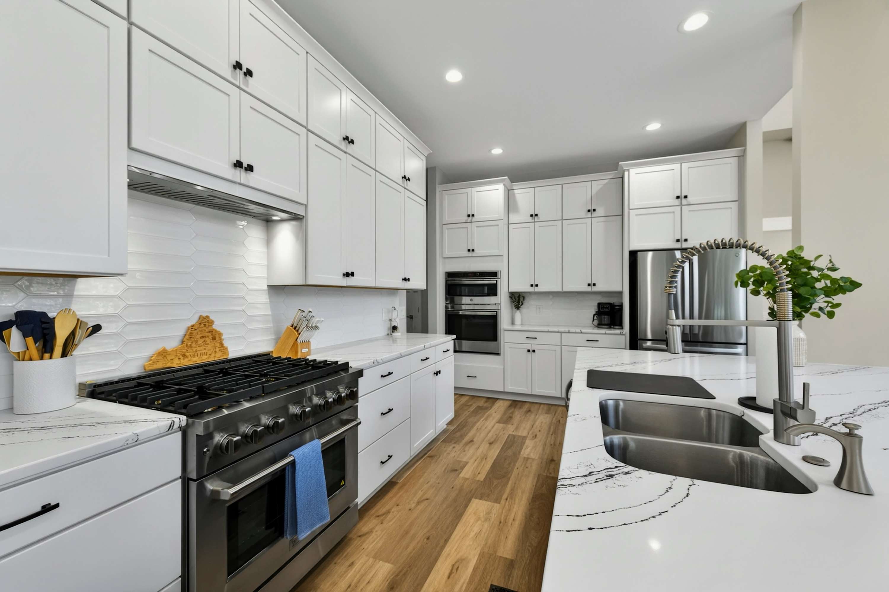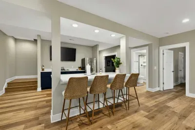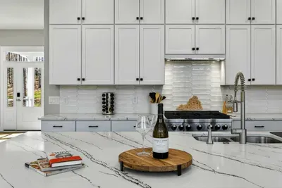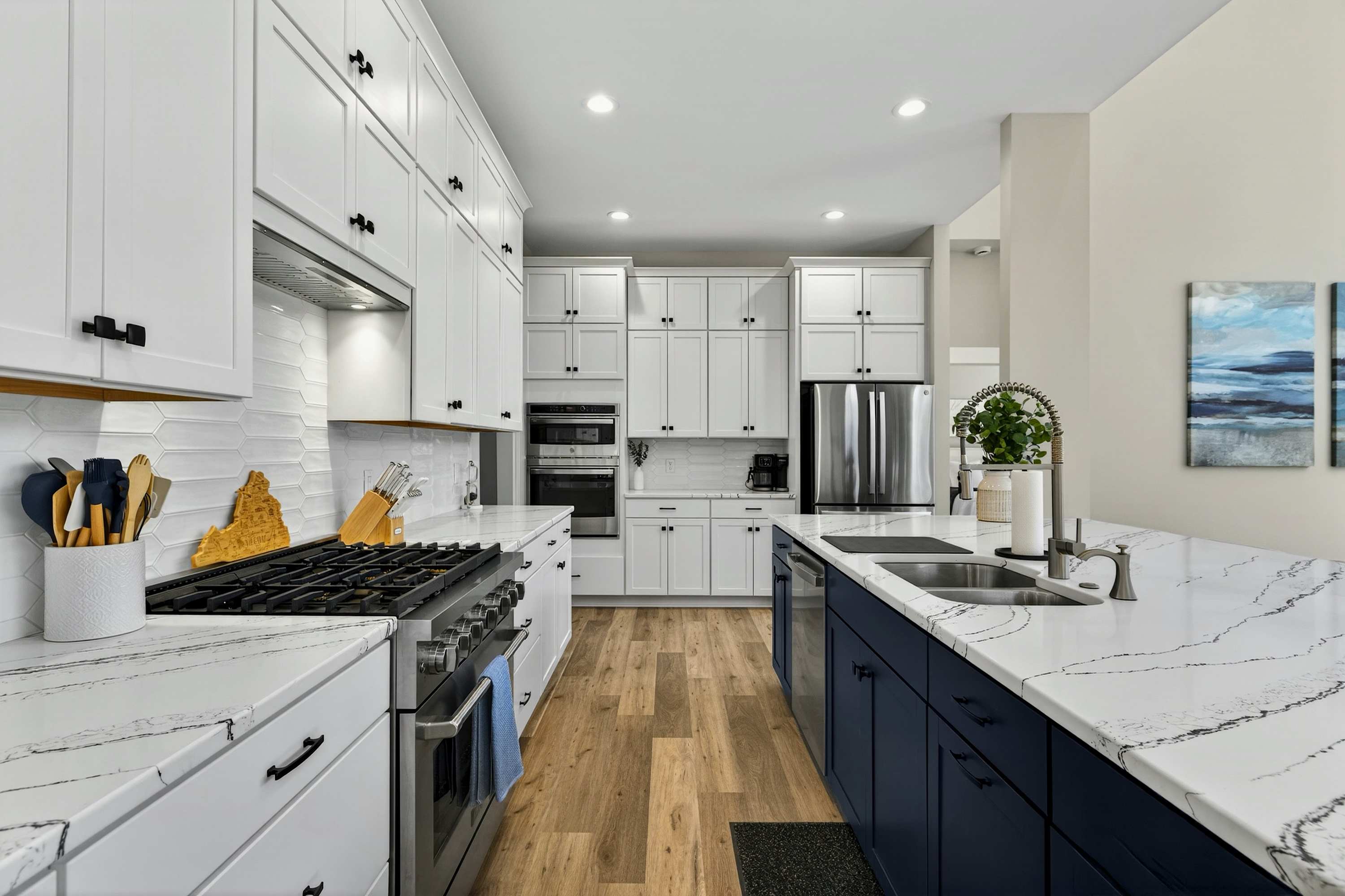 - Chef's kitchen: full appliances, island seating, coffee maker, ice maker