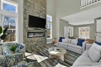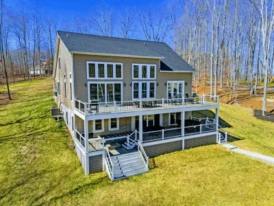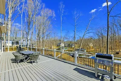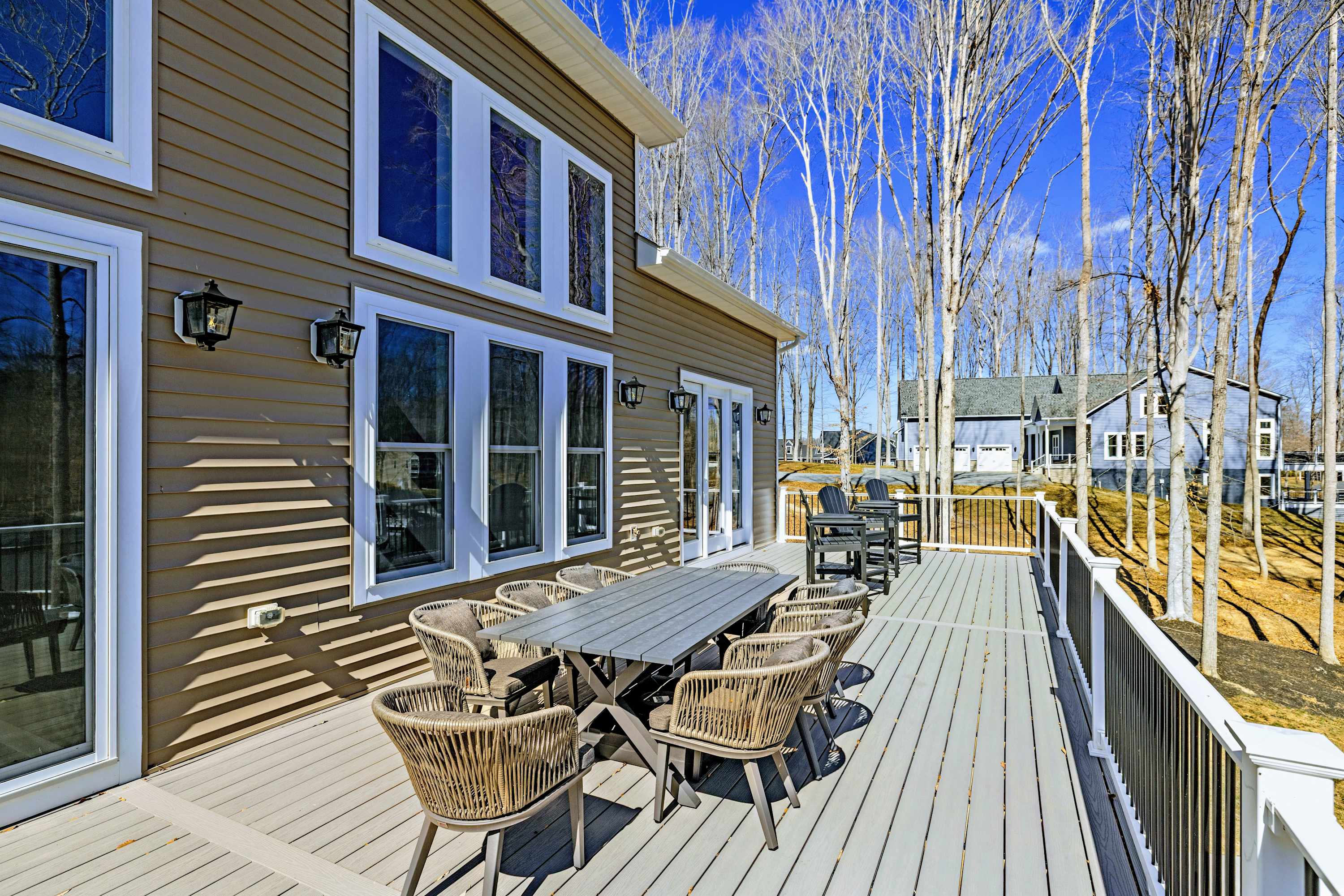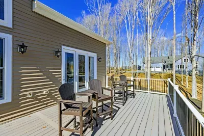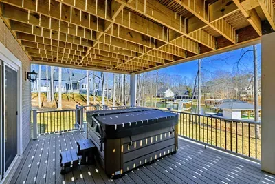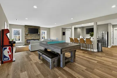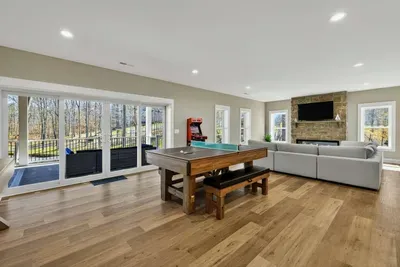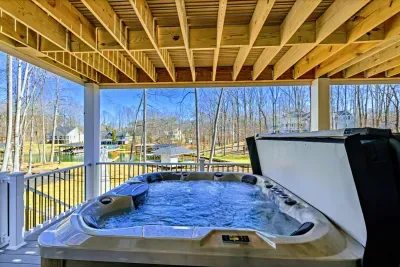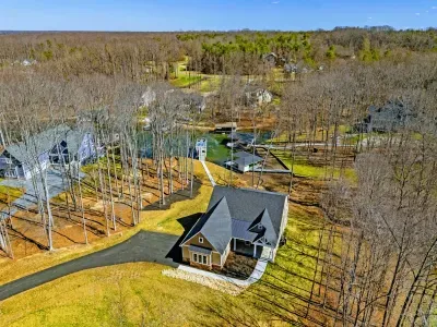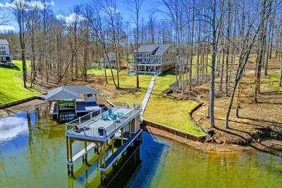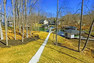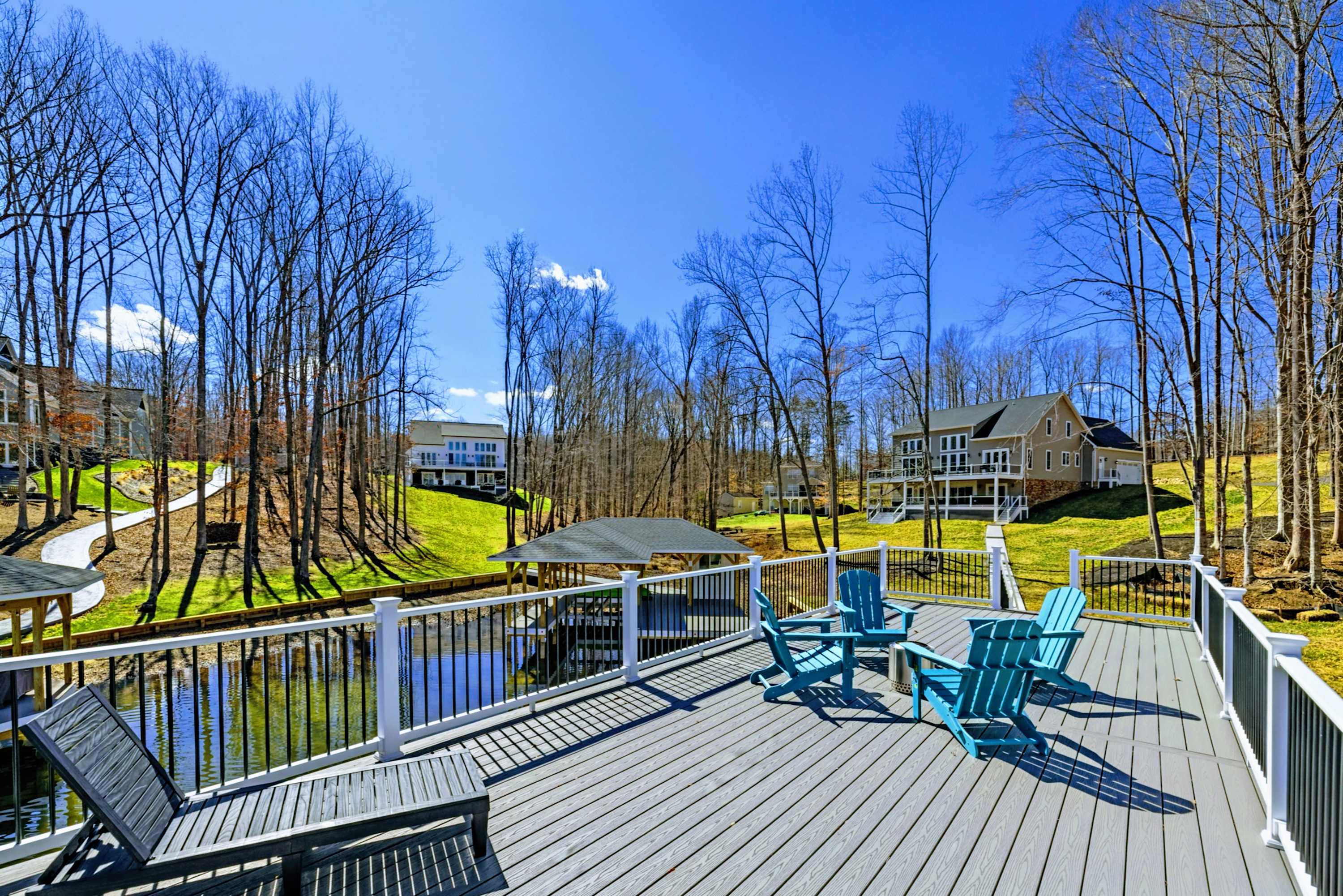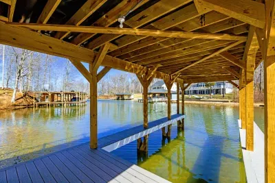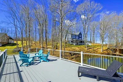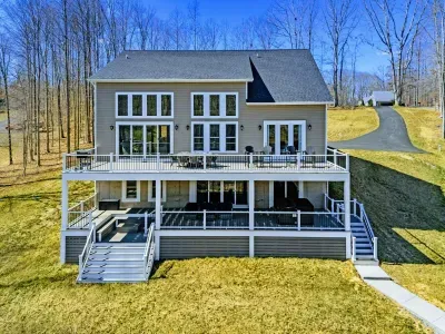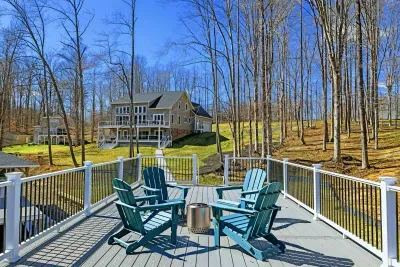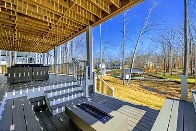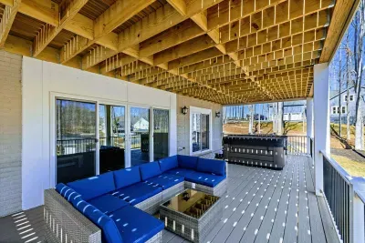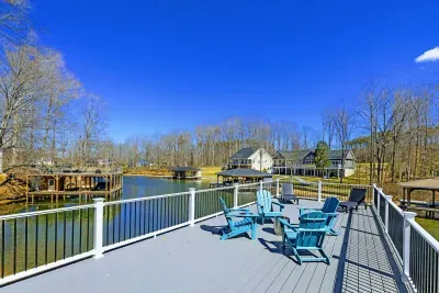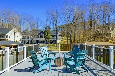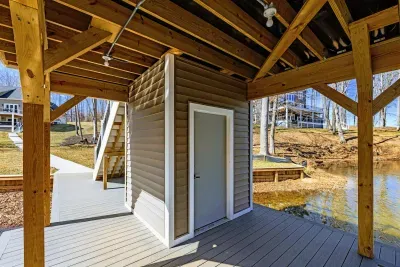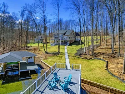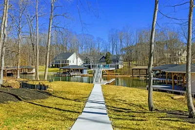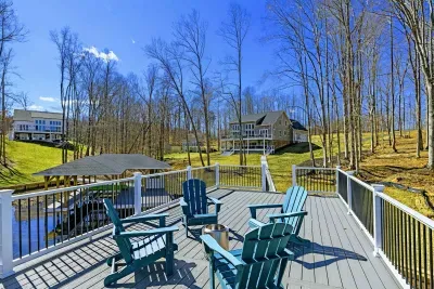 Experience comfort and space at this brand new 4,846-square-foot lakefront estate on the private, warm side of Lake Anna. High Watermark sits on a quiet cove off Deep Creek with a covered boathouse and boat slip, giving guests calm, protected water right at the back door. Five bedrooms, 4.5 baths, and three levels of living designed to give 17 guests room to breathe while keeping everyone together.