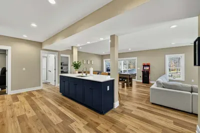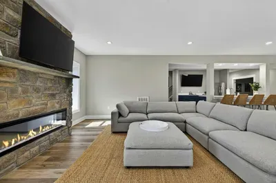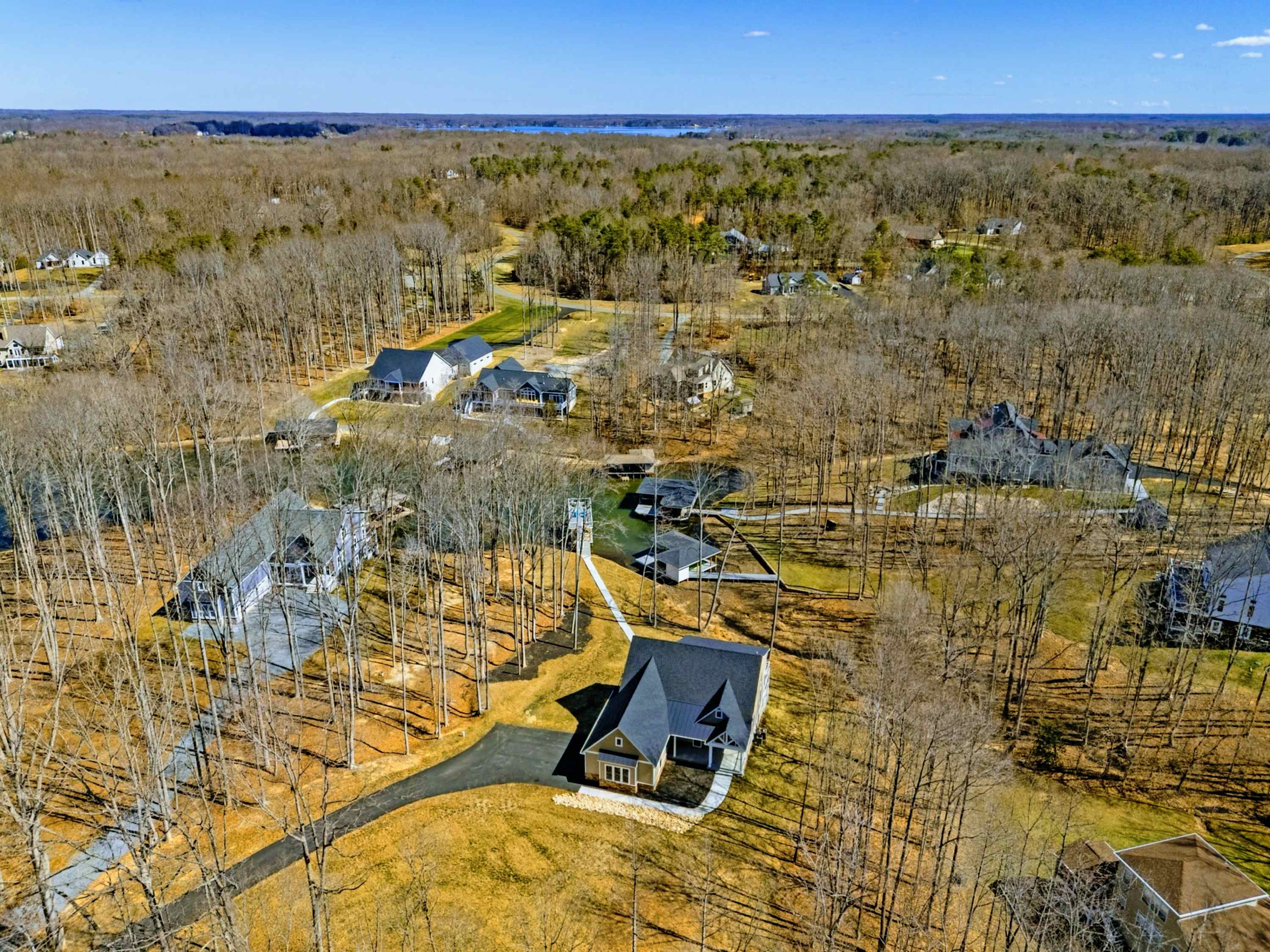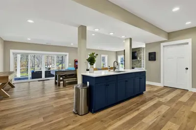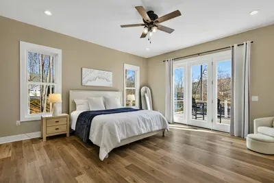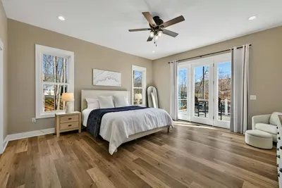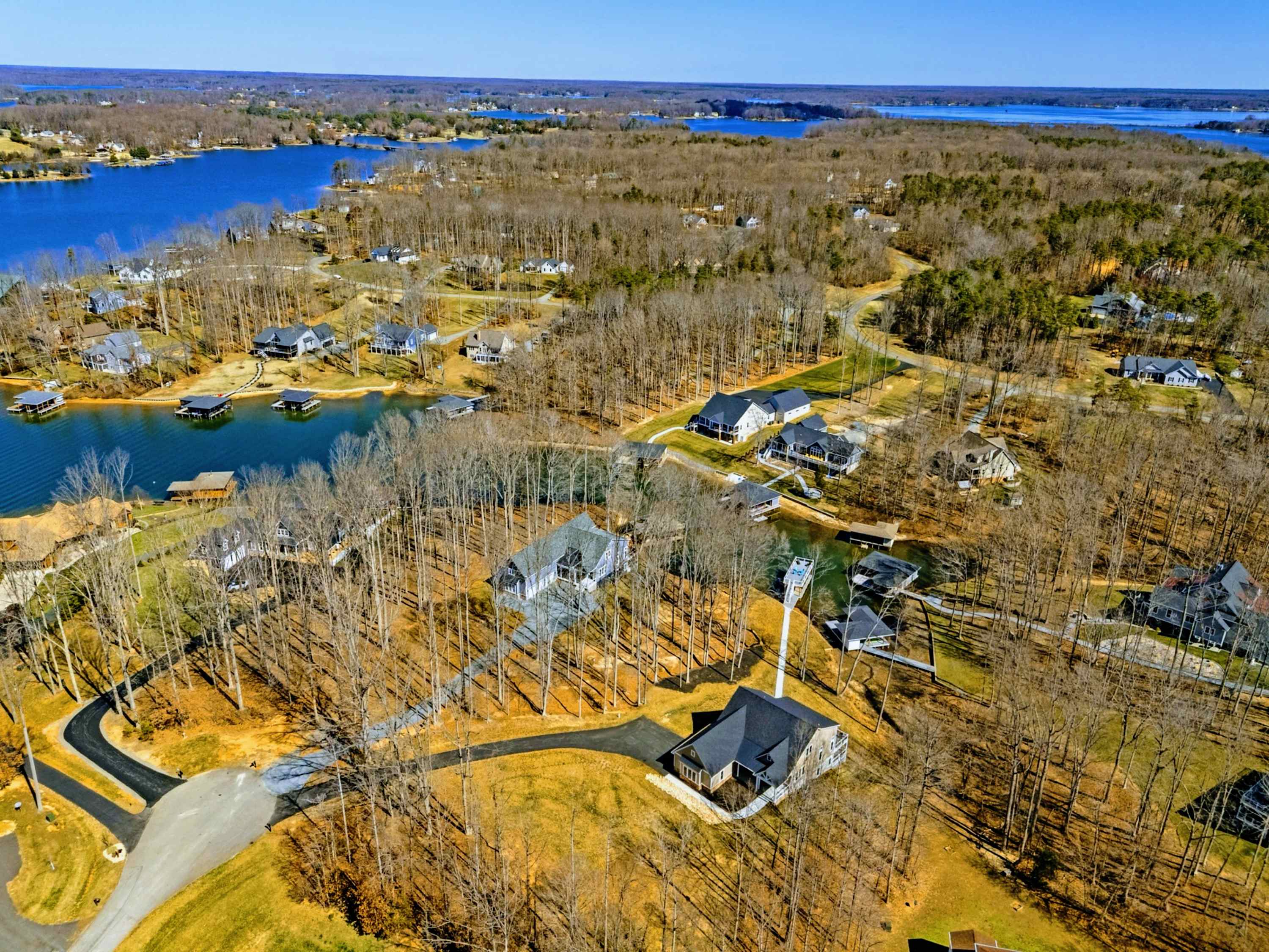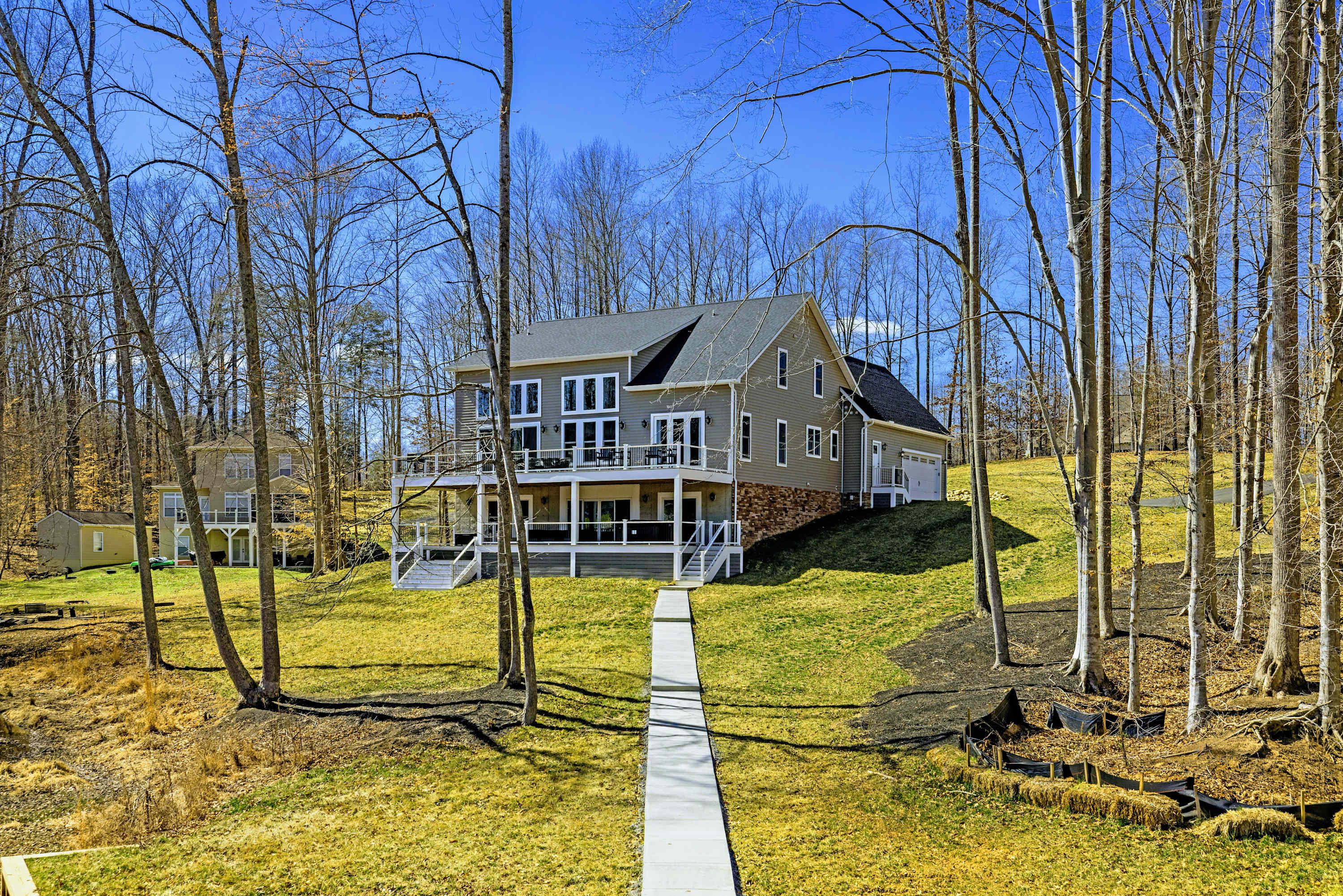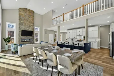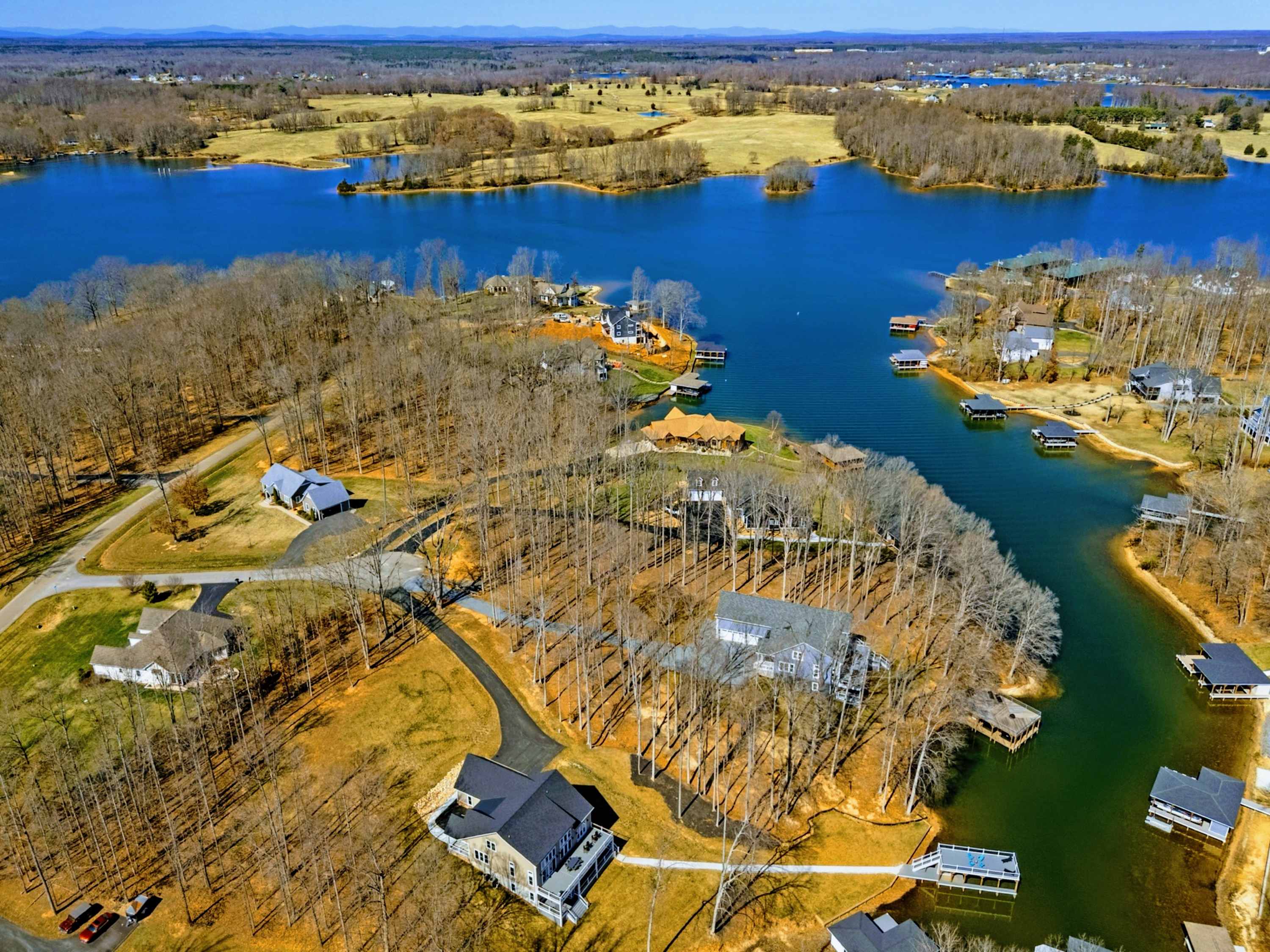 Experience comfort and space at this brand new 4,846-square-foot lakefront estate on the private, warm side of Lake Anna. High Watermark sits on a quiet cove off Deep Creek with a covered boathouse and boat slip, giving guests calm, protected water right at the back door. Five bedrooms, 4.5 baths, and three levels of living designed to give 17 guests room to breathe while keeping everyone together.