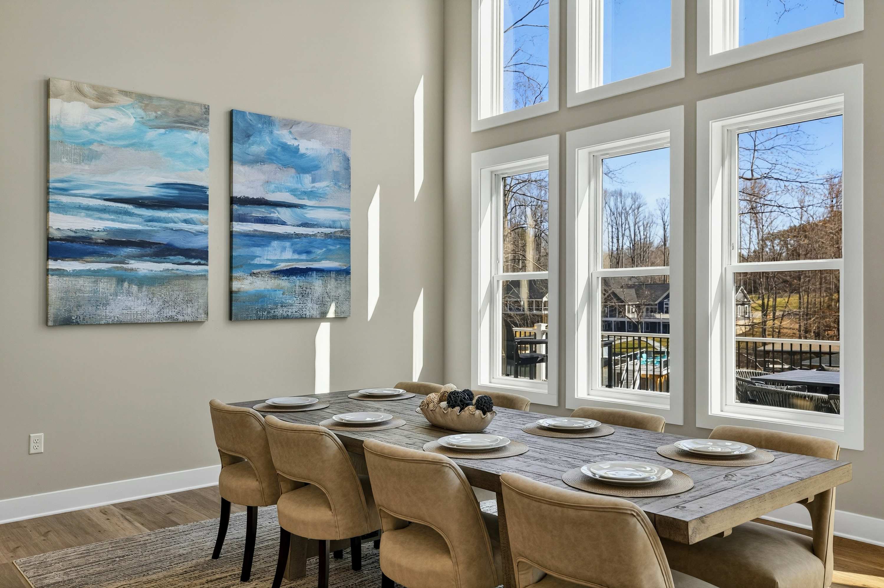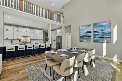 - Dining area with seating for the full group