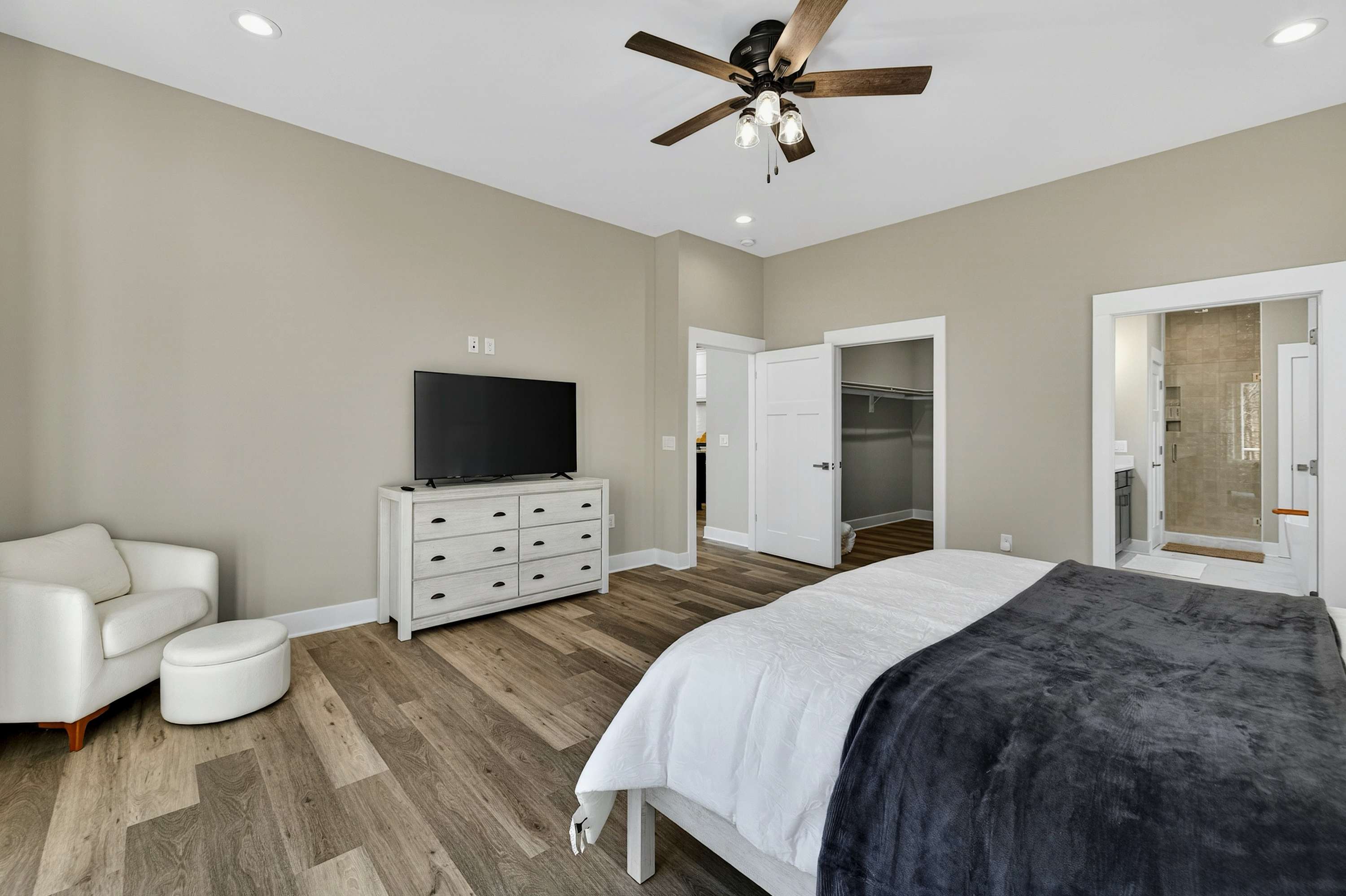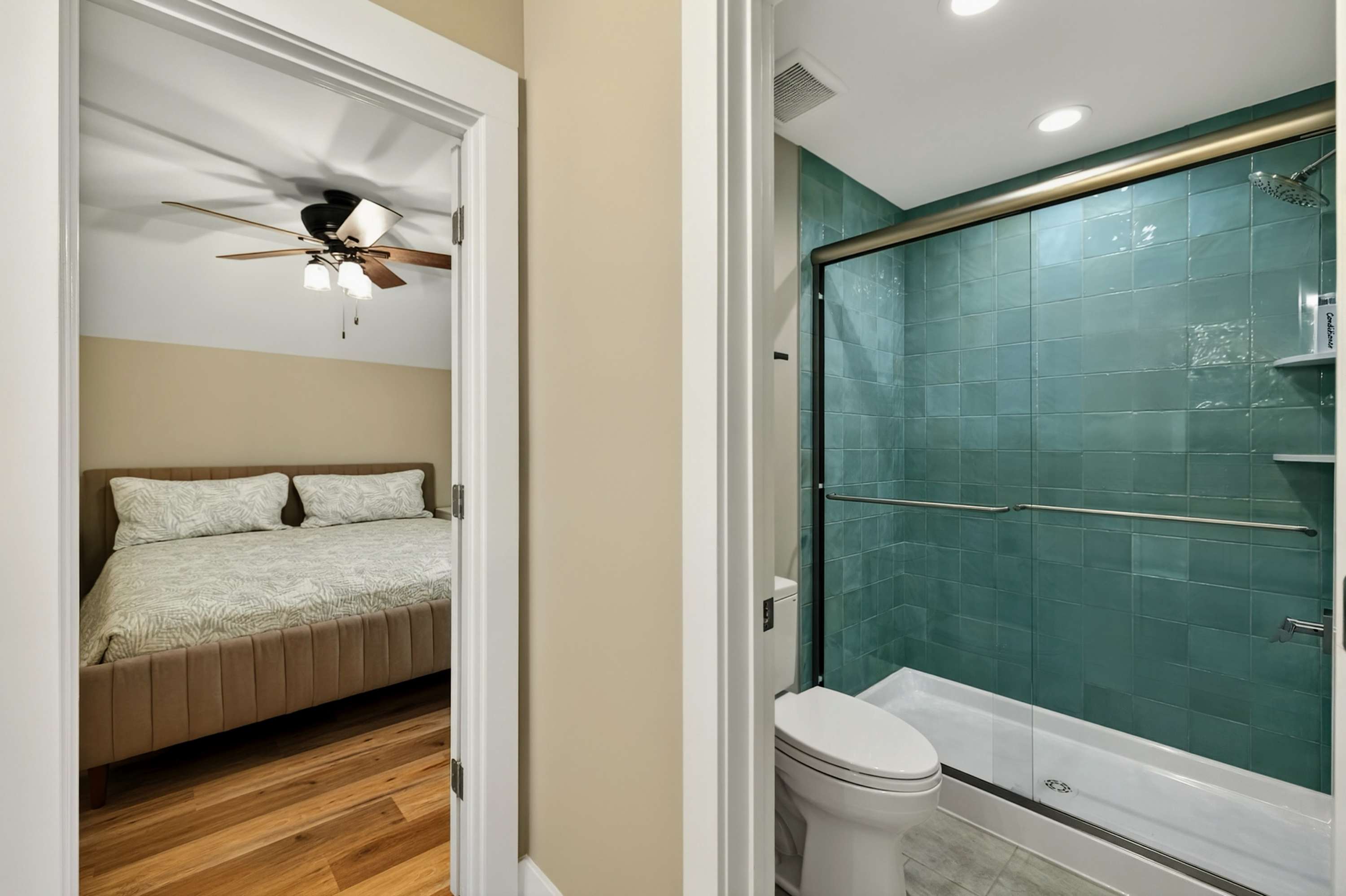 - Bedroom 3: King bed, shared bath with shower