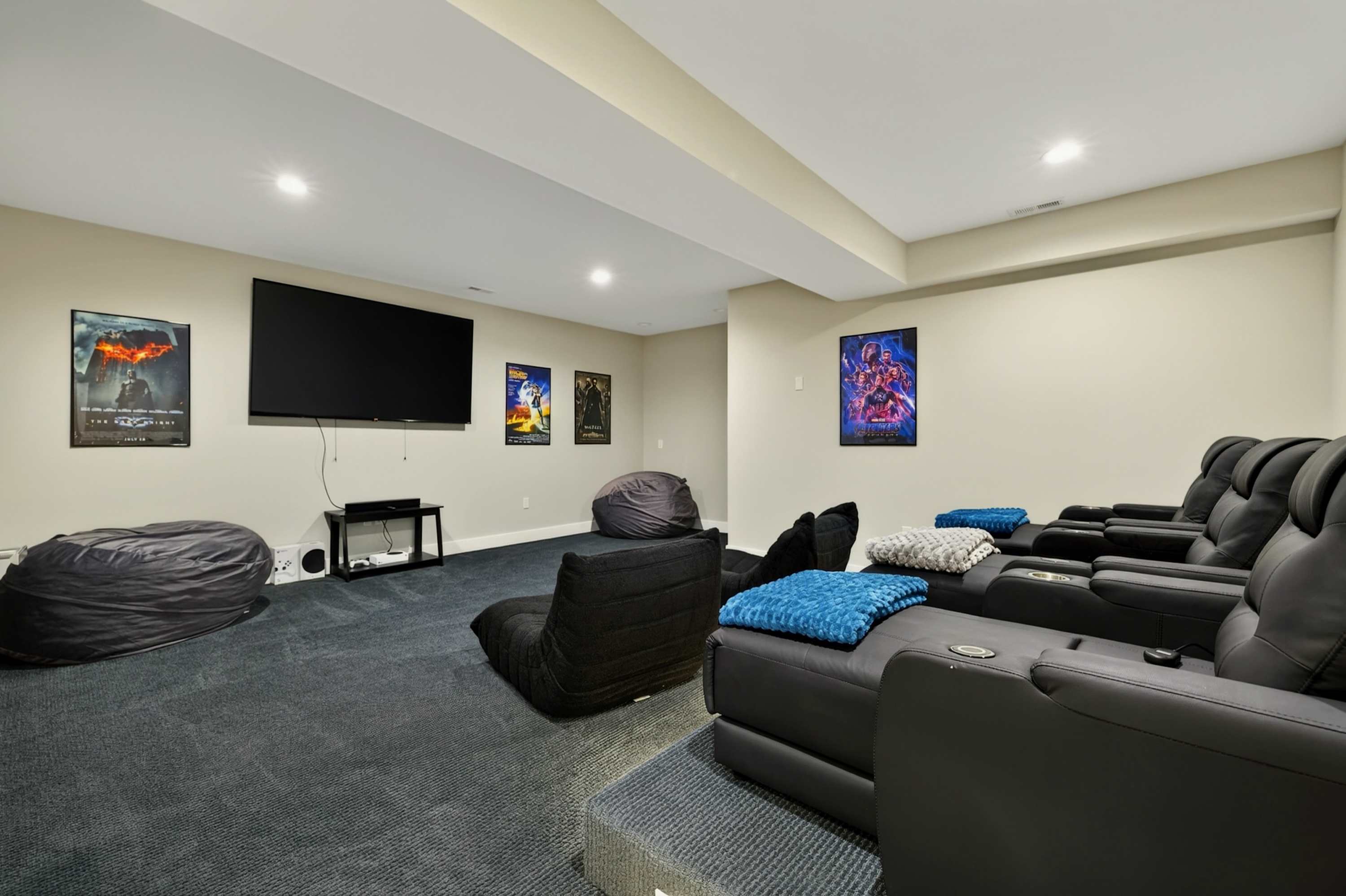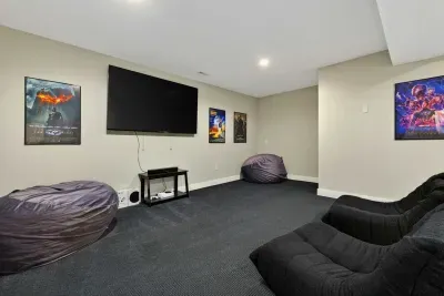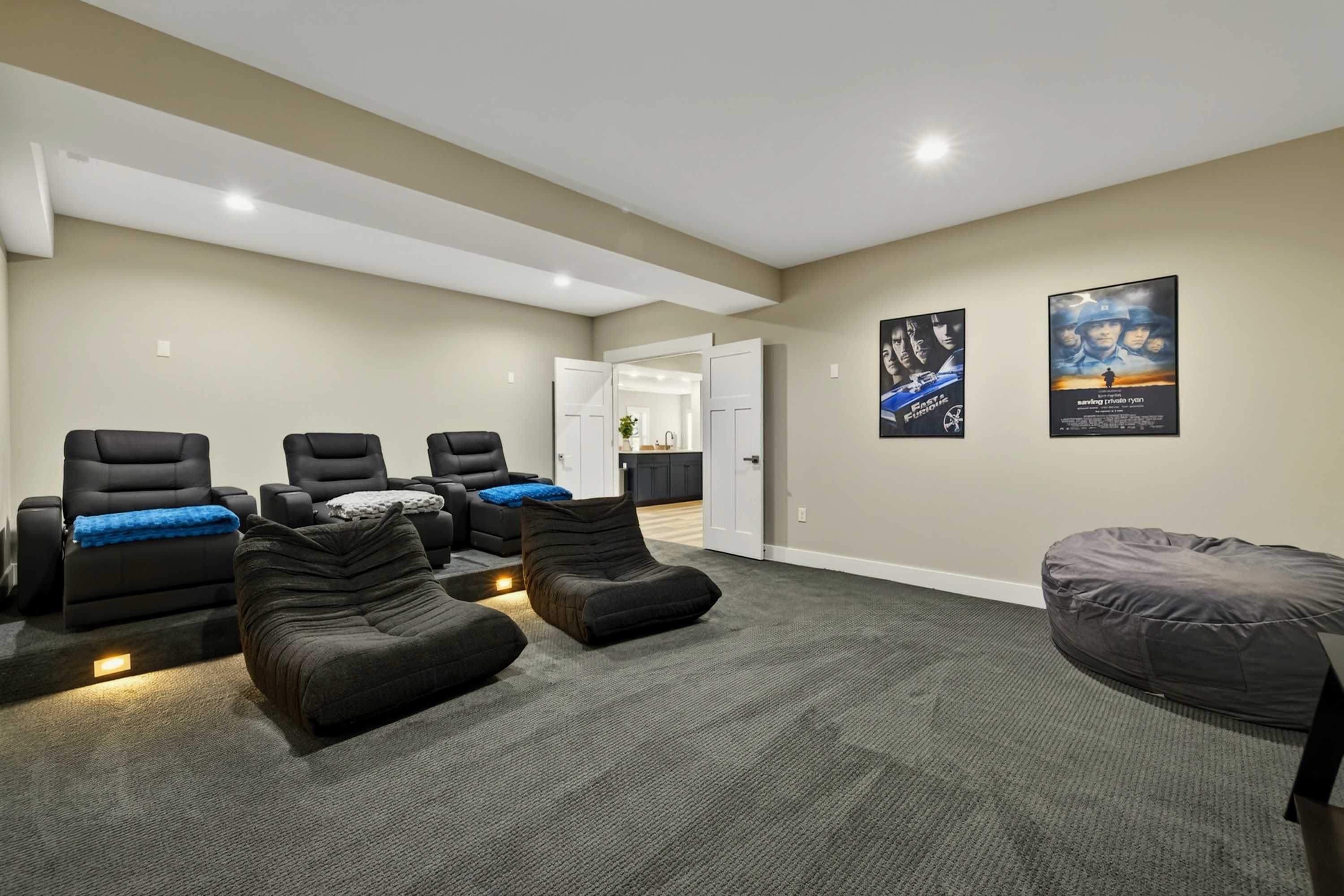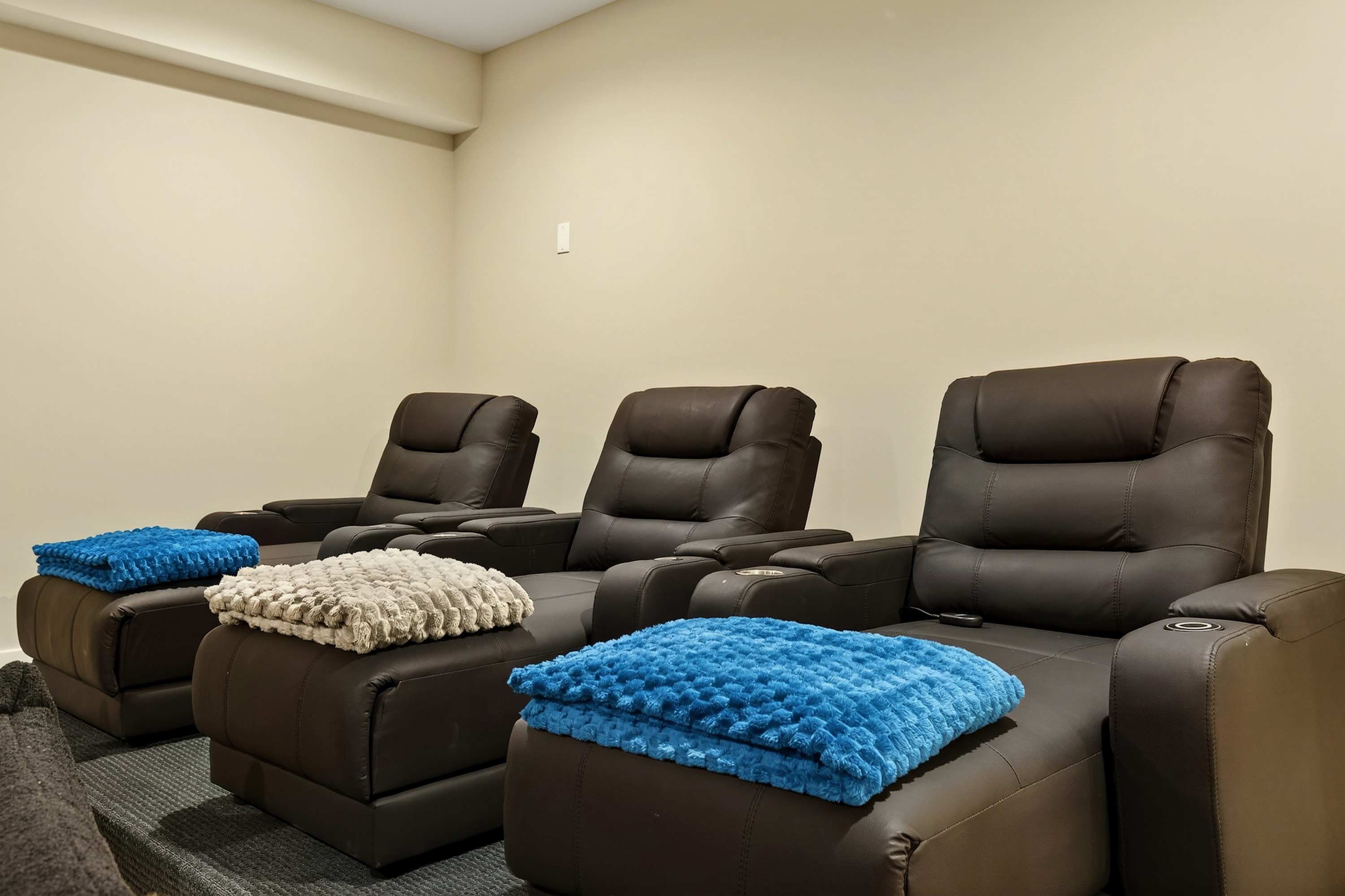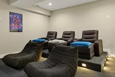 - Private theater: reclining seats, large screen, surround sound