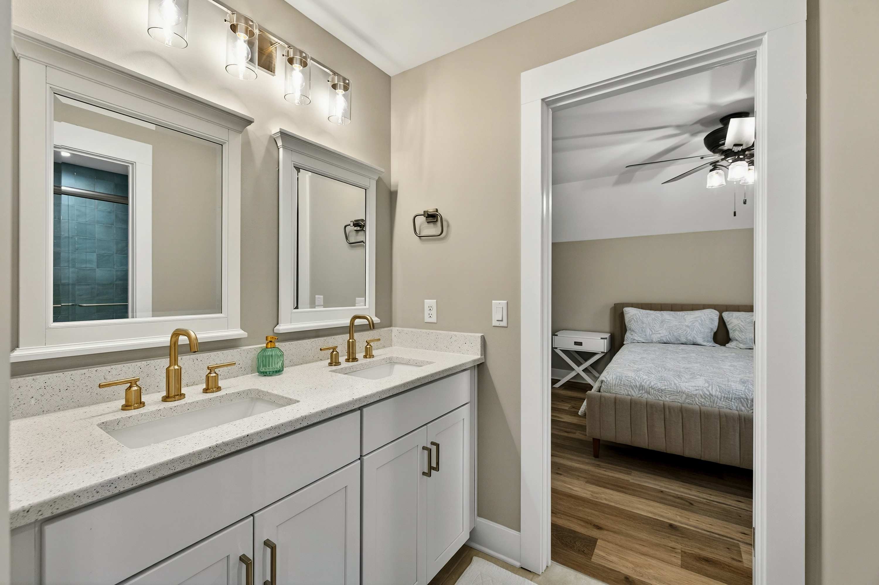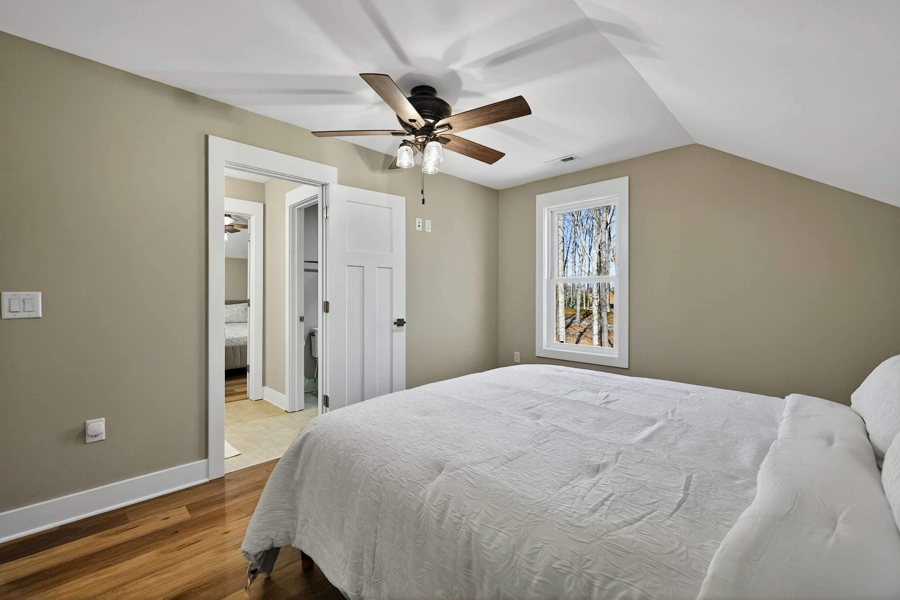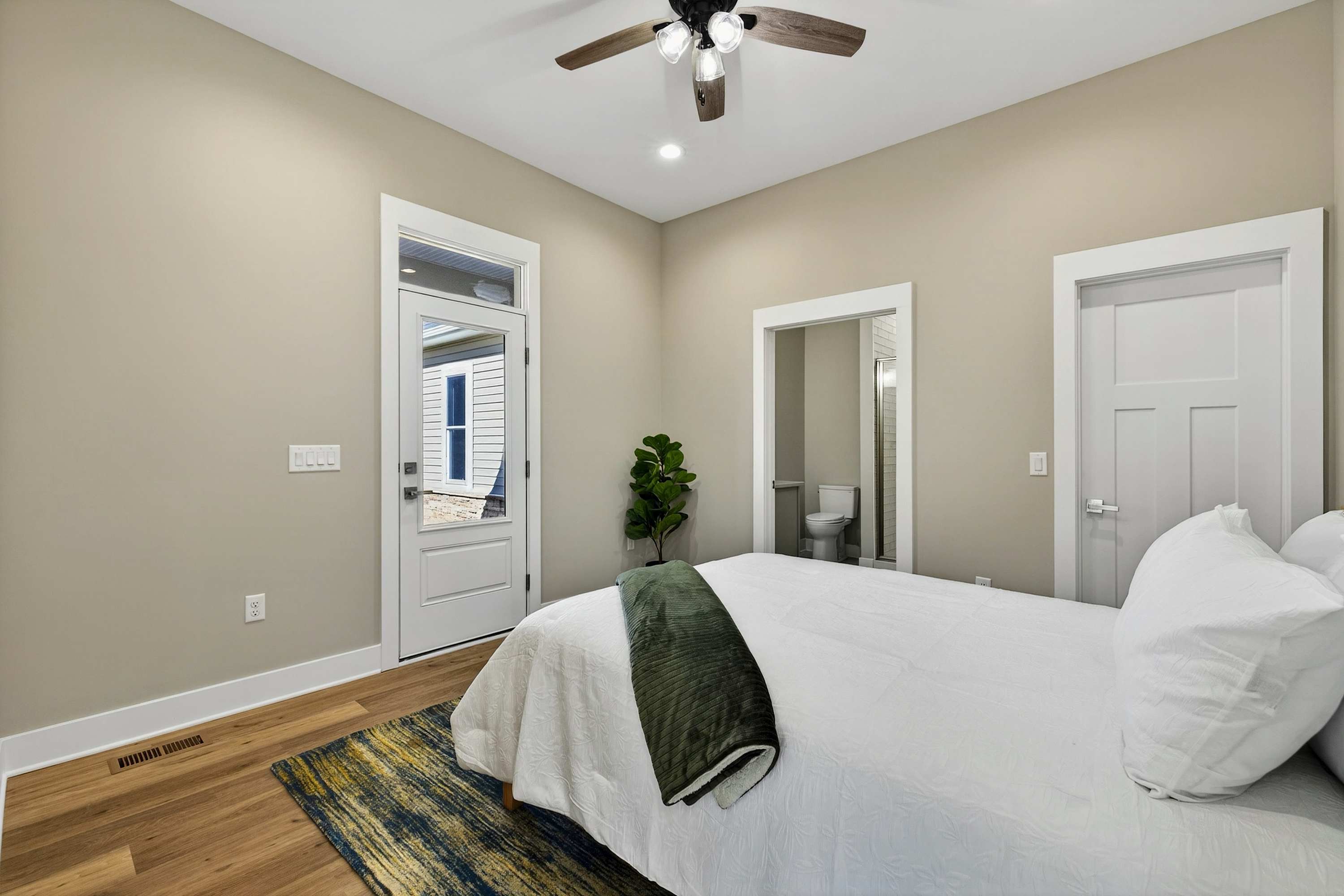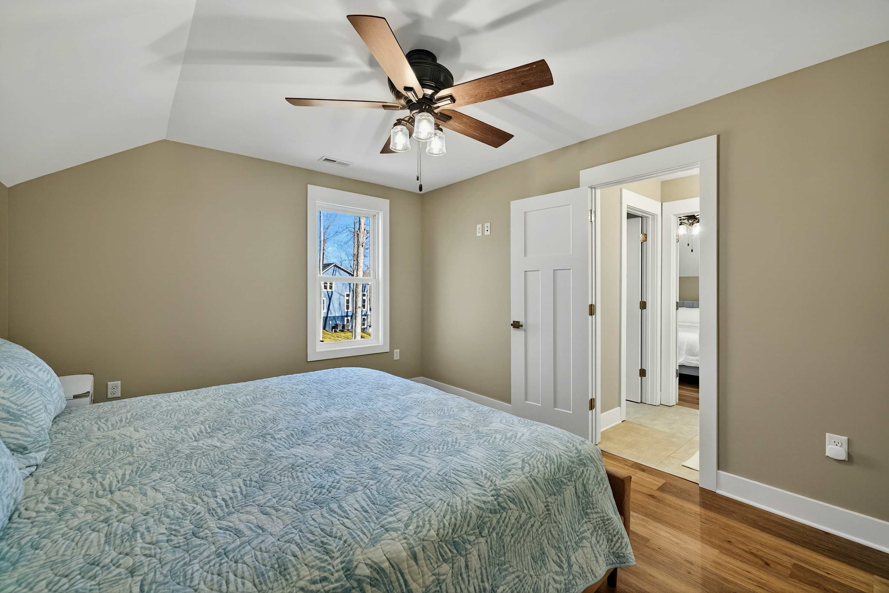 - Bedroom 4: King bed, shared bath with shower
