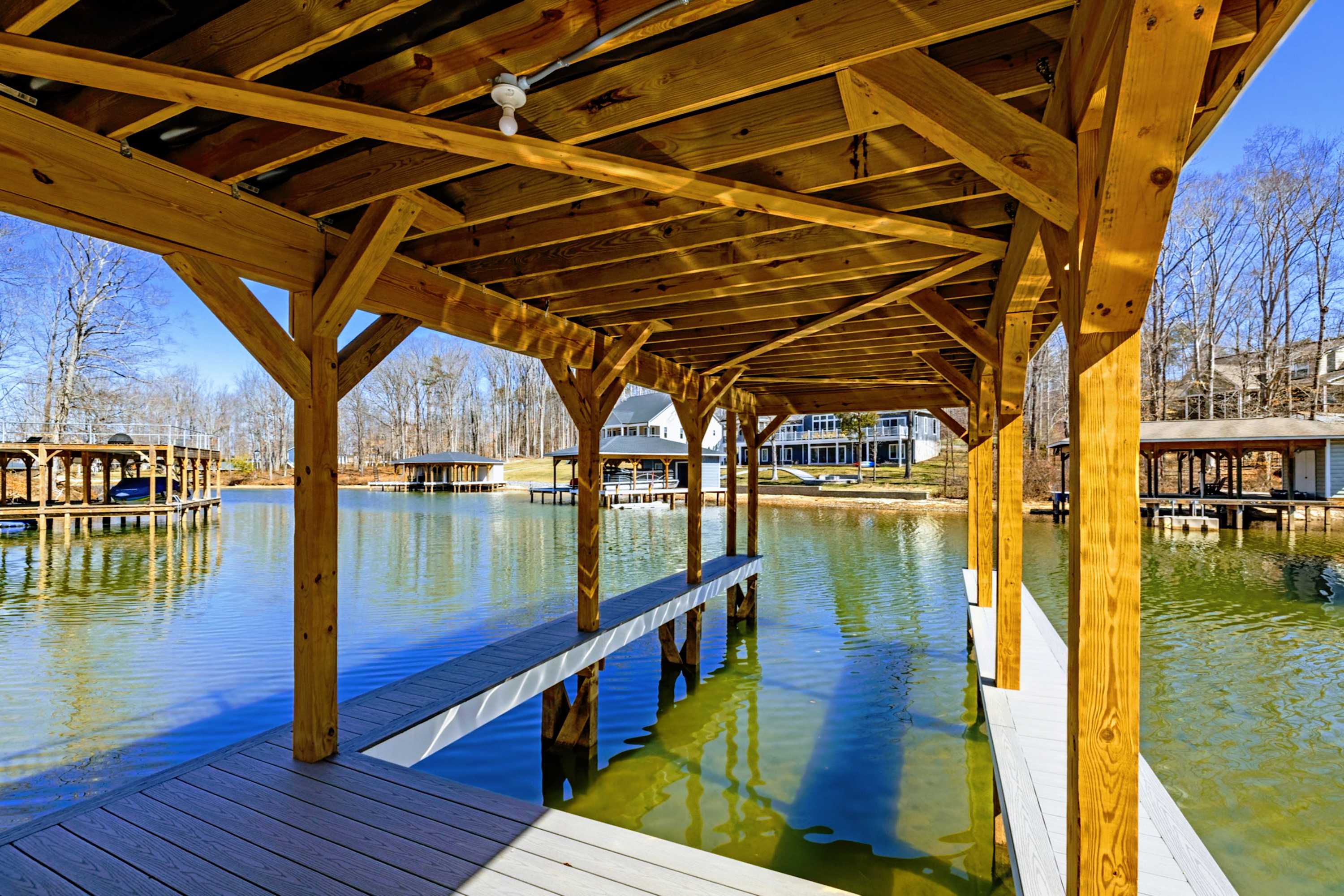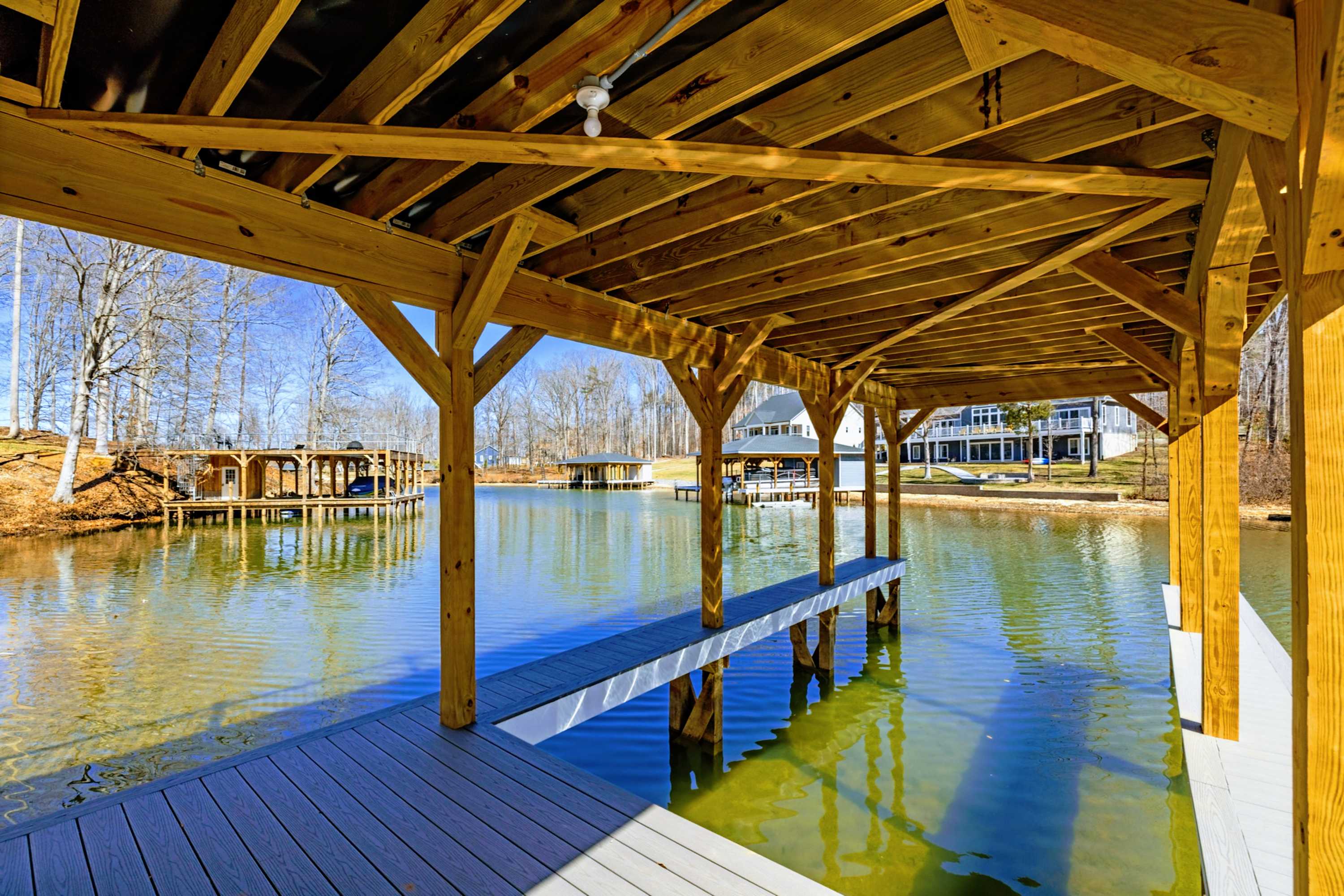 - Covered boathouse with boat slip