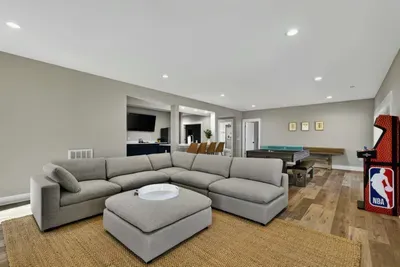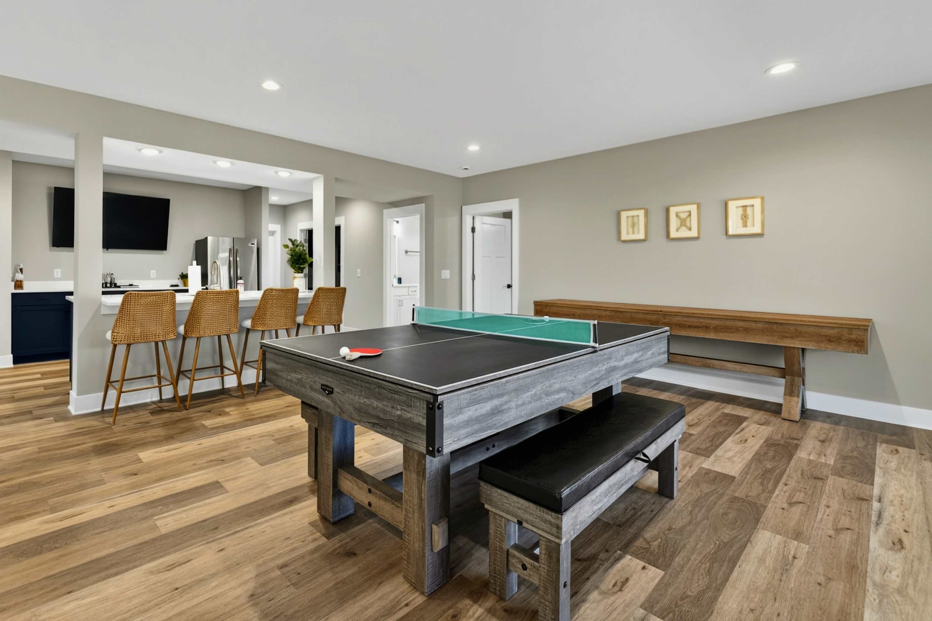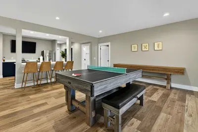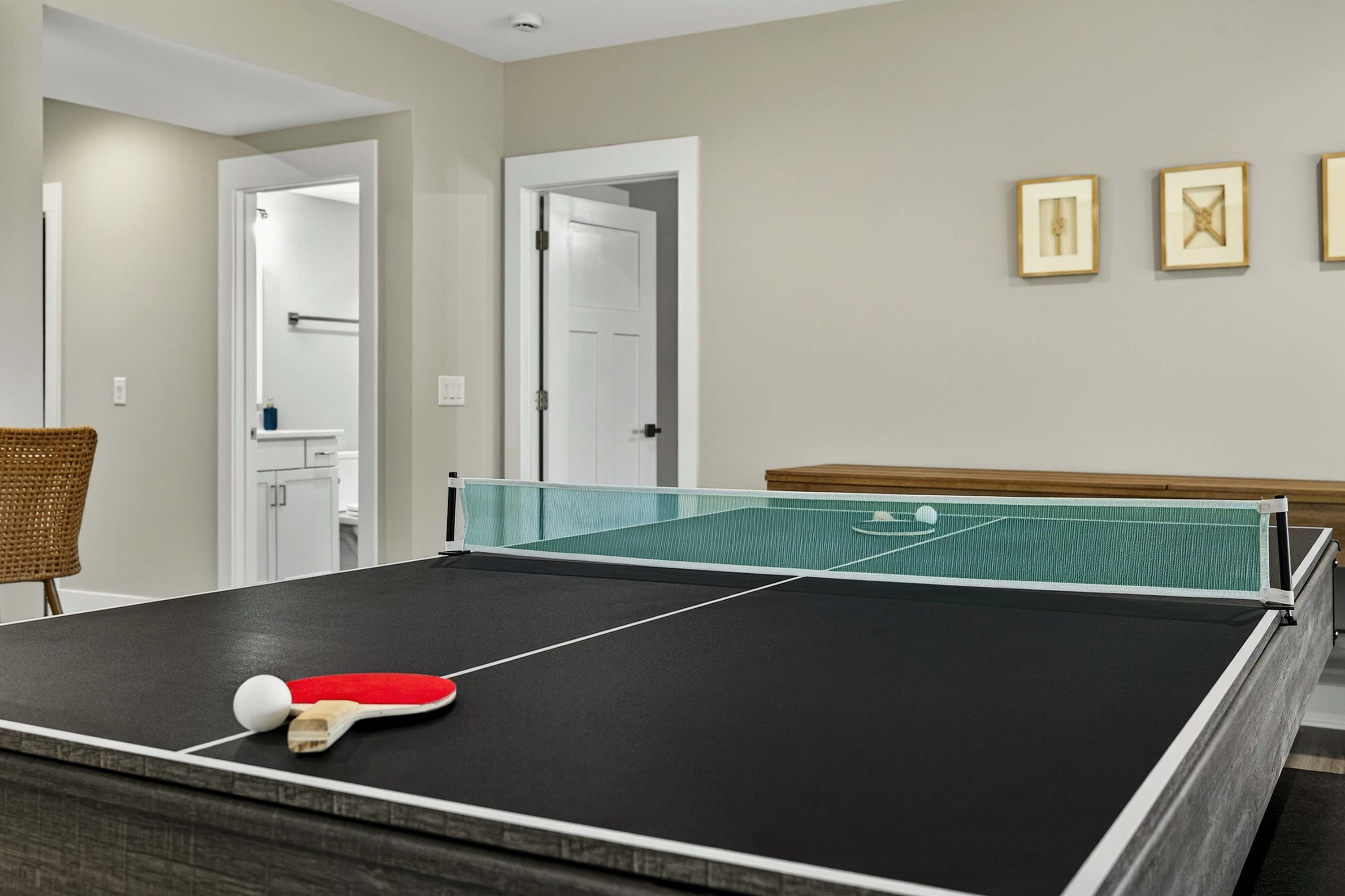 - Game room: pool table, ping pong, sound system, gaming console