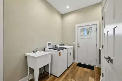 EV charger on-site. Attached garage for covered parking and gear storage. Full-size washer and dryer. Pack 'n Play and high chair available. Dogs welcome (no size or breed restrictions).