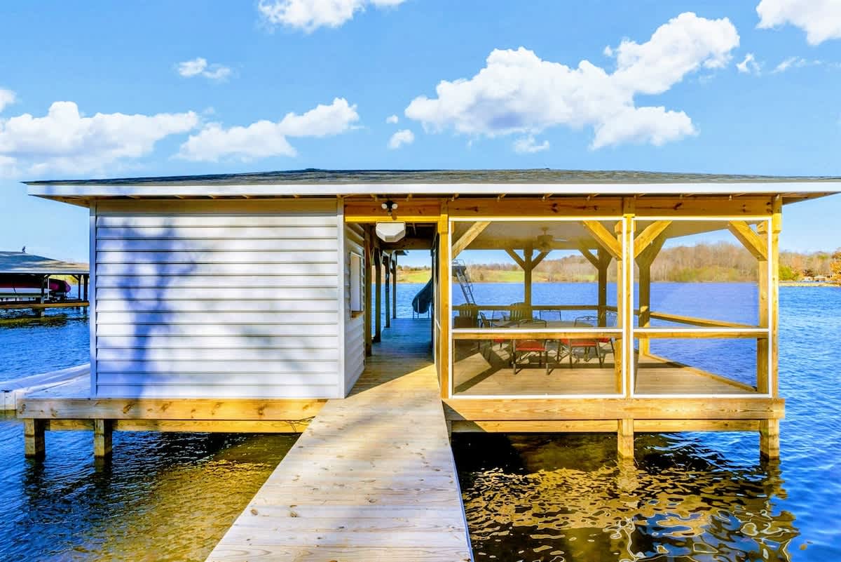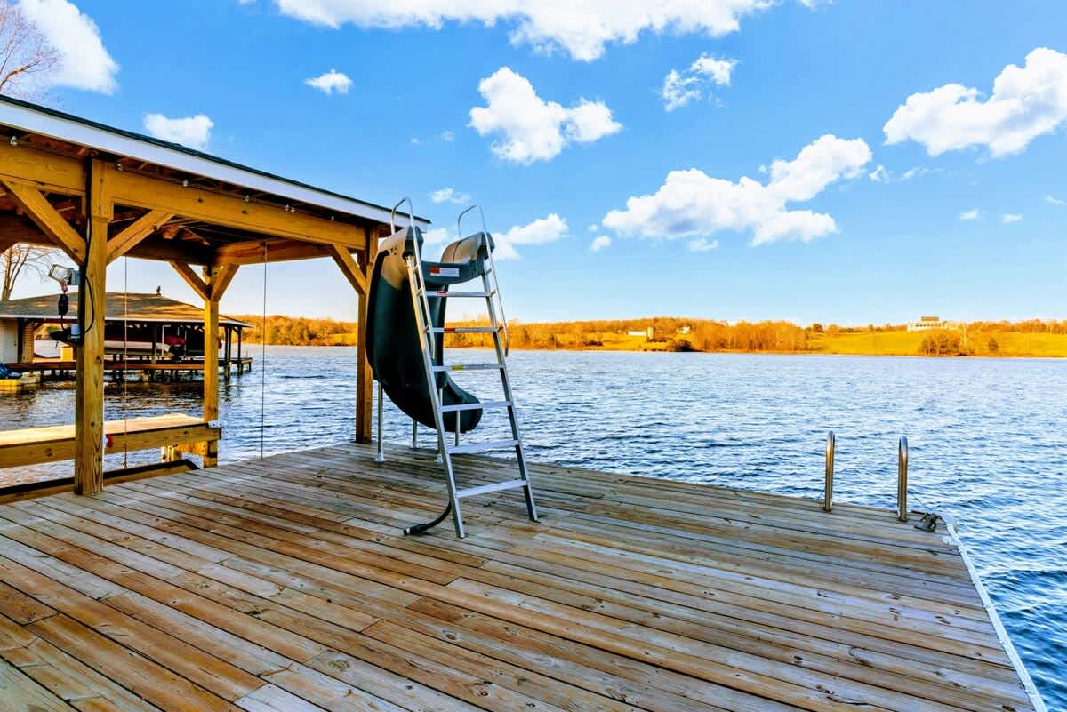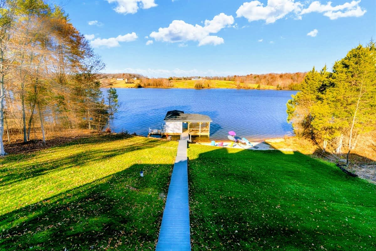 Step outside to dine alfresco on the expansive deck overlooking the lake, or gather around the firepit for s’mores and stargazing. The private dock, just steps from the property, makes launching kayaks or spending a day fishing, boating, water skiing, or sunbathing a breeze. For those looking to explore beyond the lake, a short drive takes you to the charming local town filled with unique dining, arts, shopping, and cultural experiences.