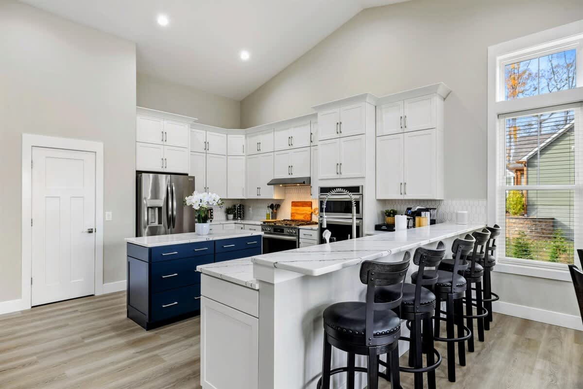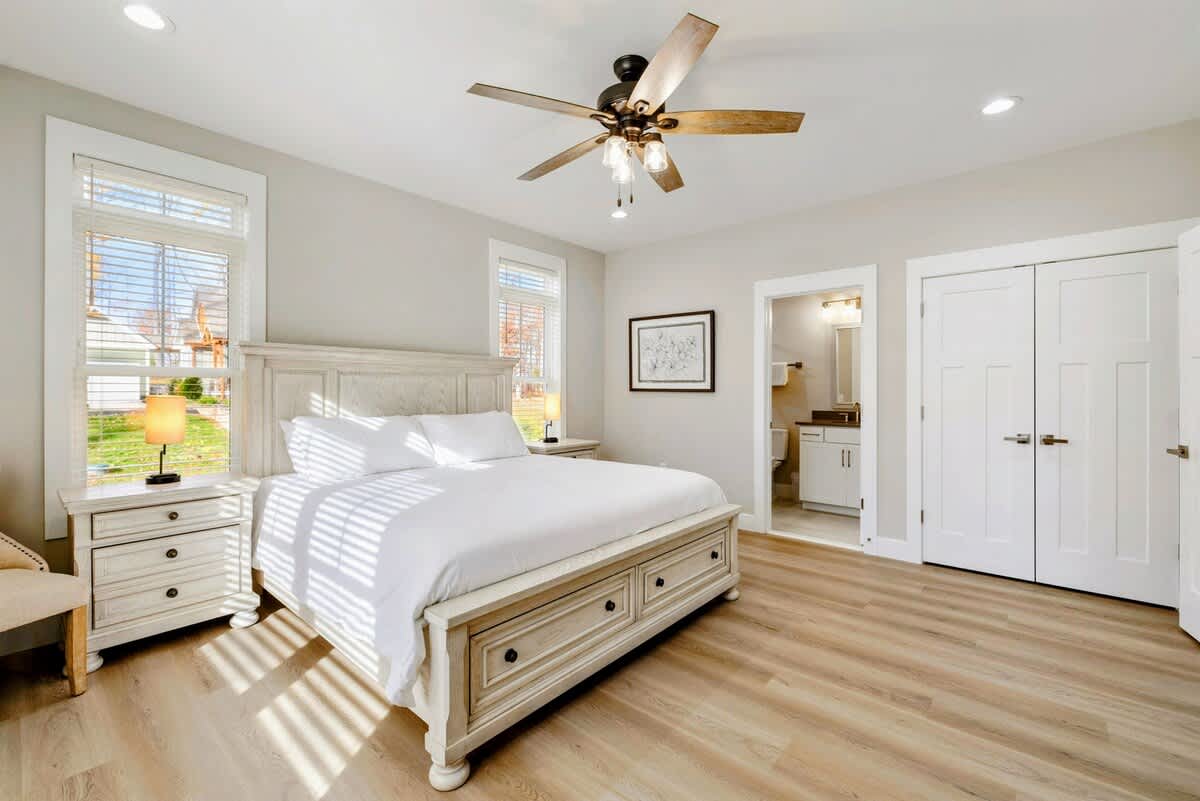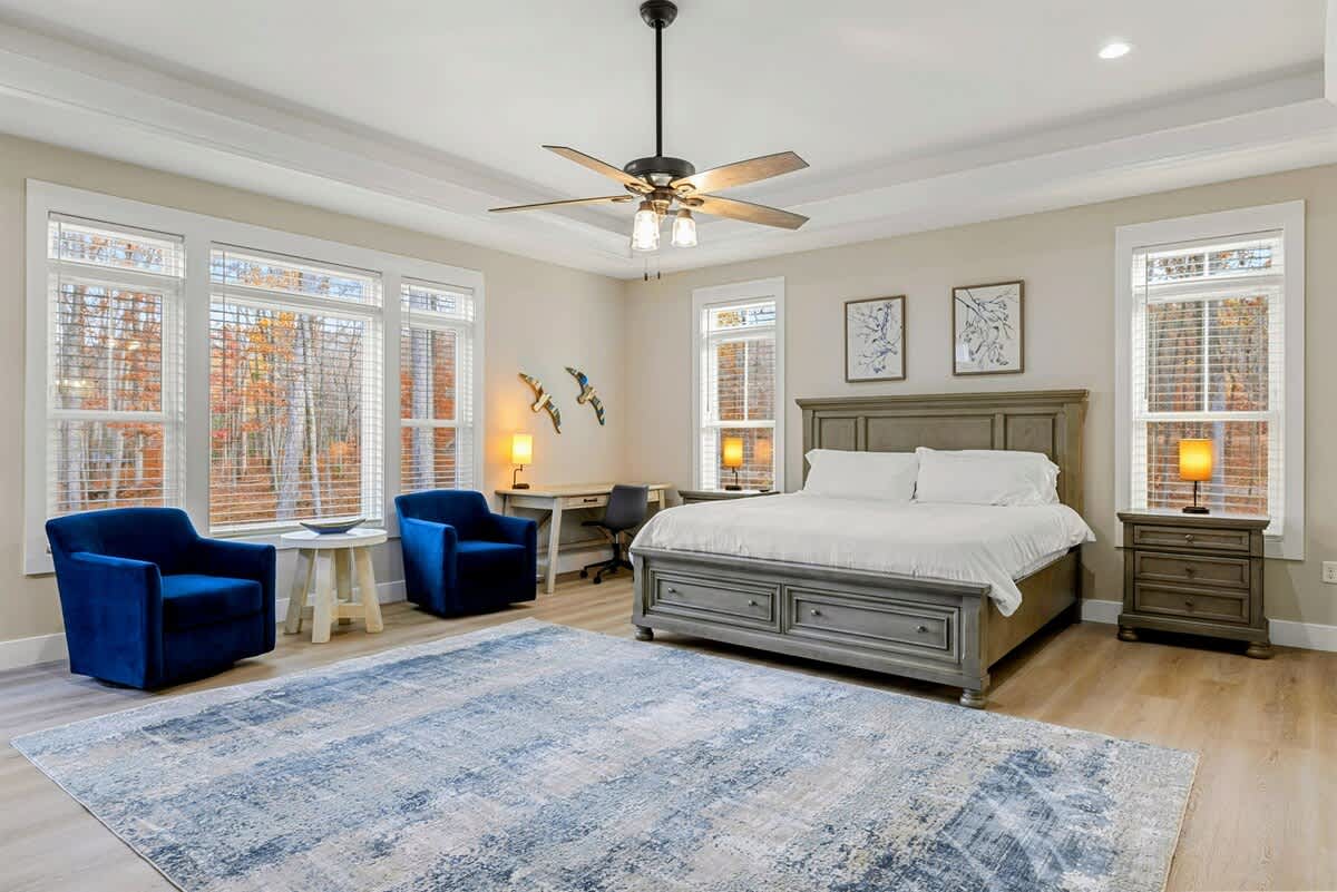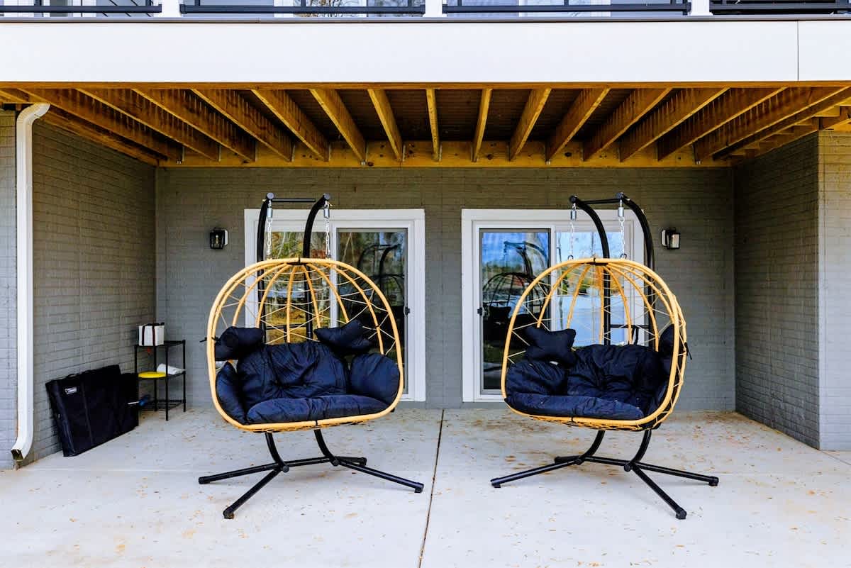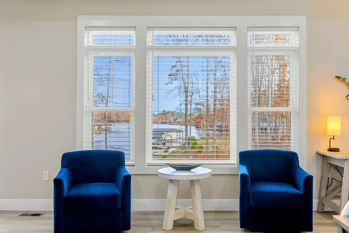 Experience comfort and luxury at our brand new and spacious lakefront home on the Private Side of Lake Anna. This beautiful home is located on a large lot in a quiet cove. You can swim, explore with kayaks, lay out on the dock's open deck area, or simply relax on the covered lounge area, enjoying the serene view of the beautiful lake! Roast some delicious s'mores outside using our outdoor fire pit, or have a BBQ using our grill on the deck. Enjoy the blue water views from atop of our massive deck. We have an open floor plan and offer 2 living areas including the main great room with a gas fireplace, and a lower level game room with pool table, ping pong table, shuffleboard, arcade game, xbox, and other games. Relax in the spacious main great room with water views through the huge bright windows, a gas fireplace, and 4K Smart TV. Use the High Speed Internet and free Wi-Fi network to stream your favorite shows while you FaceTime everyone! The home can sleep 16 with 4 bedroom suites including 2 King Suites, 1 Queen Suite, and a Bunk Bedroom Suite. The main floor has an open floor plan with a great room and adjacent large kitchen, dining area, primary suite (King bed), second bedroom suite (King bed), third bedroom suite (Queen bed), and laundry room. The lower level has the massive game room, and Bunk Bedroom Suite (4 Twin over Double Bunk beds).
