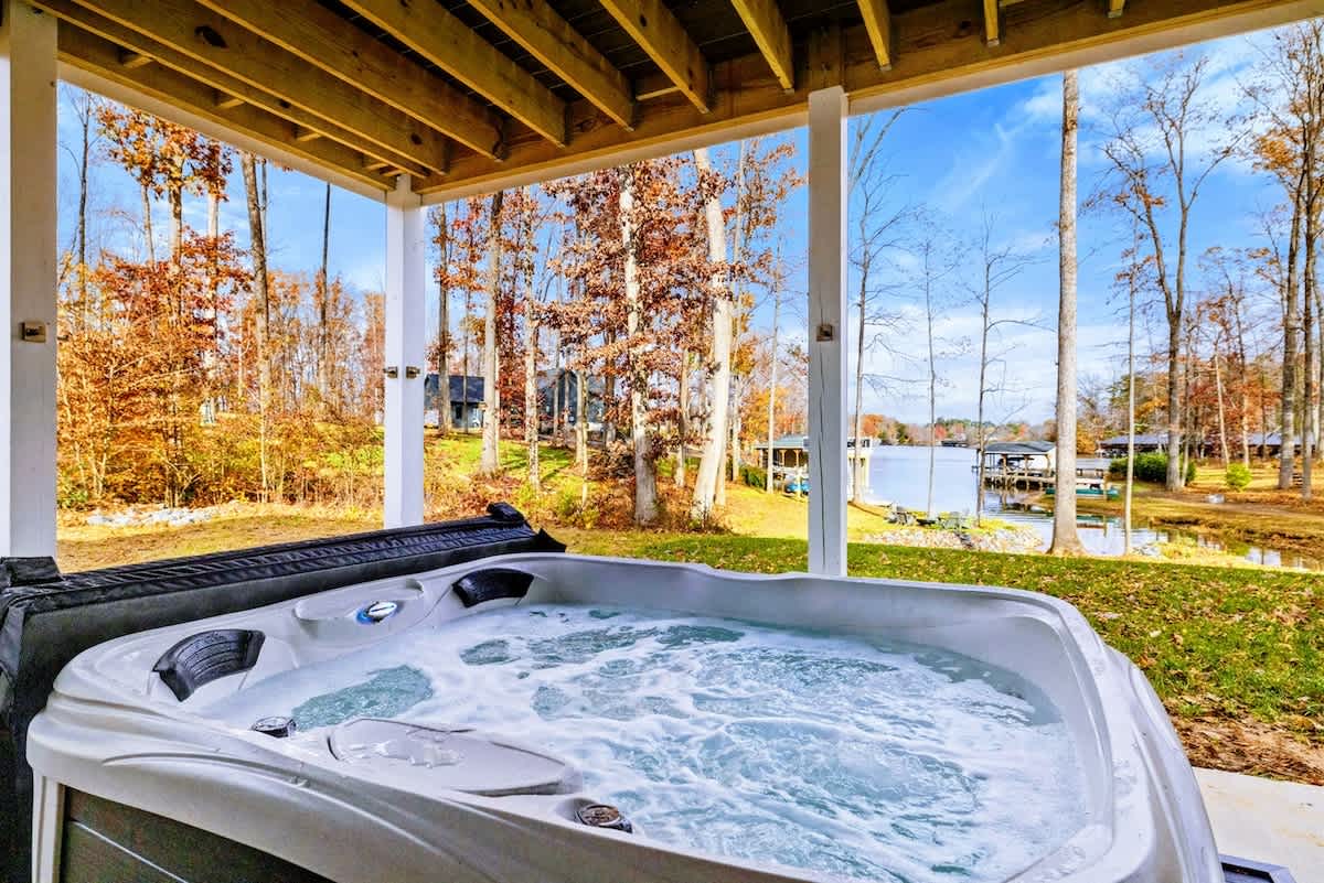 Lighthouse Cove is a brand new lakefront home with amazing views on the Private Side of Lake Anna. Enjoy a serene waterfront lot with a quiet cove, warm freshwater, and private dock and boat house with a covered boat slip and rooftop lounge area! Take in the gorgeous lake views while relaxing in our hot tub, beside an outdoor fire pit, or on the large furnished deck with outdoor dining options. Have fun in the game room, or kick back in a super comfy recliner in our Home Movie Theater room.