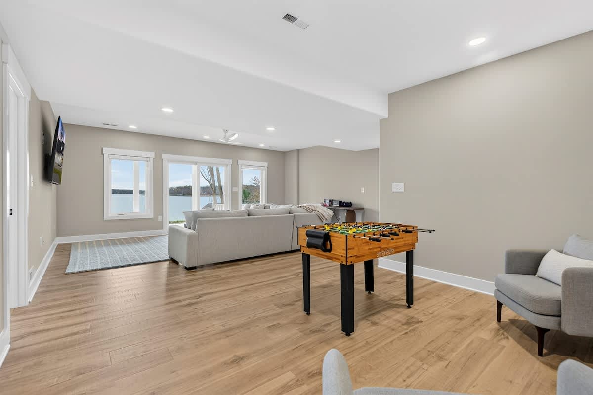 Welcome to Built for Memories, a newly built luxury five bedroom, five and a half bath lakefront retreat on the Private Side of Lake Anna. Enjoy expansive water views, a sandy beach, kayaks, paddleboards, a chef’s kitchen, vaulted great room, game room, Smart TV, and high-speed WiFi. The home is also perfect for wellness stays, with a walkable yoga studio nearby and an outdoor sauna coming soon to further elevate your relaxation.