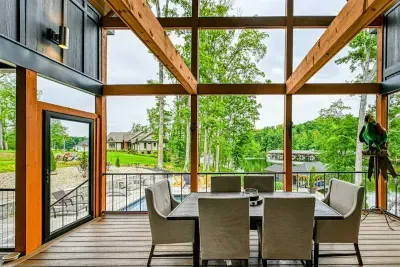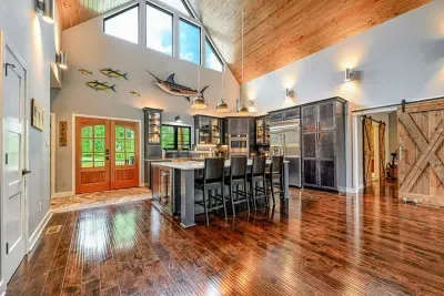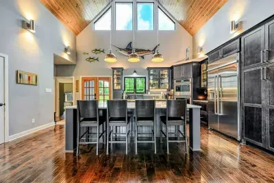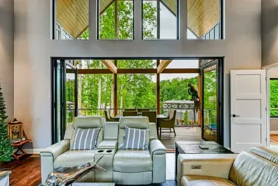 Welcome to your private lakefront sanctuary on Lake Anna’s exclusive Private Side. **Ober The Lake** is a modern, custom-designed retreat blending elevated design with the natural beauty of lakeside living. Vaulted wood ceilings, expansive windows, and thoughtful details create a luxurious and laid-back space to relax, reconnect, and make memories.