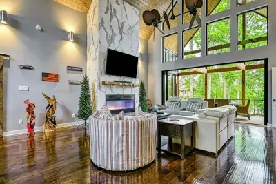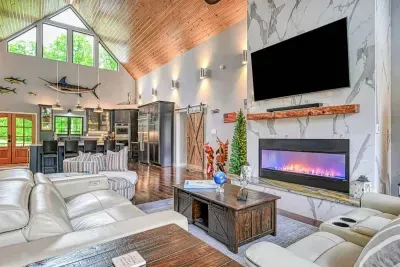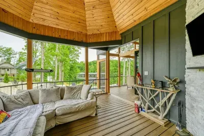 Escape to Ober The Lake, your private lakefront haven on Lake Anna’s exclusive Private Side. Enjoy a heated saltwater pool (seasonal), custom deep-water dock with bar, sundeck, and screened lounge, and a sandy beach and calm cove perfect for floating, fishing, and paddling. Inside, unwind in a designer home with a chef’s kitchen, vaulted ceilings, and stunning lake views. With kayaks, paddleboard, pedal boat, fire pit, and games for all ages, this luxury retreat is built for fun, connection, and happiness.