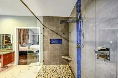 – Bedroom 1 (Primary Suite): 1 King bed, private deck access, spa-style en-suite with large walk-in shower and custom closet